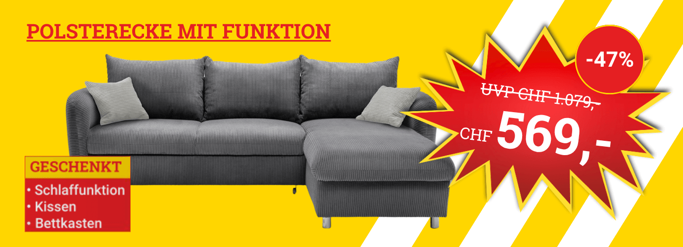 Sparer und Schnäppchenjäger aufgepasst: MEGA Möbel garantiert Ihnen Möbel zu Bestpreisen. Wir halten nicht nur eine Riesenauswahl guter Möbel zu attraktiven Preisen für Sie bereit, sondern garantieren Ihnen sogar: Unser Versprechen für beste Preise halten wir! Sollten Sie das bei uns gekaufte Möbel anschliessend irgendwo zu einem günstigeren Preis entdecken als bei uns, erstatten wir Ihnen die Differenz.