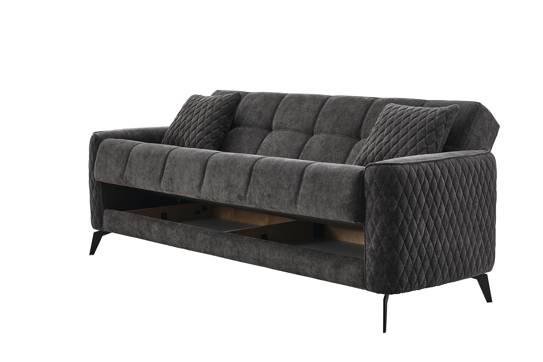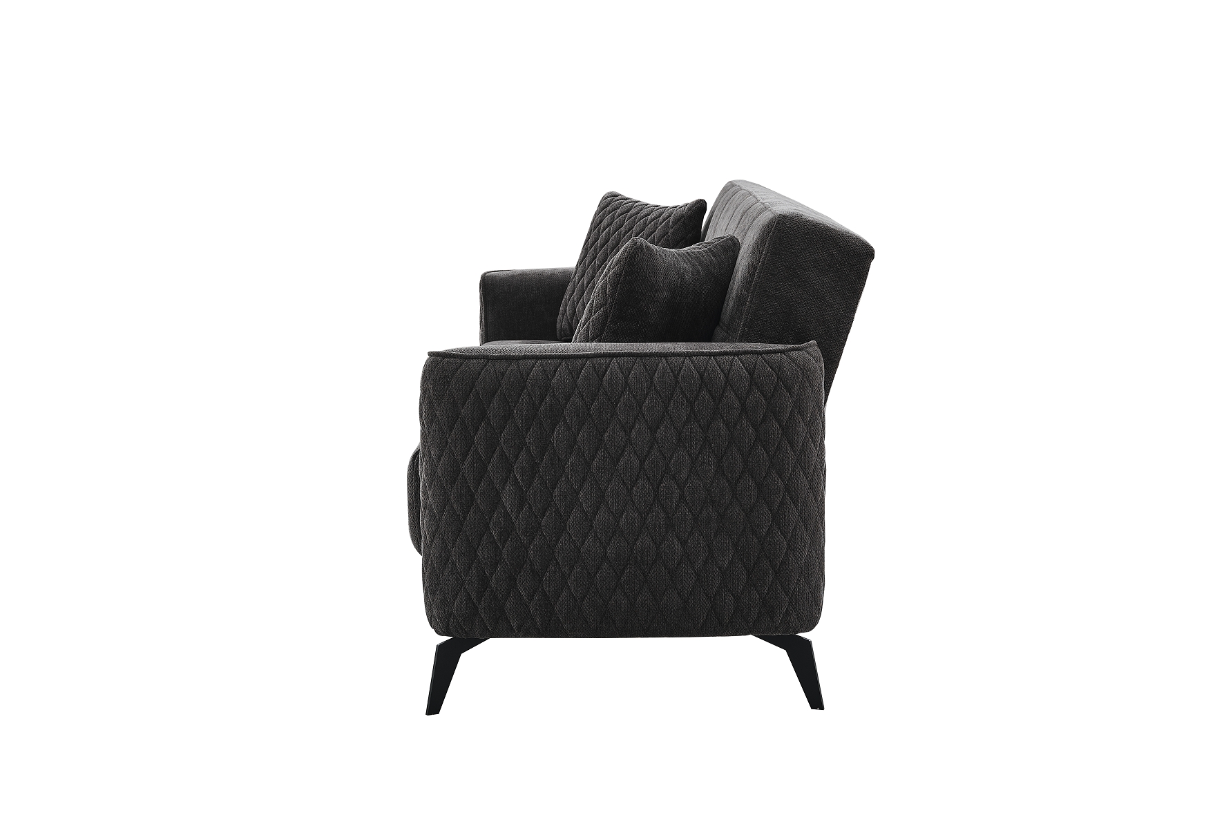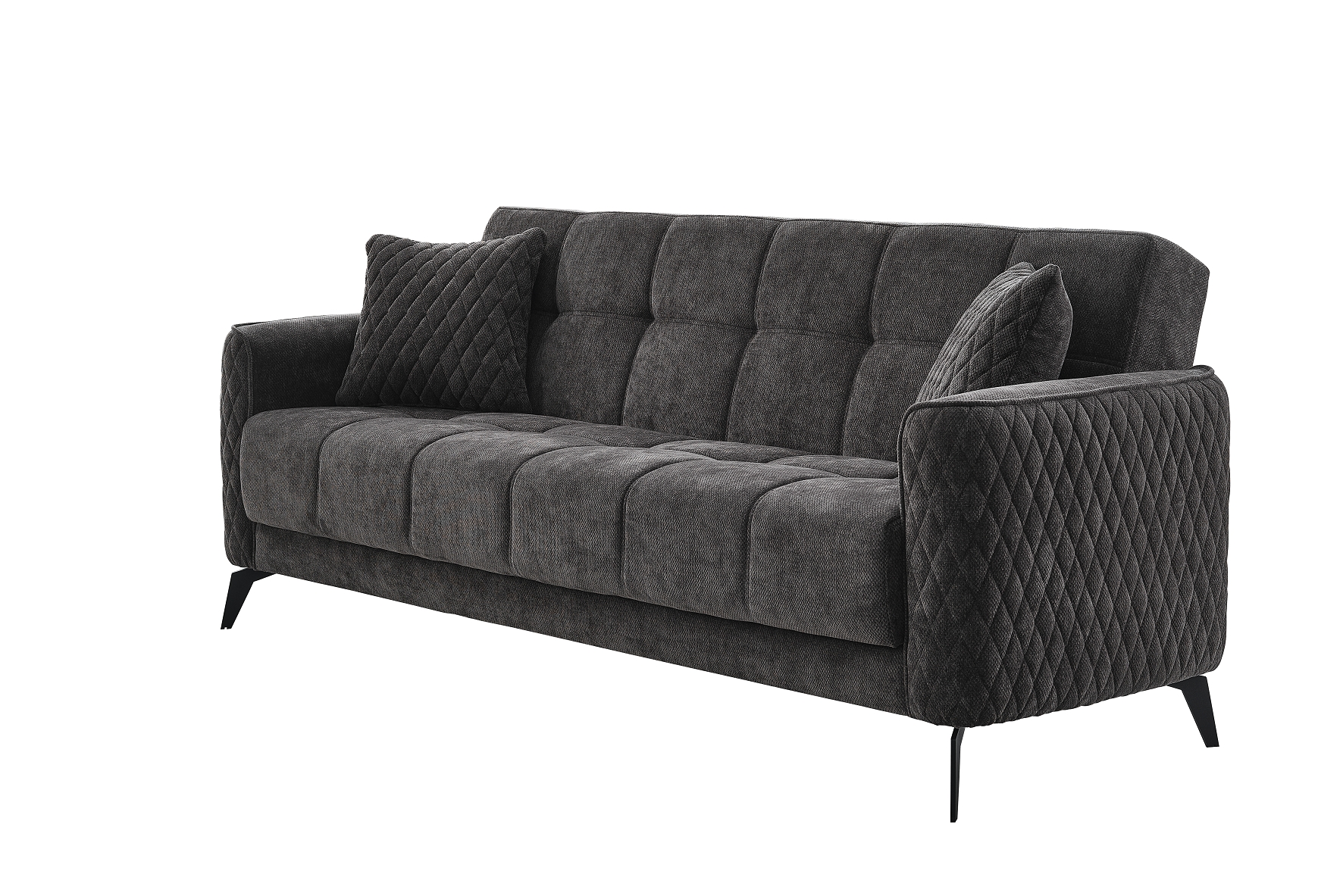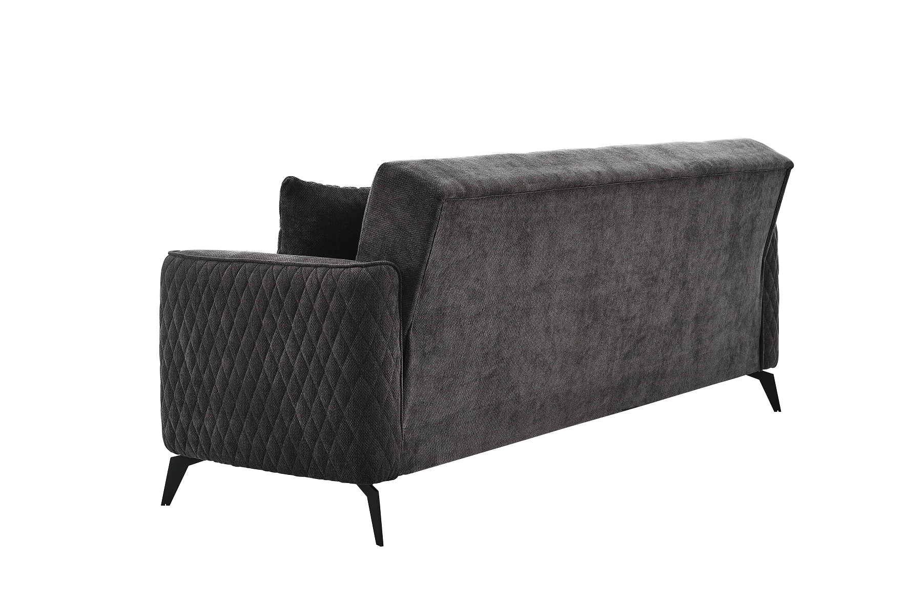 Dieser 3-Sitzer in grauem Stoff überzeugt durch pflegeleichte Materialien und eine solide Polsterung – ideal für den täglichen Gebrauch. Der Bezug ist strapazierfähig und angenehm im Griff. Sitz- und Rückenflächen sind mit einem Bonellfederkern ausgestattet, der gleichmäßigen Komfort und gute Unterstützung bietet. Dank der rundum mit Echtstoff bezogenen Rückseite kann das Sofa frei im Raum platziert werden. Zwei Zierkissen ergänzen das Gesamtbild funktional und optisch. Die schwarzen Metallfüße sorgen für Stabilität und einen klaren, modernen Akzent. Geliefert wird der 3-Sitzer ohne Dekoration.