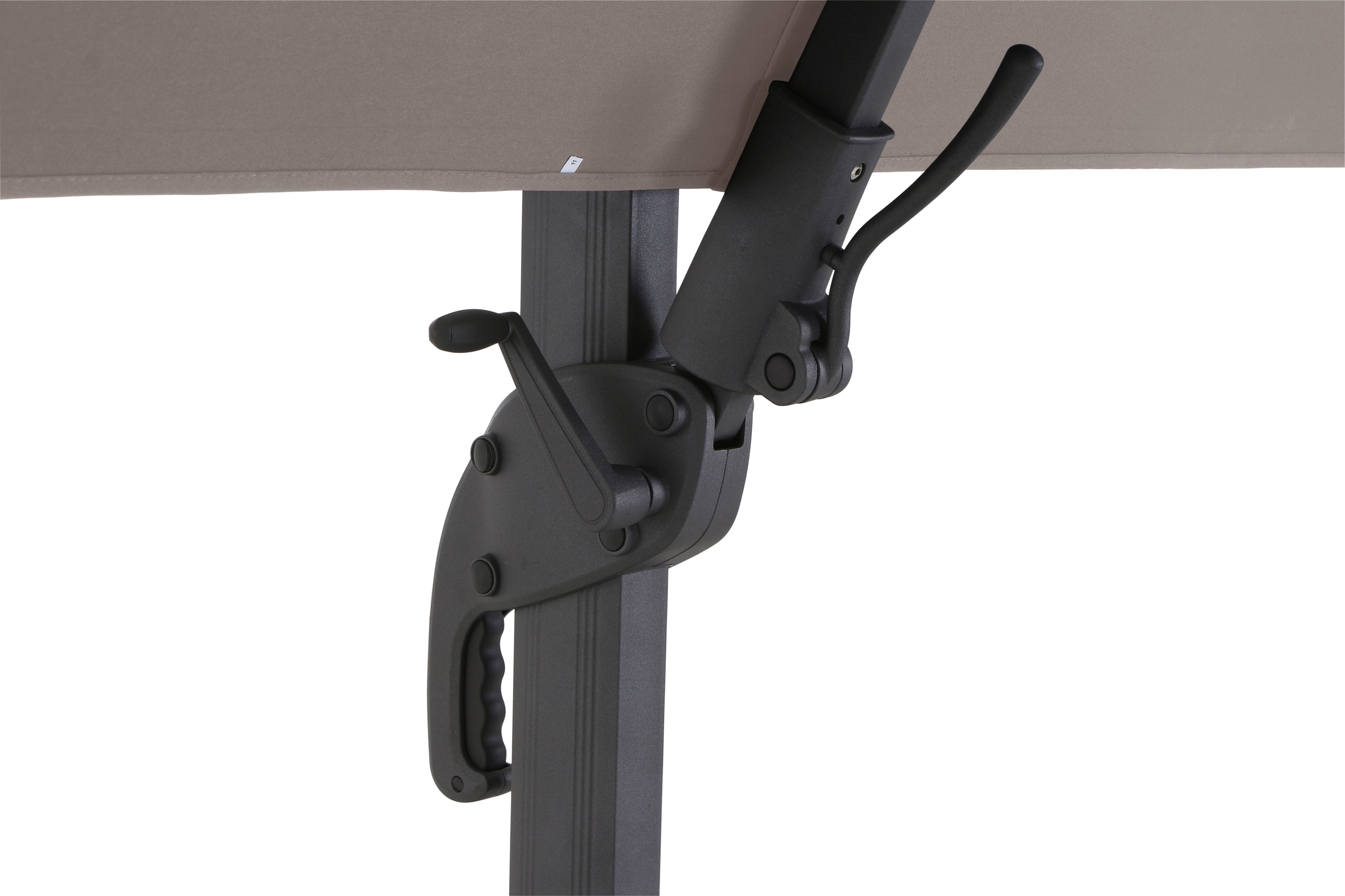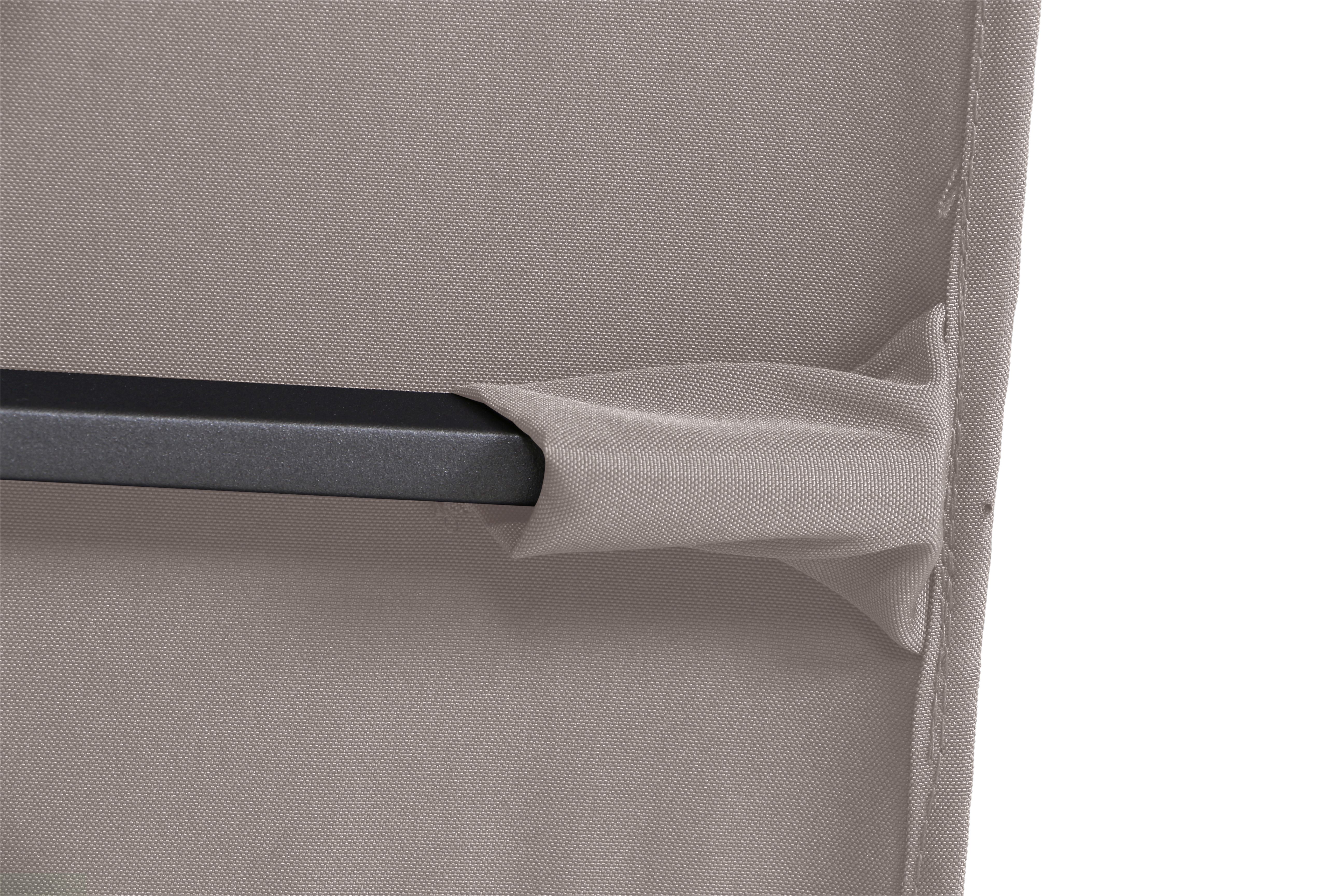 Bezug: Stoff in der Farbe taupe aus 100% Polyester, 240 g/m², PA beschichtet