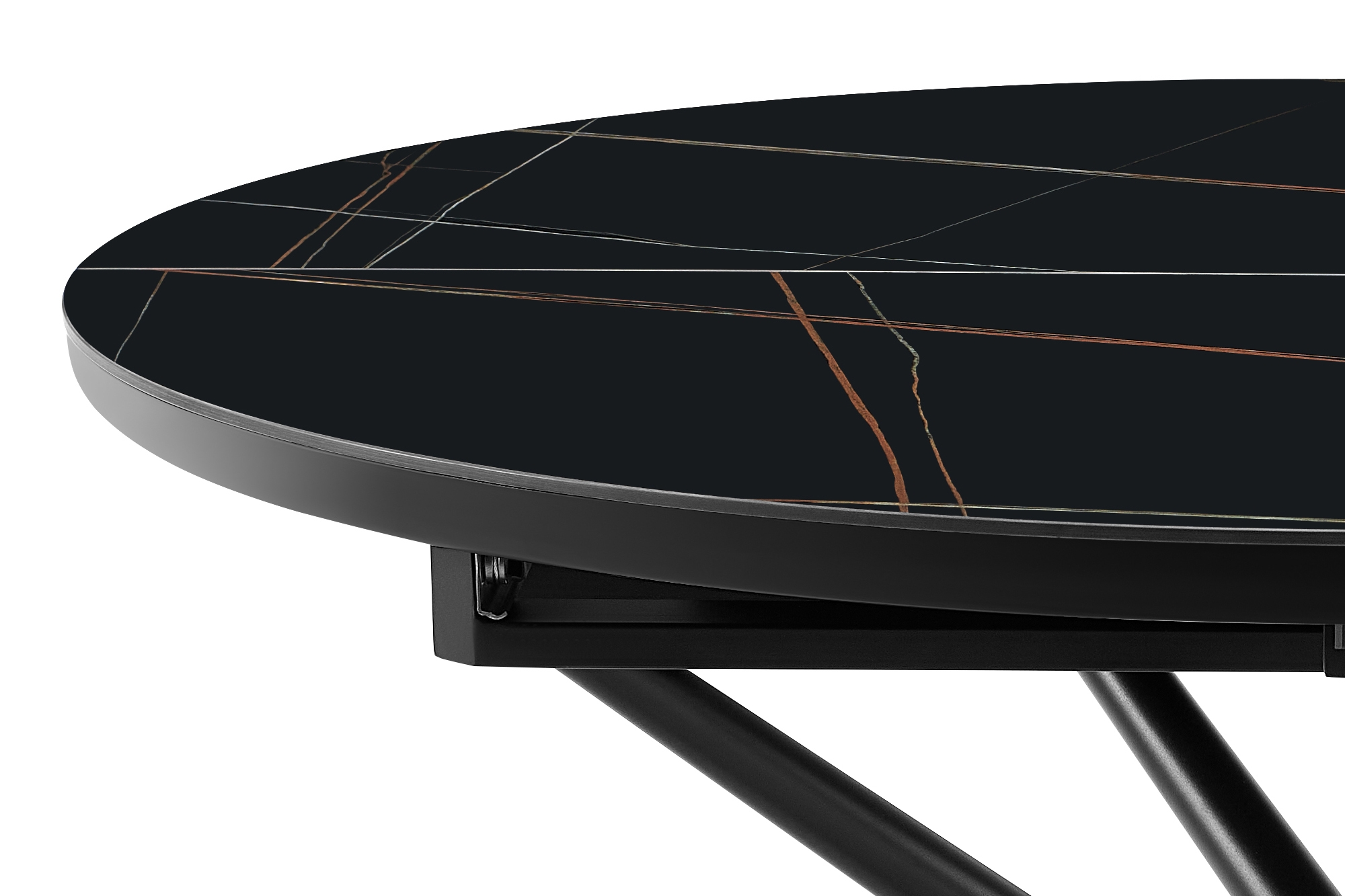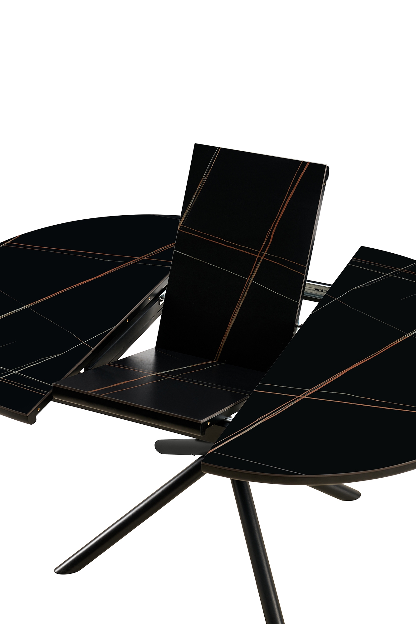 Top-modernes Design trifft auf praktischen Nutzen. Dieser Esstisch mit Auszugsfunktion ist nicht nur optisch ein Hingucker, in wenigen Handgriffen wird der Tisch auch problemlos vergrößert. Ob Familienfeste, Überraschungsgäste oder gesellige Runden mit Freunden - Der Tisch lässt sich durch die beiden Einlegeplatten spielend leicht auf eine Größe von 160x120 cm erweitern. Die Oberfläche in reduzierter Mamoroptik ist zeitlos chic und harmoniert optimal mit dem sternförmigen Design-Gestell. Die matte Optik ist das I-Tüpfelchen des modernen Designs. Ohne die Einlegeplatten hat der Tisch einen Durchmesser von 120 cm. Runde Tische sparen vor allem in kleineren Esszimmern Platz und Ermöglichen gemütliche Gespräche beim Beisammensitzen.