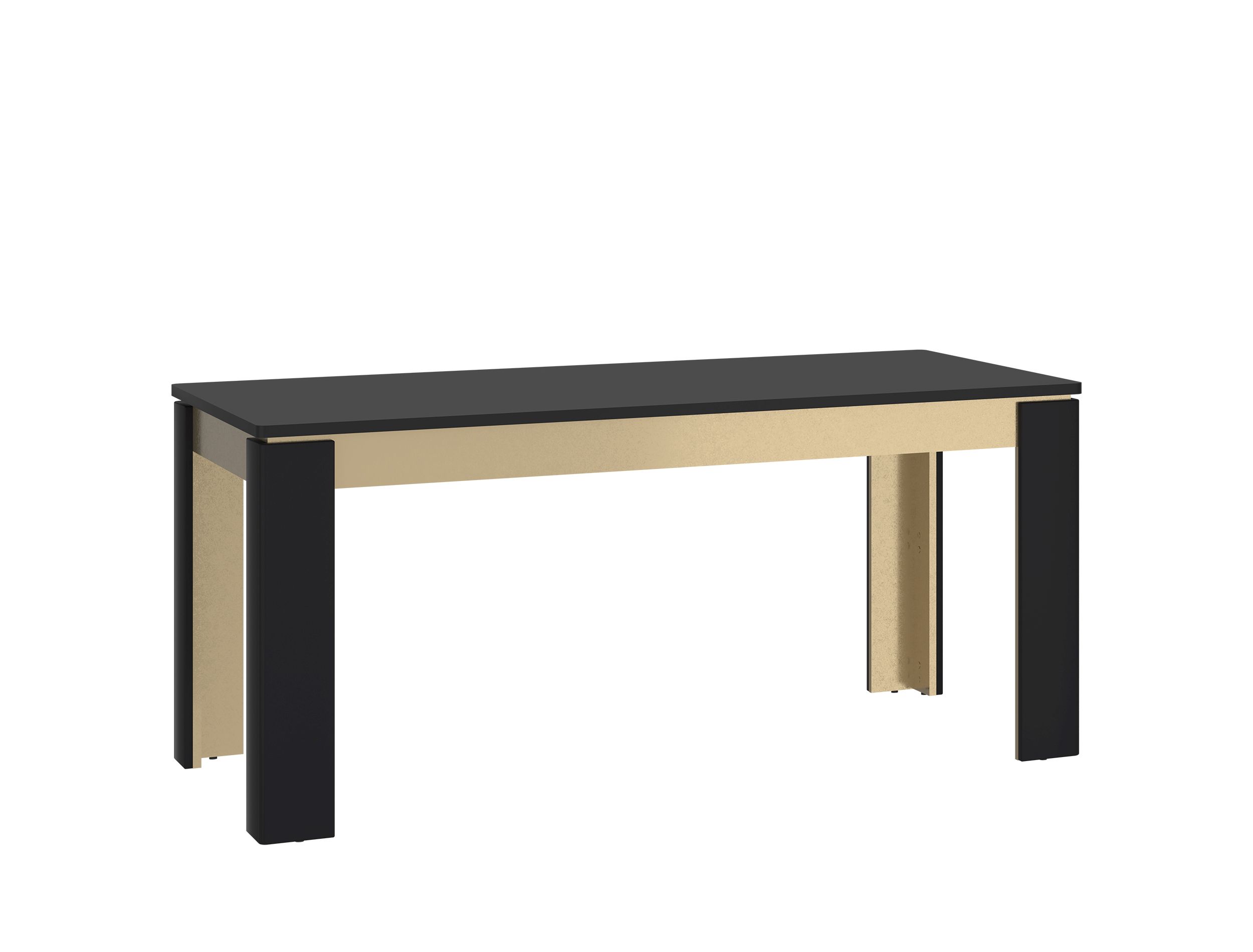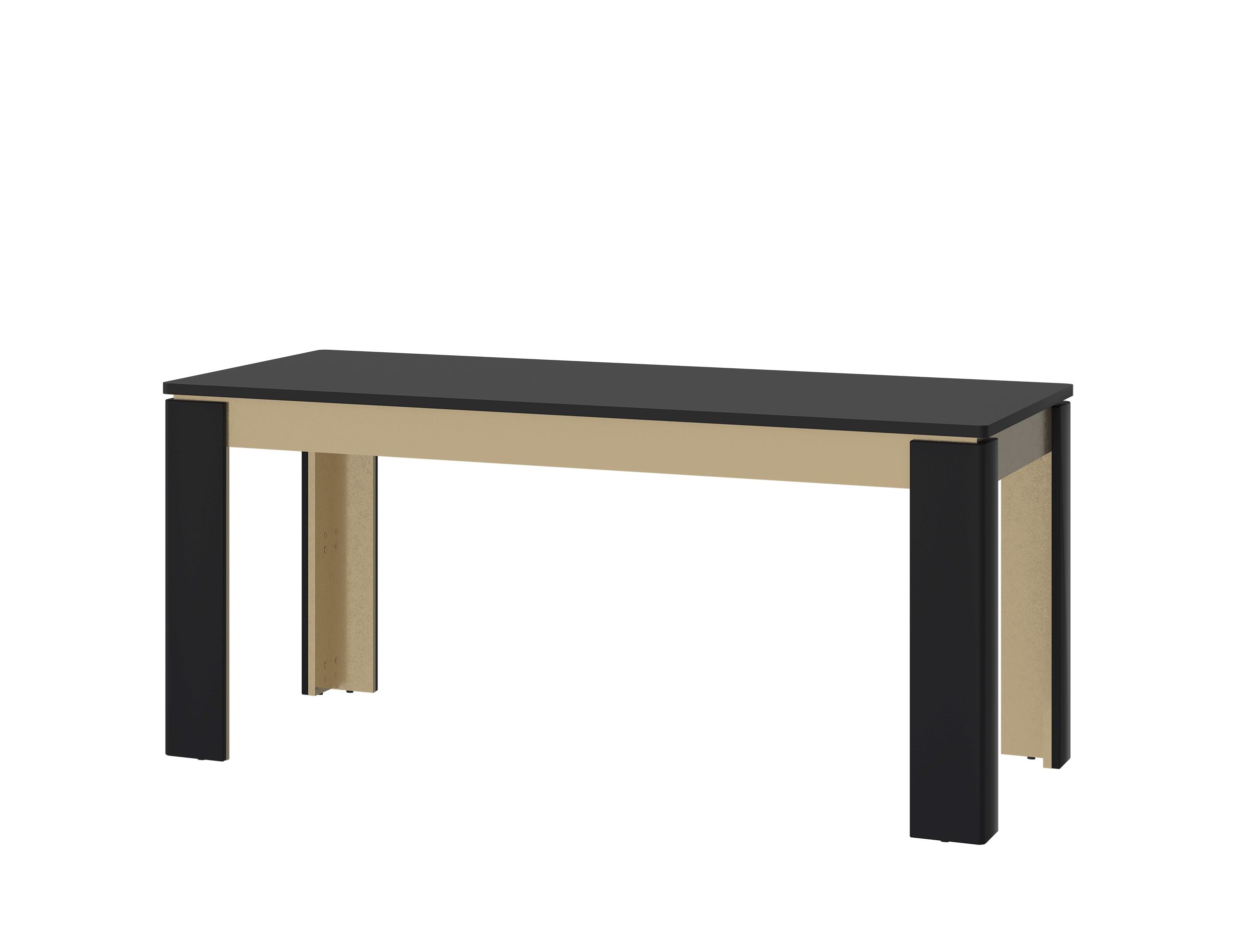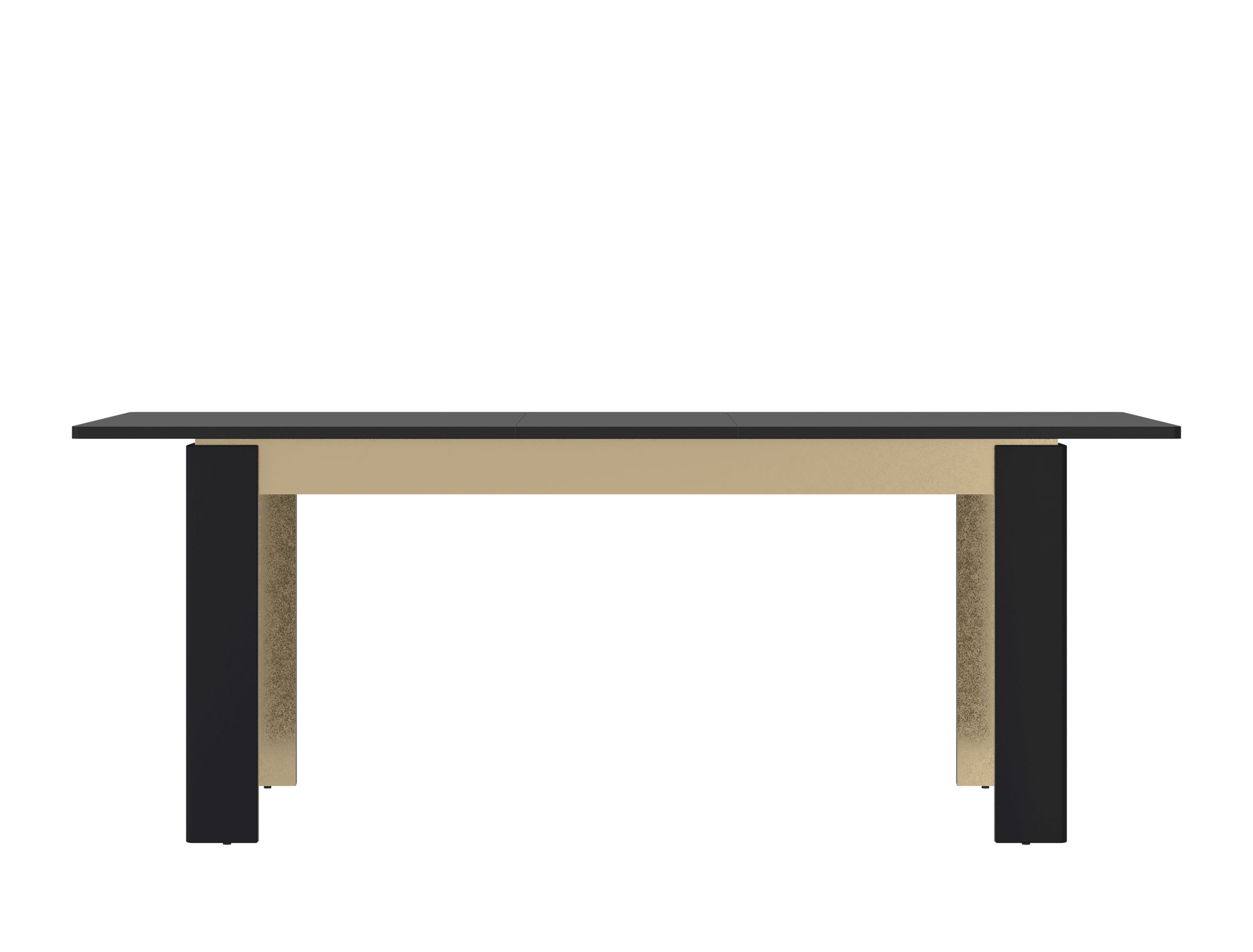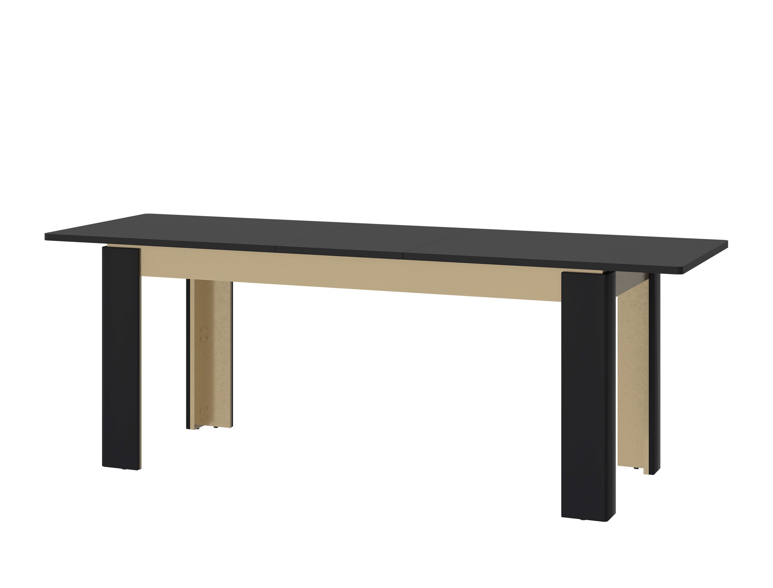 Schwarz matt kombiniert mit Absetzungen in goldfarben, Spanplatte mit Melaminharzbeschichtung