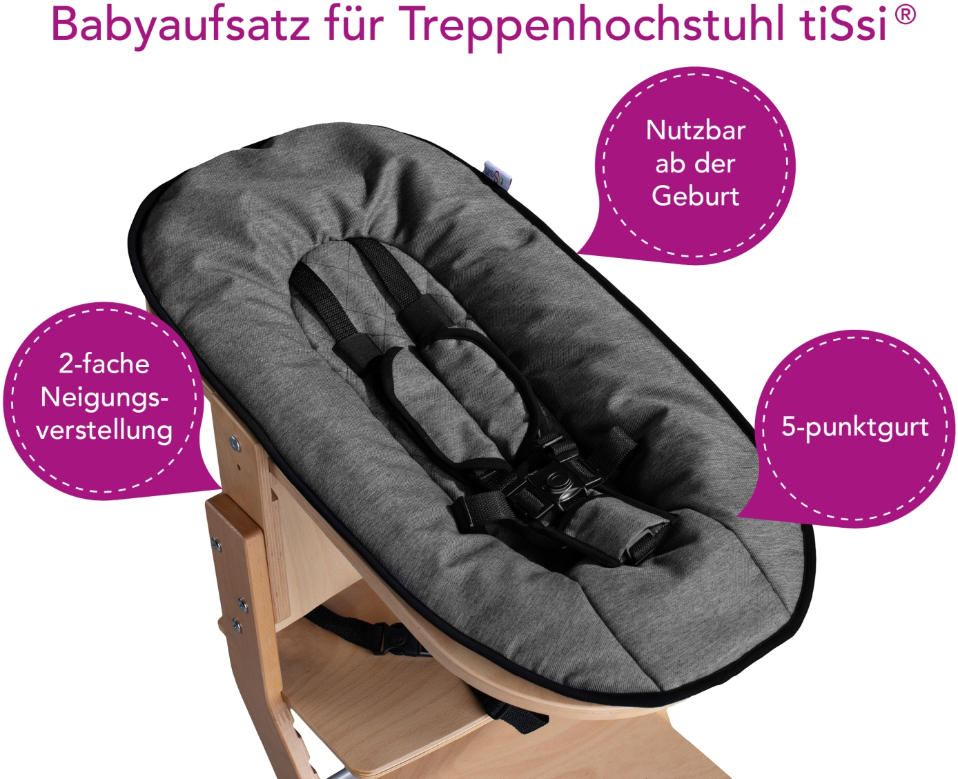 Der Newborn Aufsatz fördert von Geburt an die Interaktion, weil es Ihr Neugeborenes am Tisch auf Augenhöhe mit dem Rest der Familie zusammenbringt. Durch die 2-fache Neigungsverstellung haben Sie die Möglichkeit, wenn Ihr Kind anfängt Beikost zu bekommen, dieses bereits bequem, sicher und rückenschonend im Hochstuhl zu füttern.