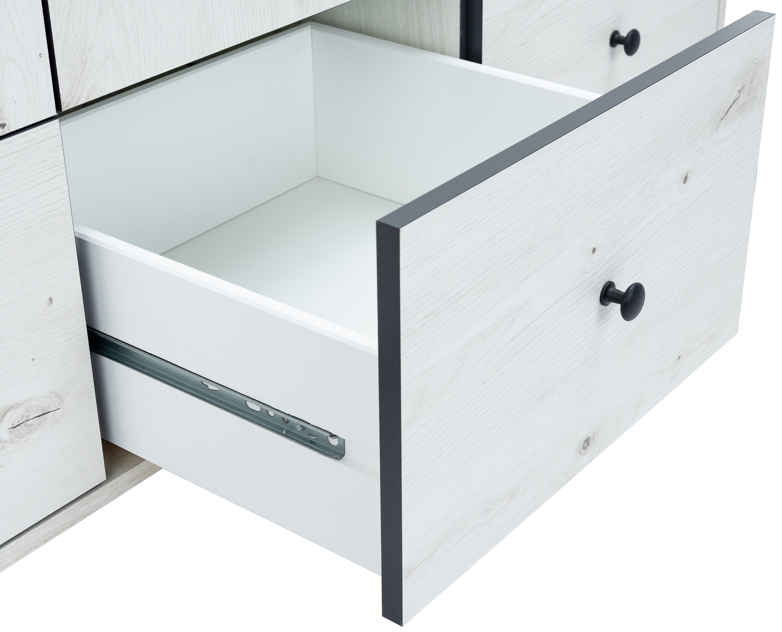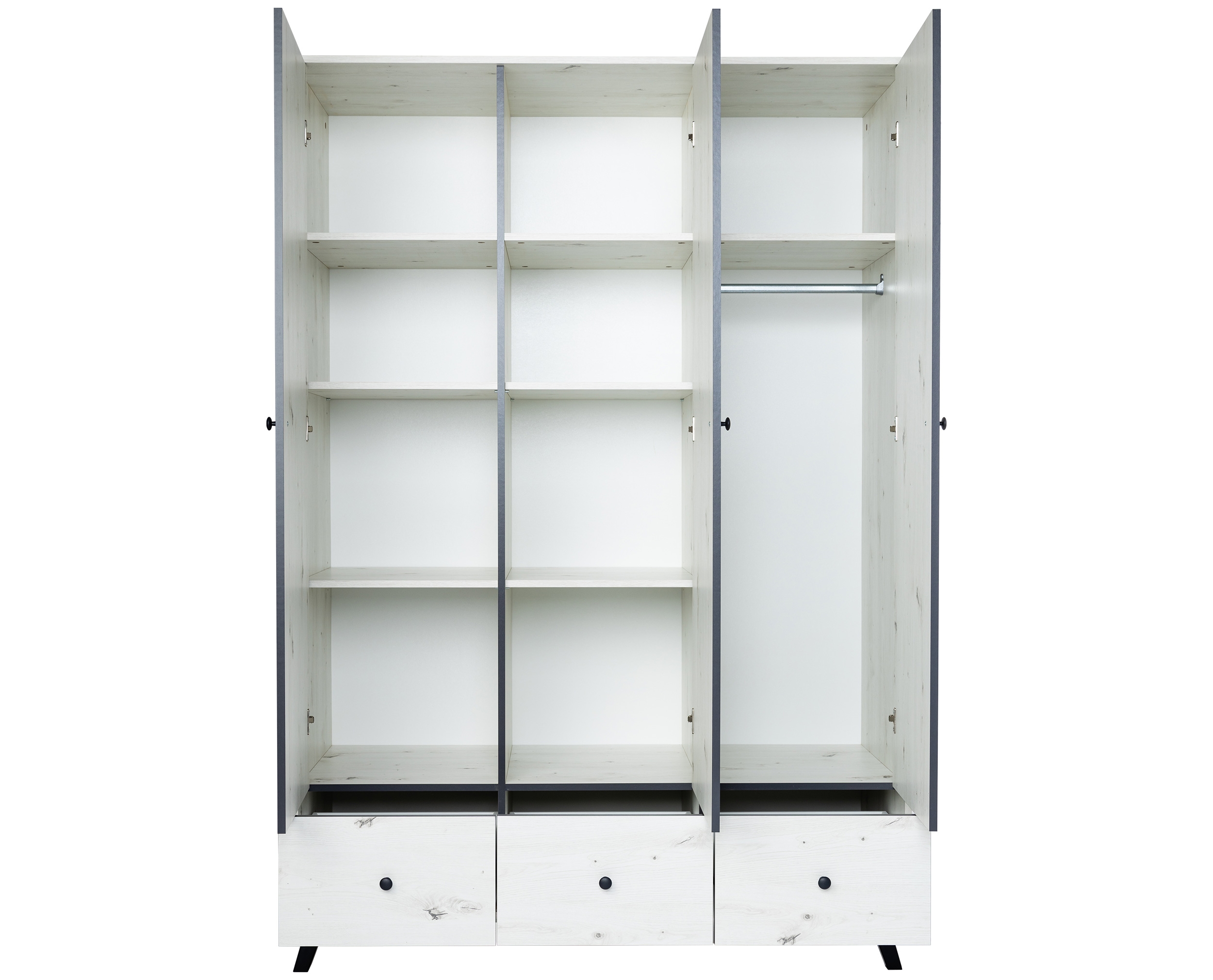 Rechts: 1 Einlegeboden, 1 Kleiderstange und 1 Schubkasten