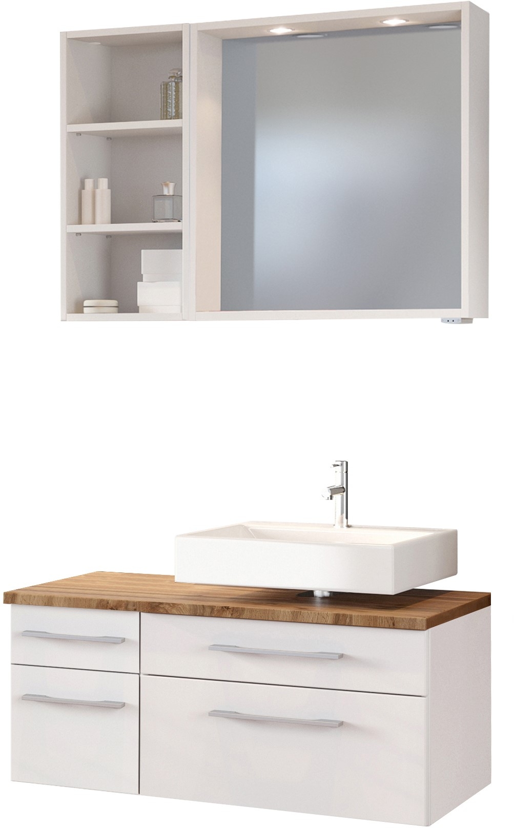 1 Waschbeckenunterschrank mit 2 Schubkästen und 2 Auszügen mit Softclose-Funktion, inklusive Siphonausschnitt rechts
