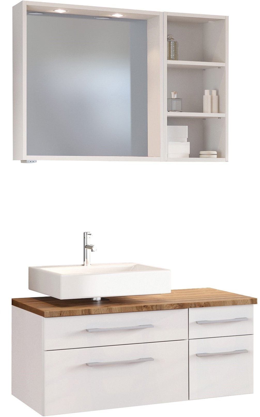 1 Waschbeckenunterschrank mit 2 Schubkästen und 2 Auszügen mit Softclose-Funktion, inklusive Siphonausschnitt links