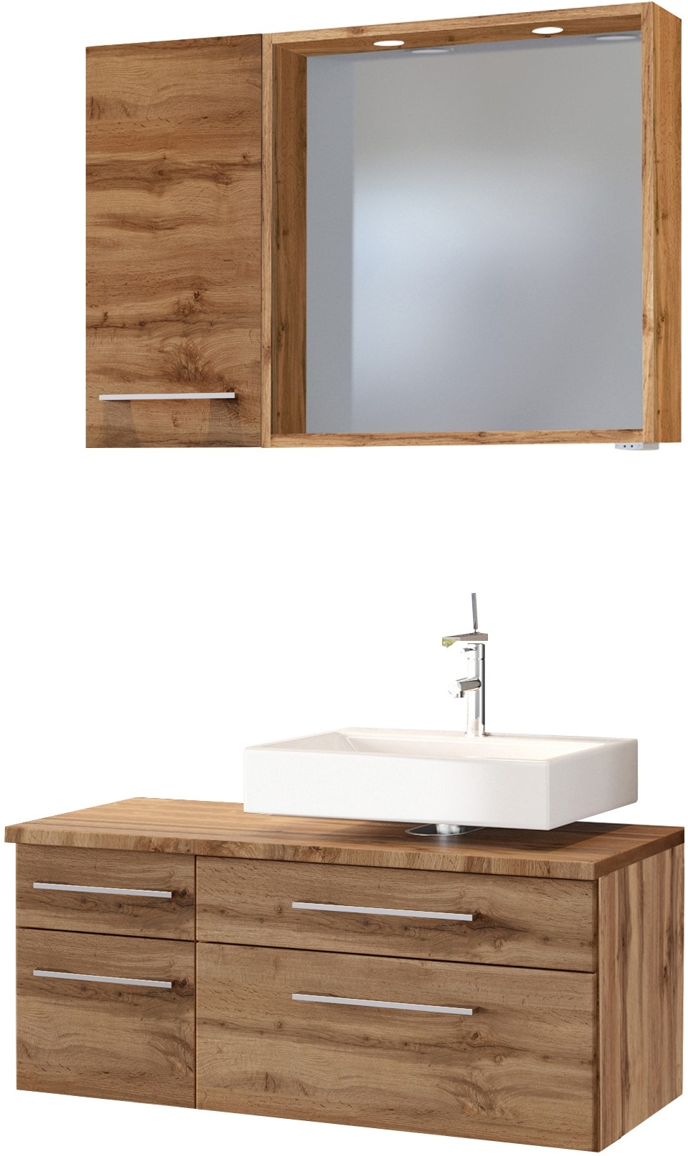 1 Waschbeckenunterschrank mit 2 Schubkästen und 2 Auszügen mit Softclose-Funktion, inklusive Siphonausschnitt rechts