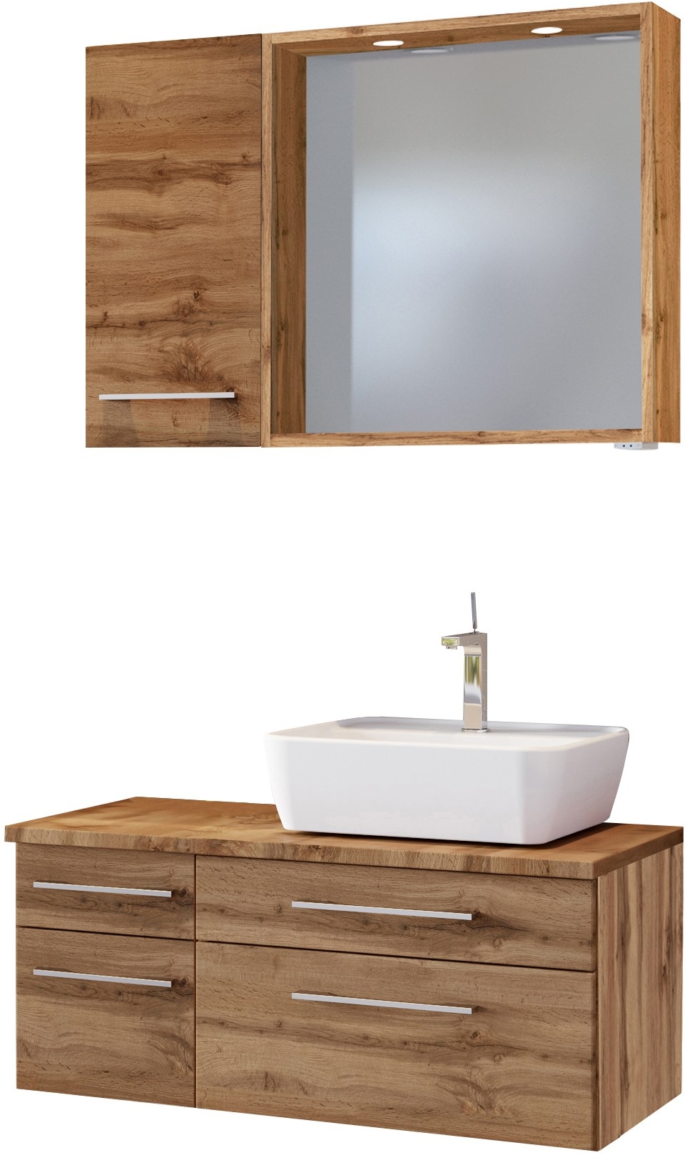 1 Waschbeckenunterschrank mit 2 Schubkästen und 2 Auszügen mit Softclose-Funktion, inklusive Siphonausschnitt