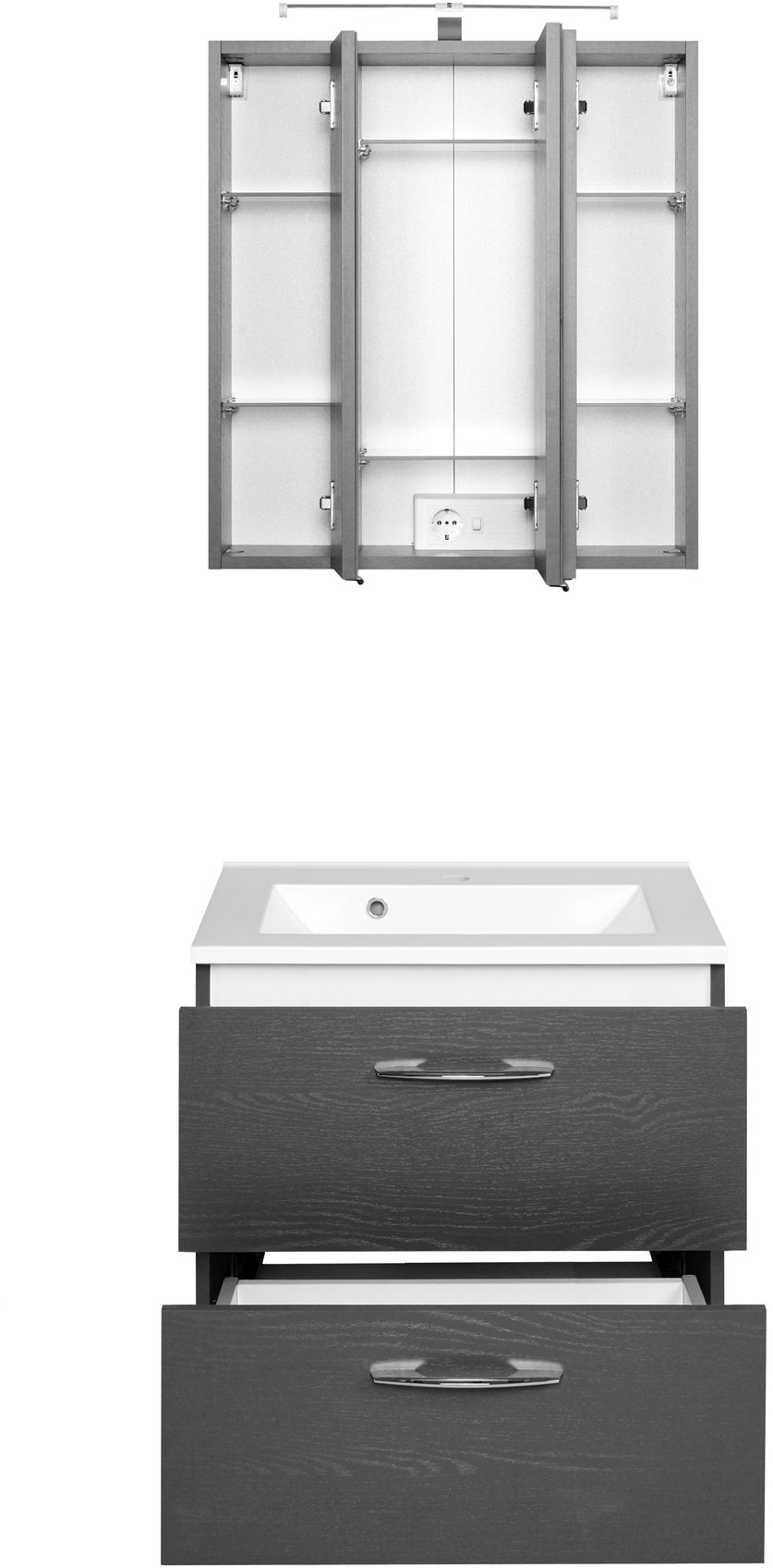 Front: Melamin Graphitgrau / Spiegel
