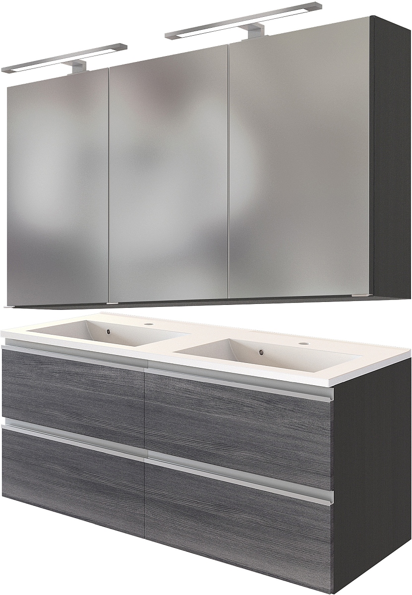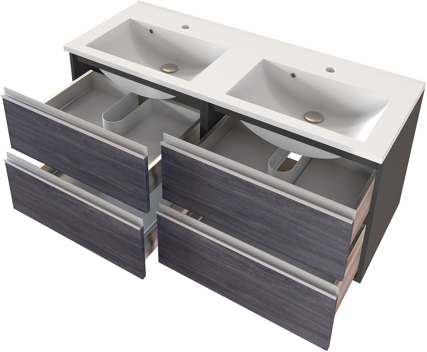 1 Waschbeckenunterschrank mit Mineralguss-Doppelbecken