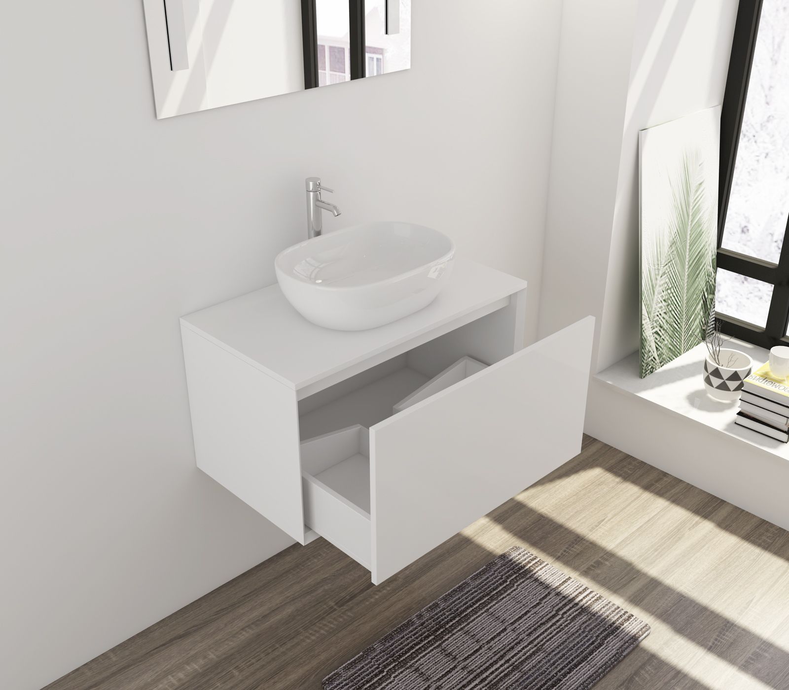 | Material: | Holzwerkstoff, Mineralguss, Spiegel | ||