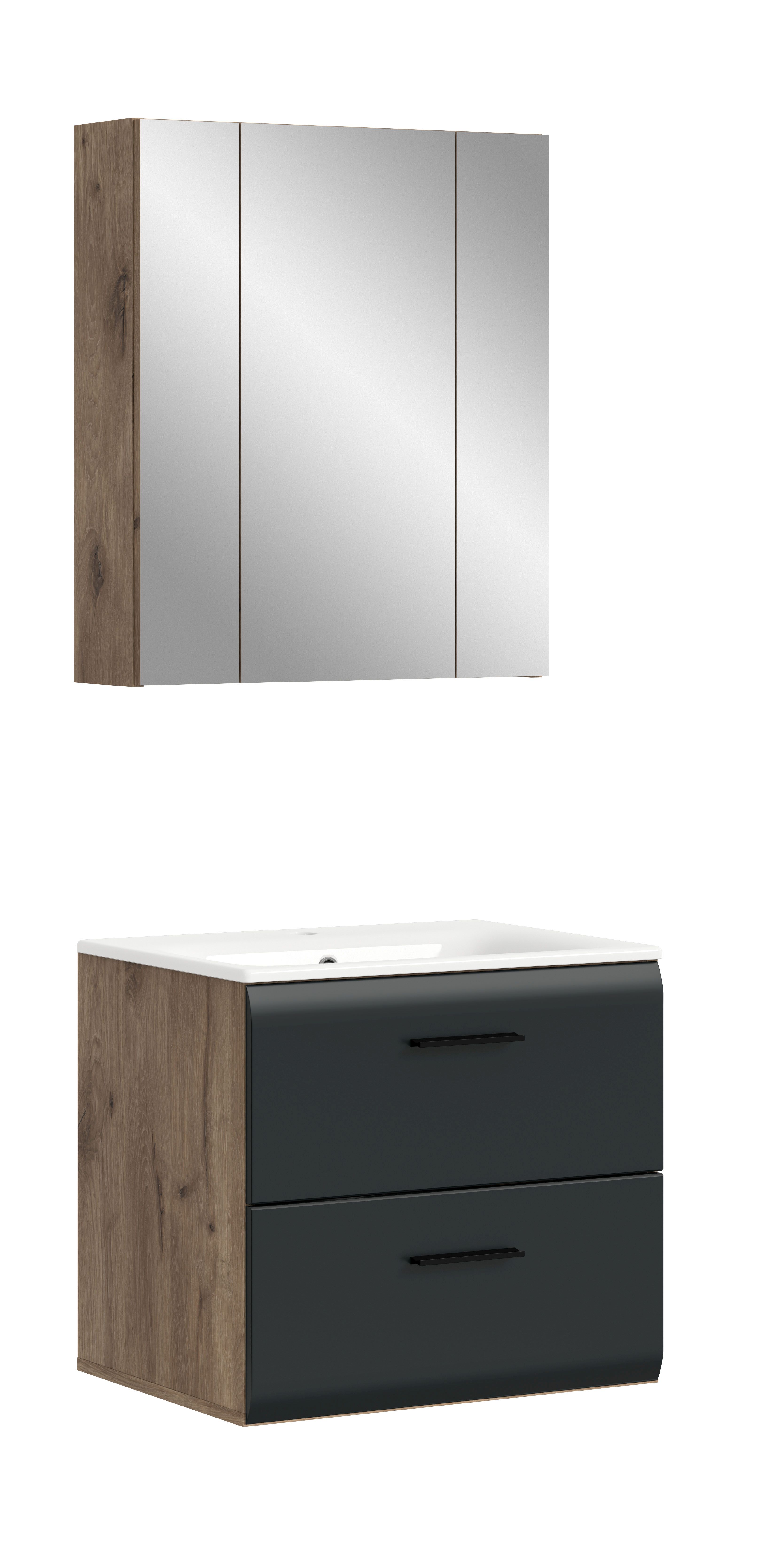 - 2-teilige Badkombination beteht aus 1x Waschtisch inkl. Waschbecken, 1x Spiegelschrank