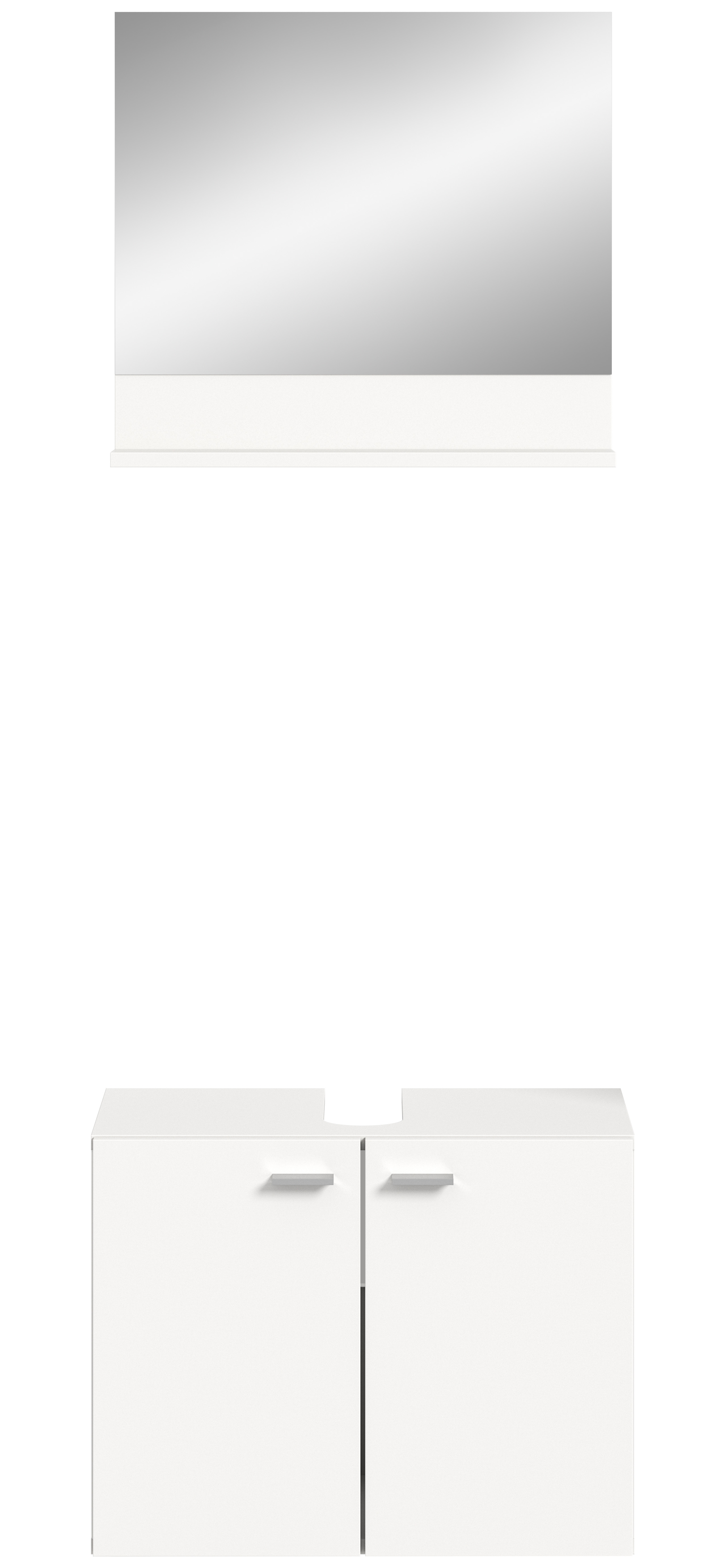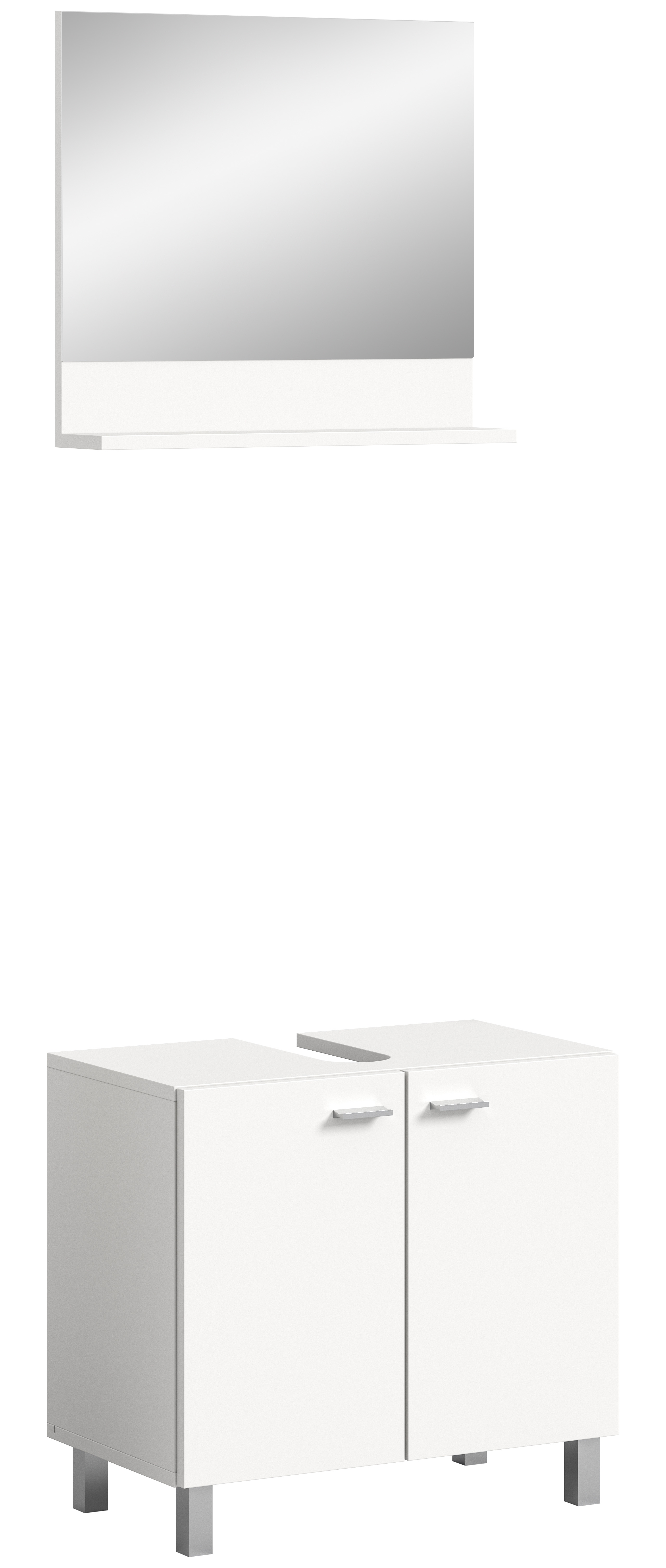 - Design/Stil: Moderner Waschbeckenunterschrank mit passendem Spiegel in strahlendem Weiß für ein sauberes und zeitgemäßes Erscheinungsbild im Badezimmer.