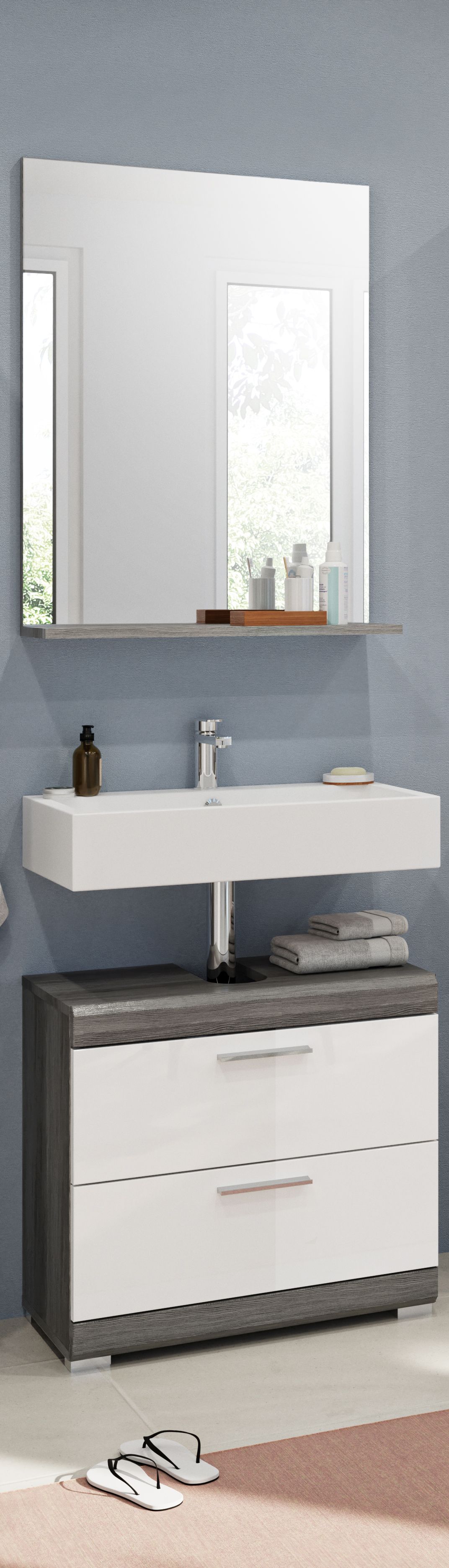 Verleihe deinem Badezimmer den ultimativen Style mit unserer Badkombination in angesagtem Rauchsilber Nachbildung und weißem Hochglanz tiefgezogenem Finish. Mit ihrem trendigen Design und der hochwertigen Verarbeitung setzt sie ein modernes Statement in deinem Zuhause. Entdecke jetzt die perfekte Verbindung von Coolness und Funktionalität für dein Badezimmer!