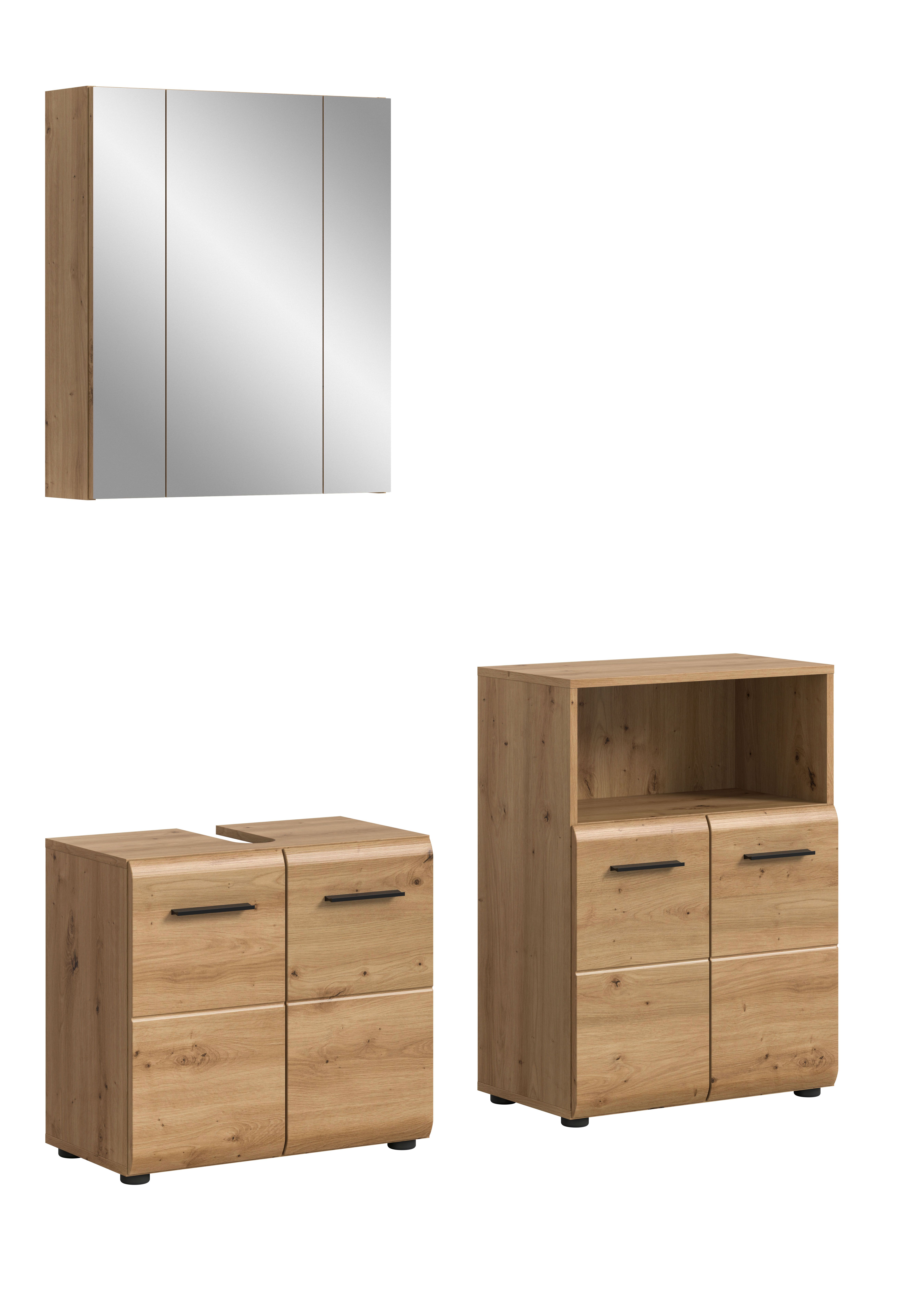 Entdecken Sie unsere elegante Badezimmer Badkombination in Artisan Eiche Holznachbildung. Diese durchdachte Kombination aus verschiedenen Badmöbeln bietet nicht nur Stauraum für Ihre Badutensilien, sondern verleiht Ihrem Badezimmer auch einen modernen und aufgeräumten Look.