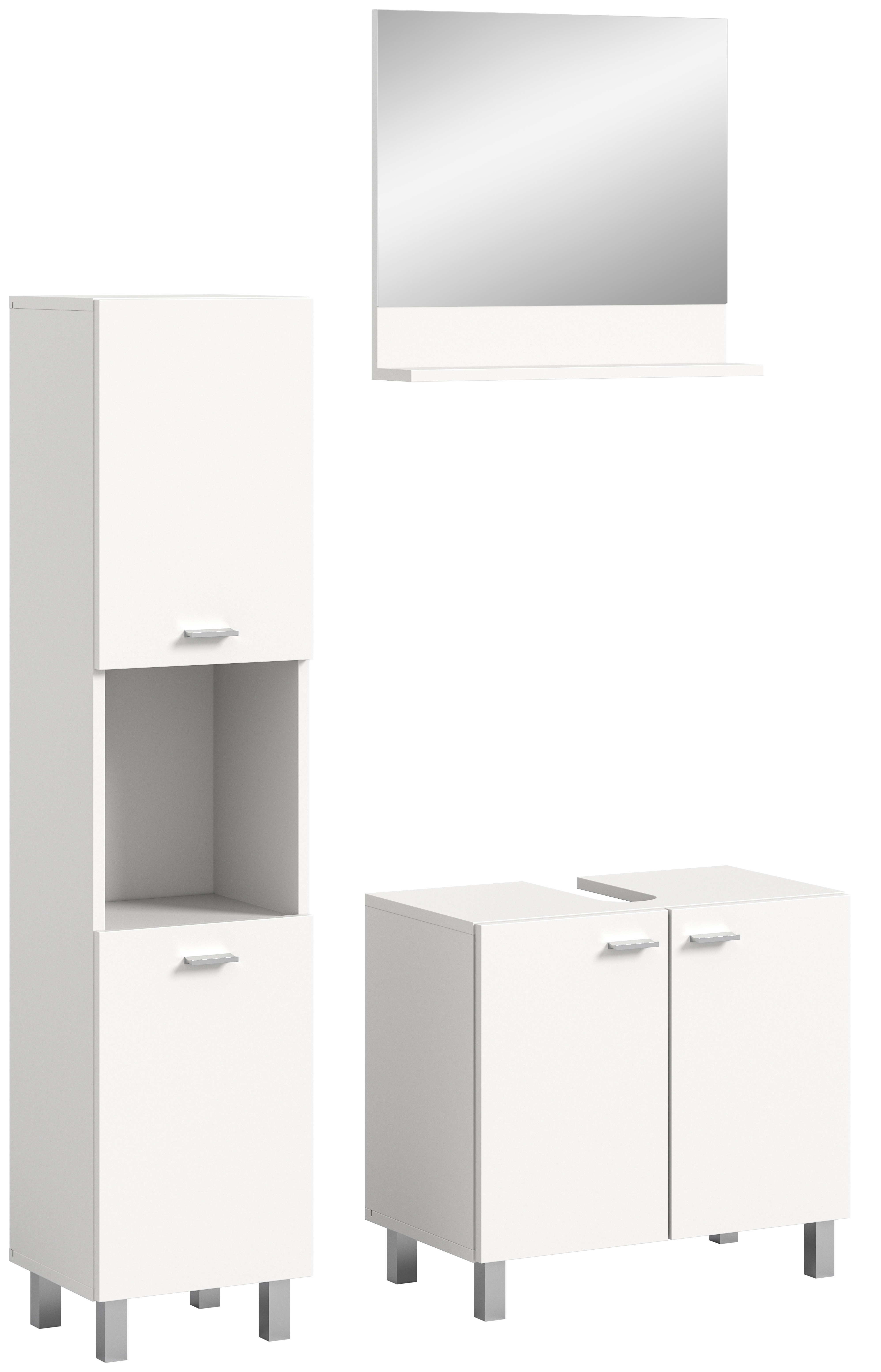 - Design/Stil: Schlichte und moderne Badkombination in strahlendem Weiß für ein helles und zeitgemäßes Erscheinungsbild im Badezimmer.