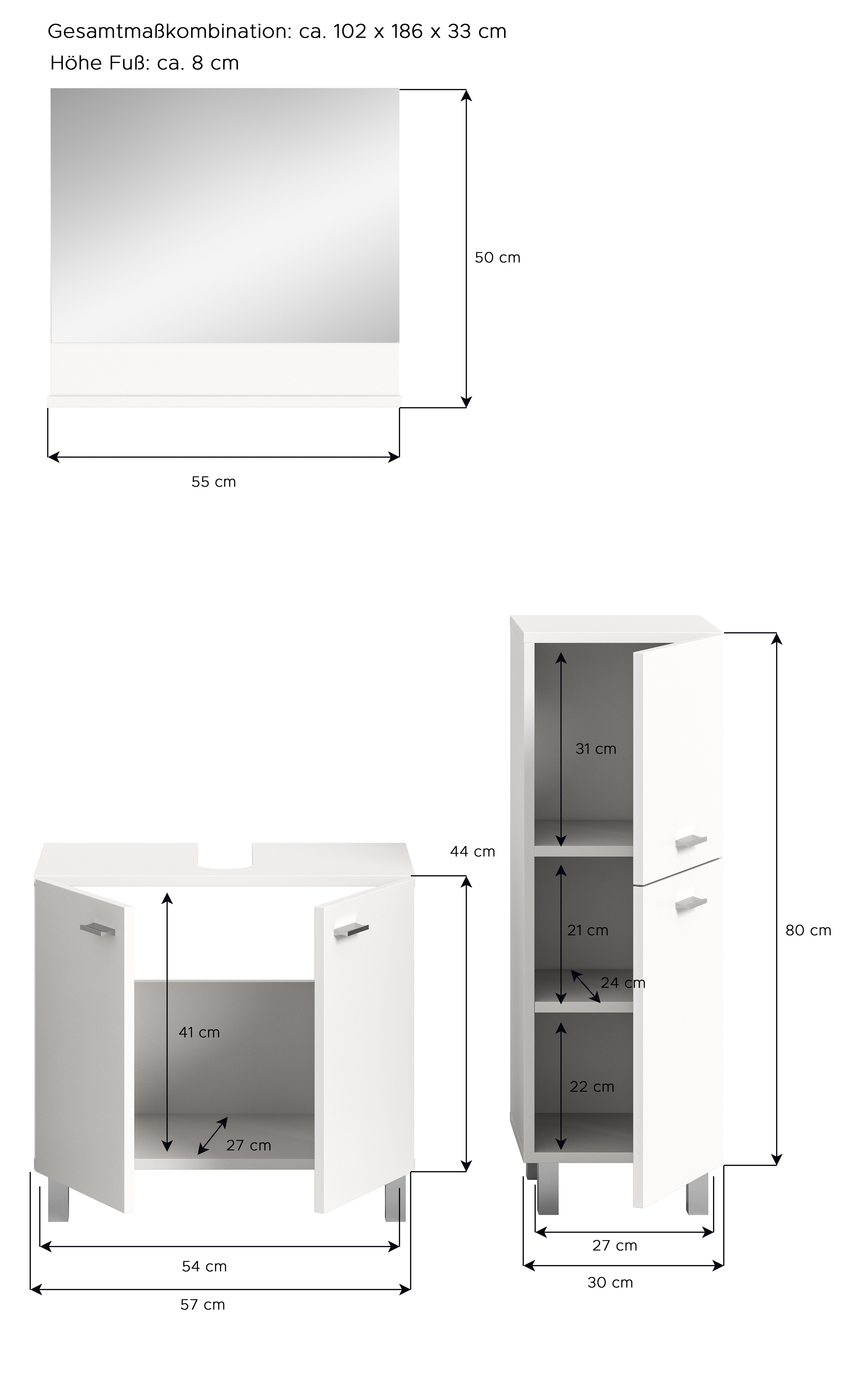 | Waschbeckenunterschrank | 57 | 44 | 33 |