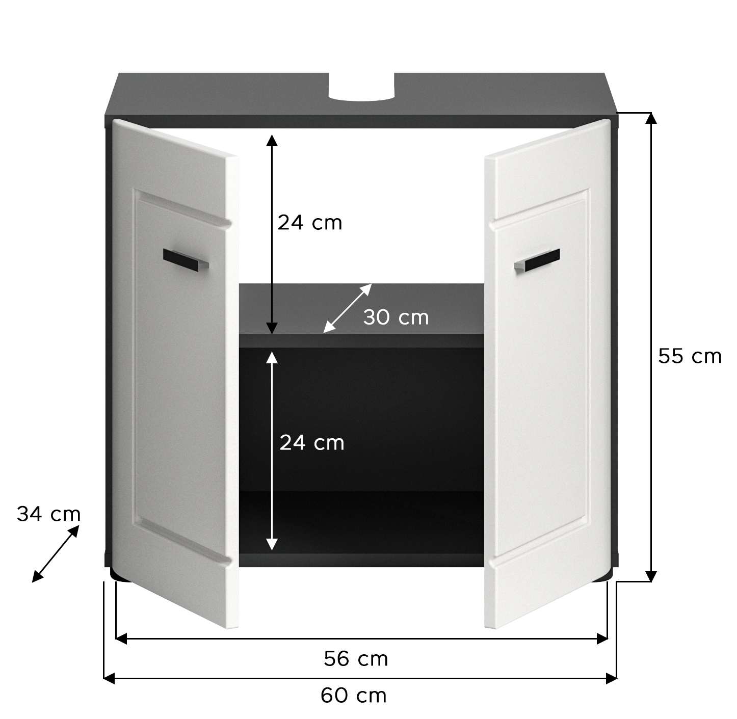 1 Waschbeckenunterschrank mit 2 Türen und 1 Einlegeboden