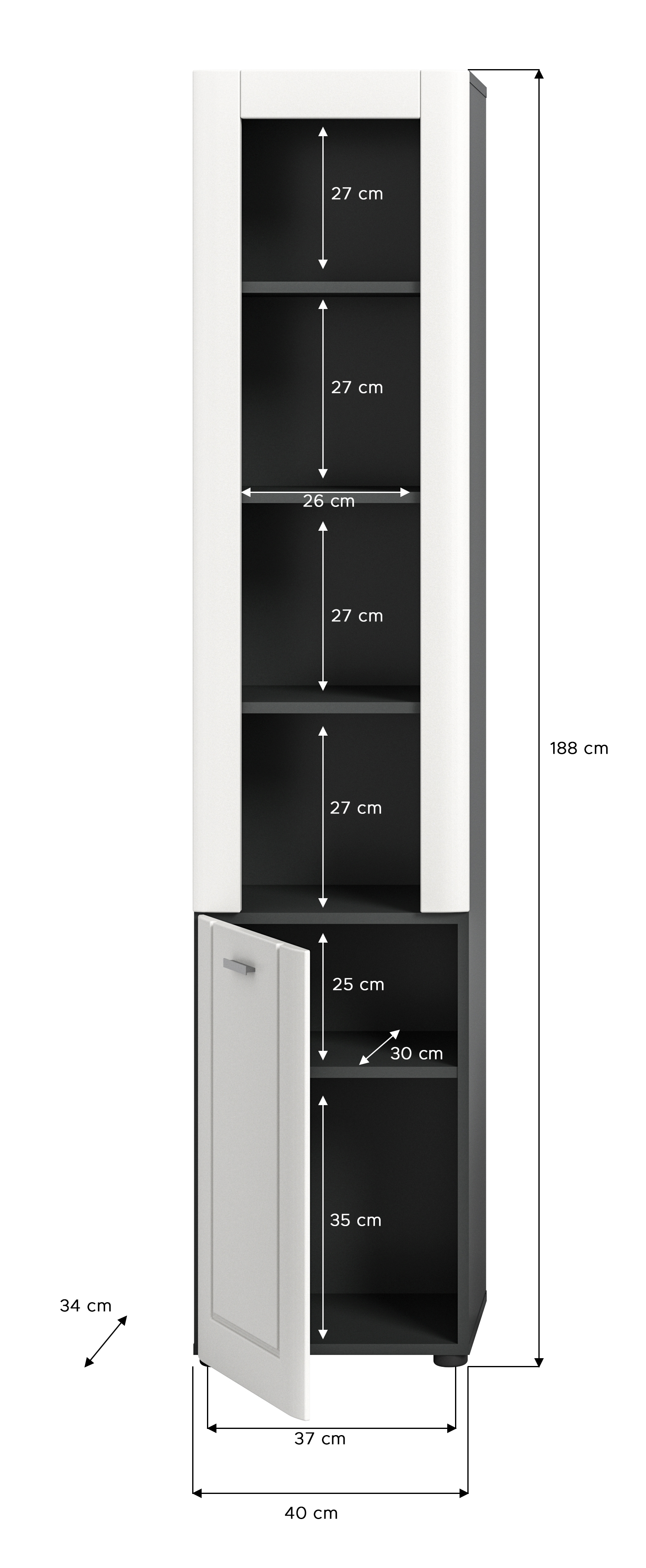 1 Hochschrank mit 1 Tür,1 Einlegeboden und 4 offenen Fächern