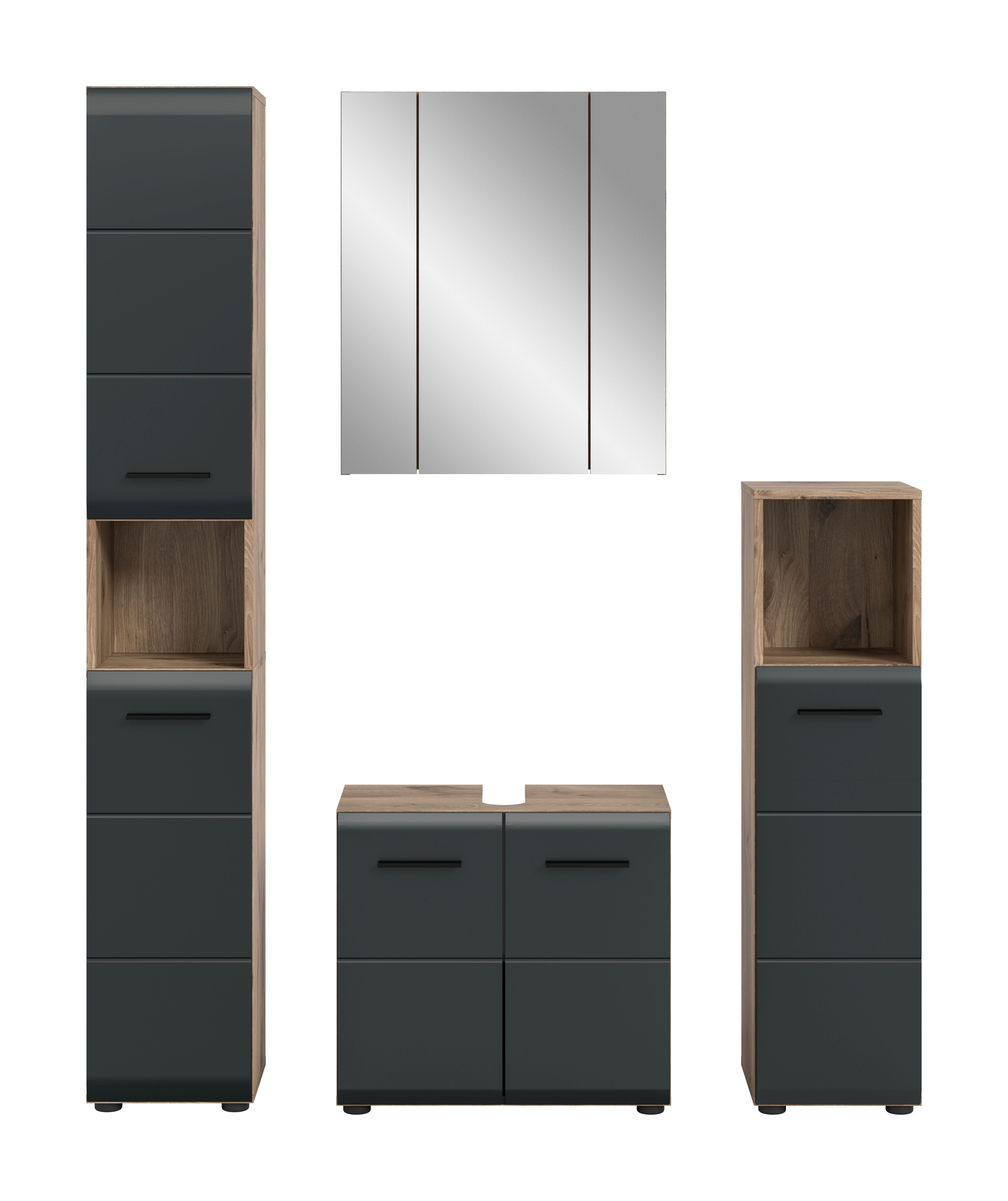 - Funktionalität: Kombination aus Waschbeckenunterschrank, Spiegelschrank, Hochschrank und Midischrank für eine umfassende und platzsparende Lösung zur Aufbewahrung und Nutzung im Badezimmer.