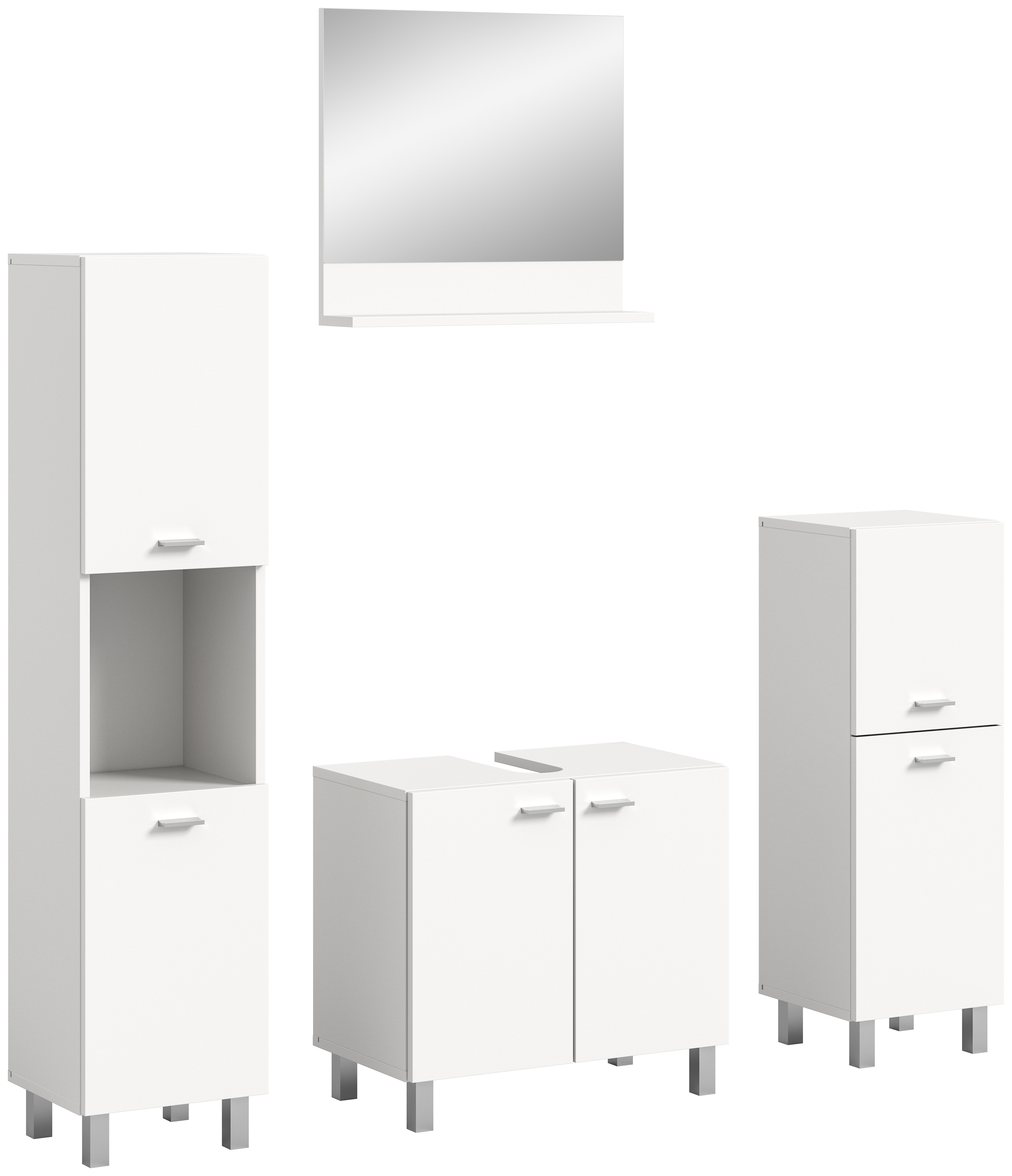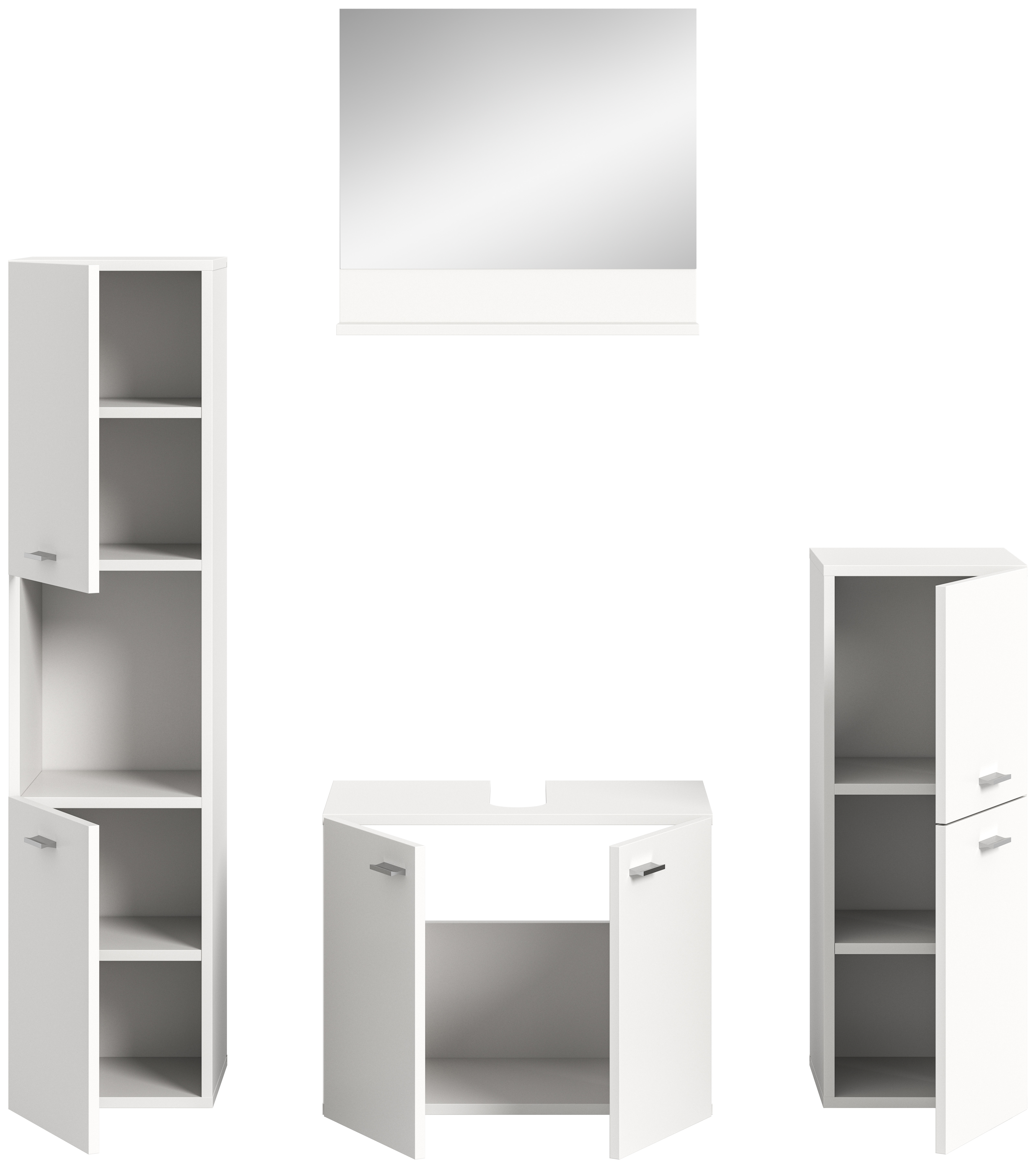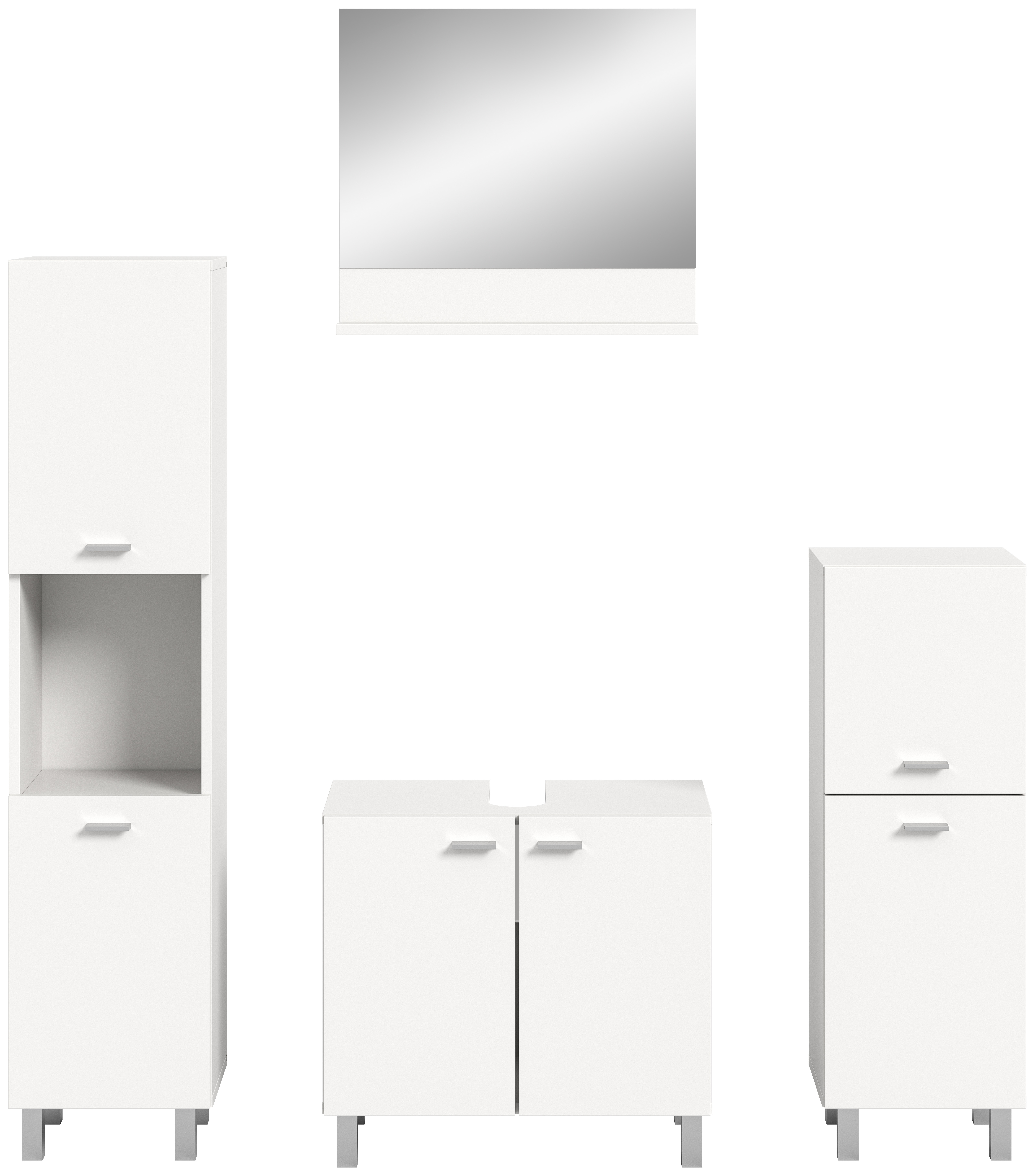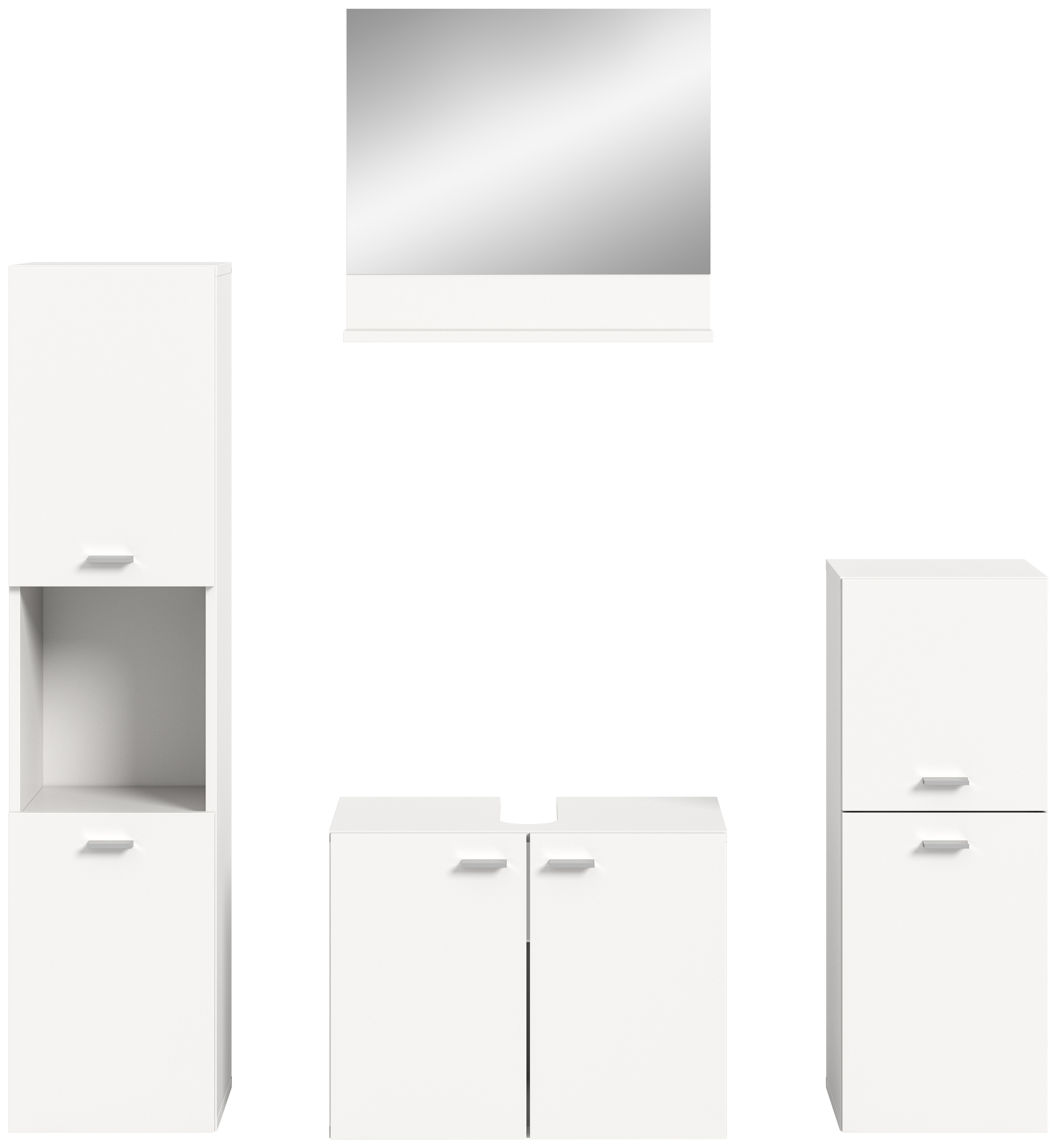 - Design/Stil: Schlichte und moderne Badkombination in strahlendem Weiß für ein helles und zeitgemäßes Erscheinungsbild im Badezimmer.