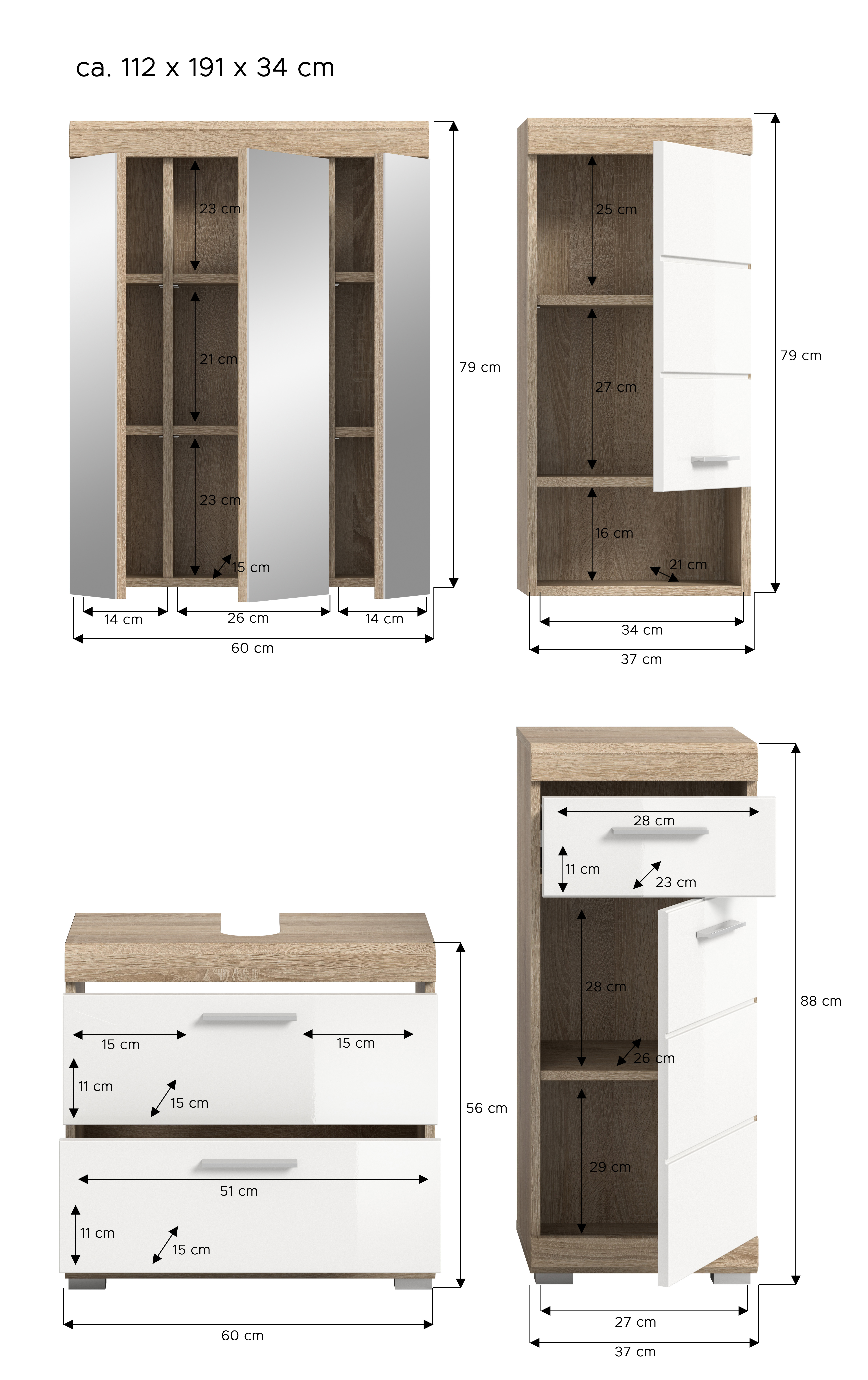 - Design/Stil: Die Kombination aus Sonoma Eiche hell und weißem Hochglanz tiefgezogenem Finish sorgt für ein modernes und ansprechendes Erscheinungsbild im Badezimmer oder Hauswirtschaftsraum.