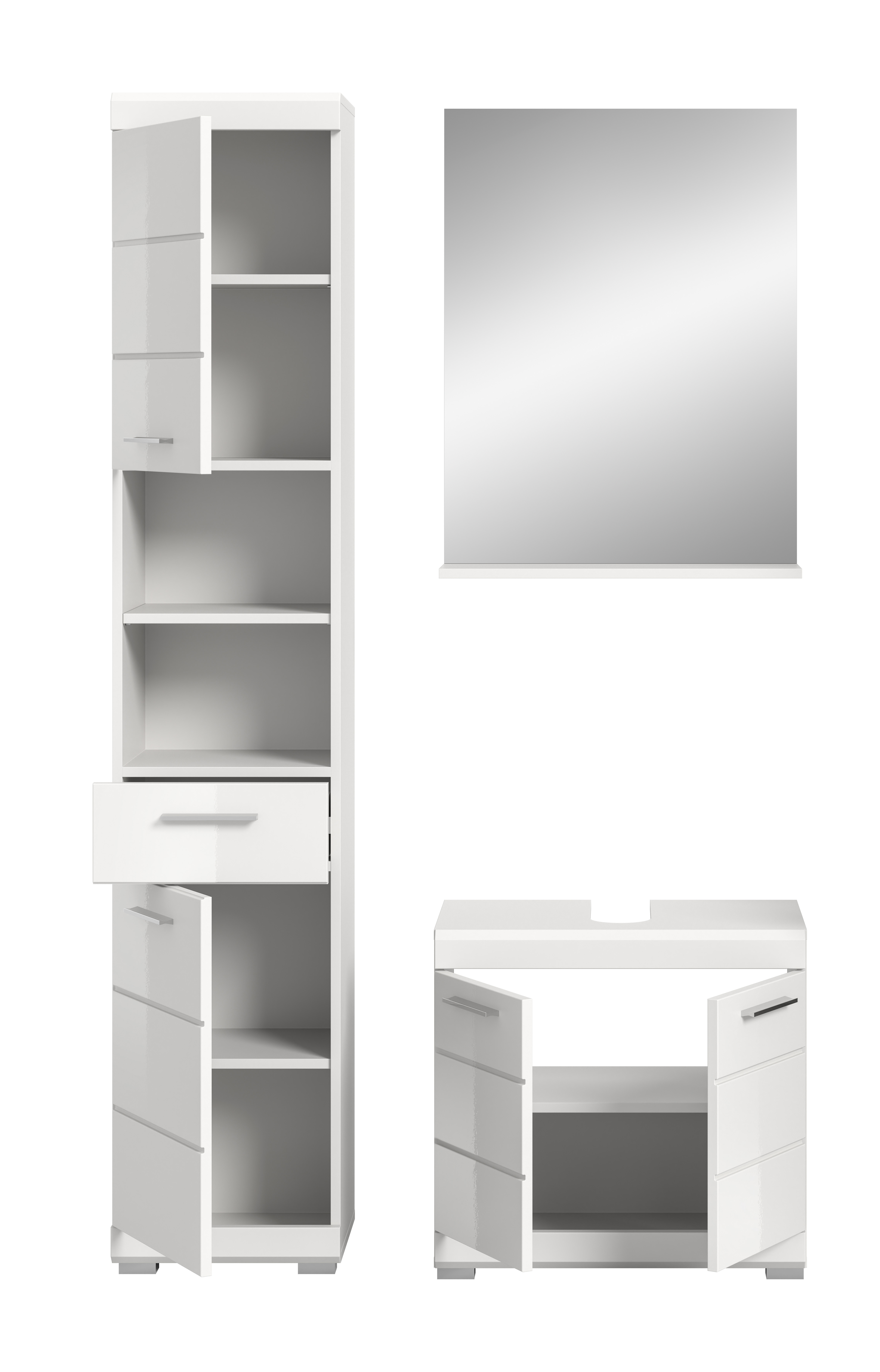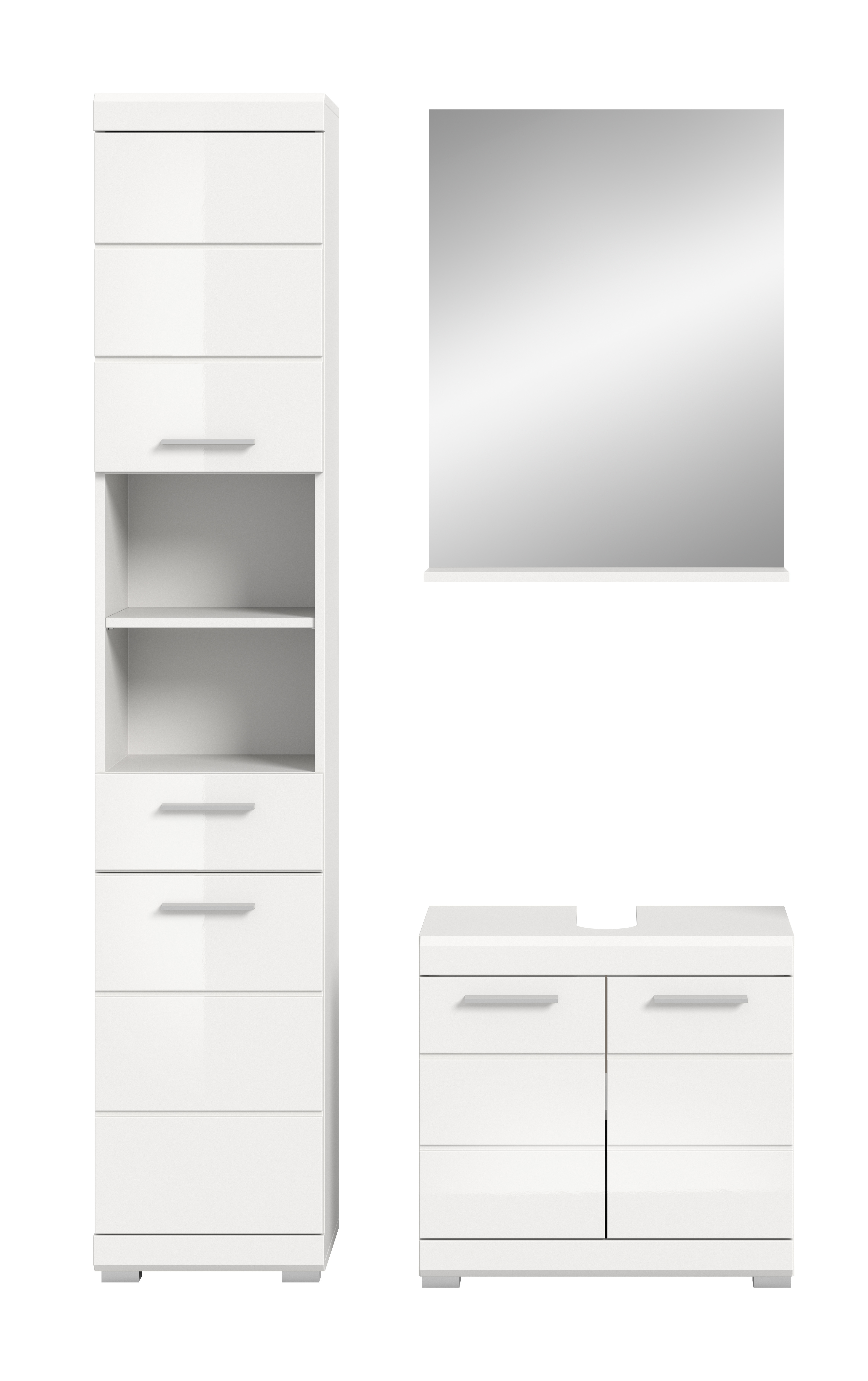 Verleihe deinem Badezimmer den ultimativen Style mit unserer Badkombination in angesagtem weiß Nachbildung und weißem Hochglanz tiefgezogenem Finish. Mit ihrem trendigen Design und der hochwertigen Verarbeitung setzt sie ein modernes Statement in deinem Zuhause. Entdecke jetzt die perfekte Verbindung von Coolness und Funktionalität für dein Badezimmer!