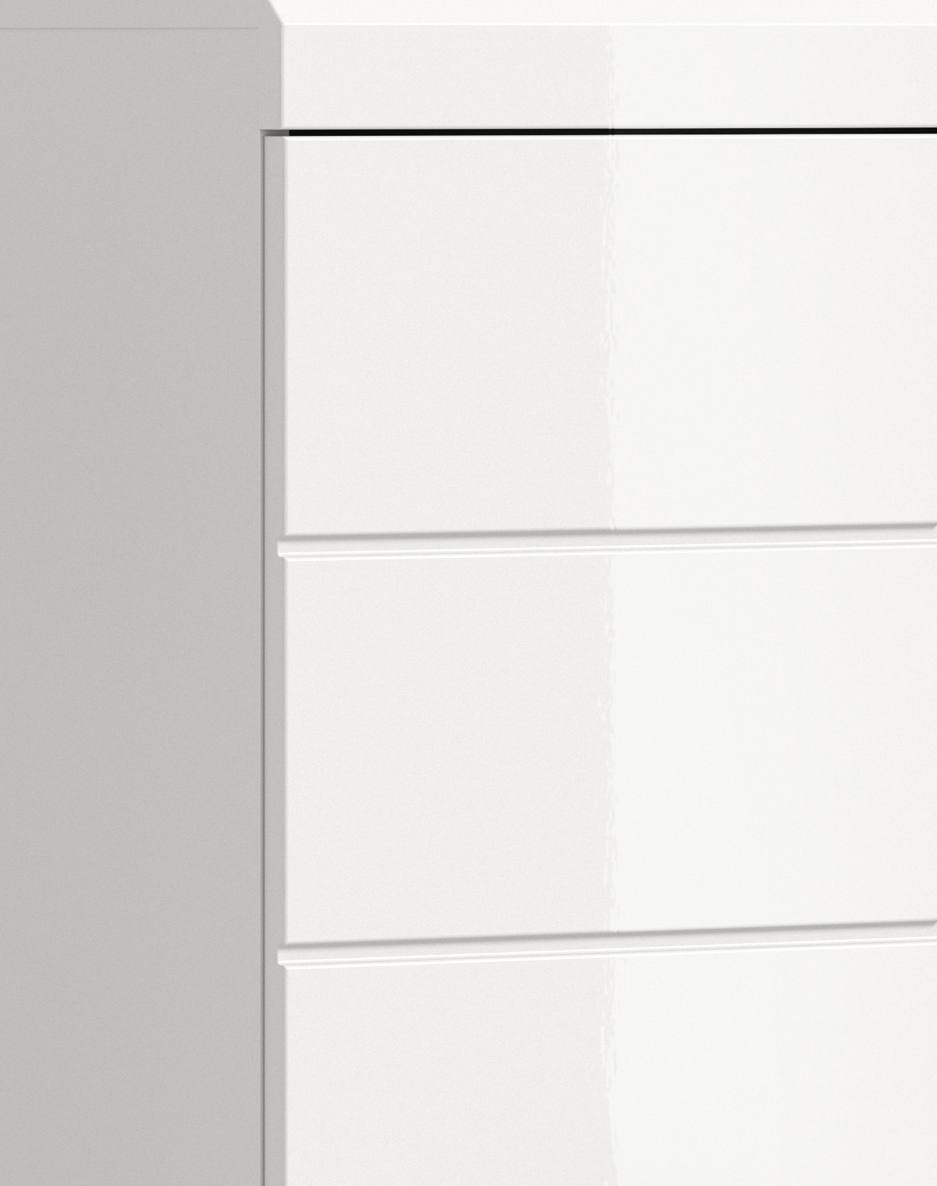 Front: Weiß Hochglanz MDF (Mitteldichte Holzfaserplatte) Tiefzieh