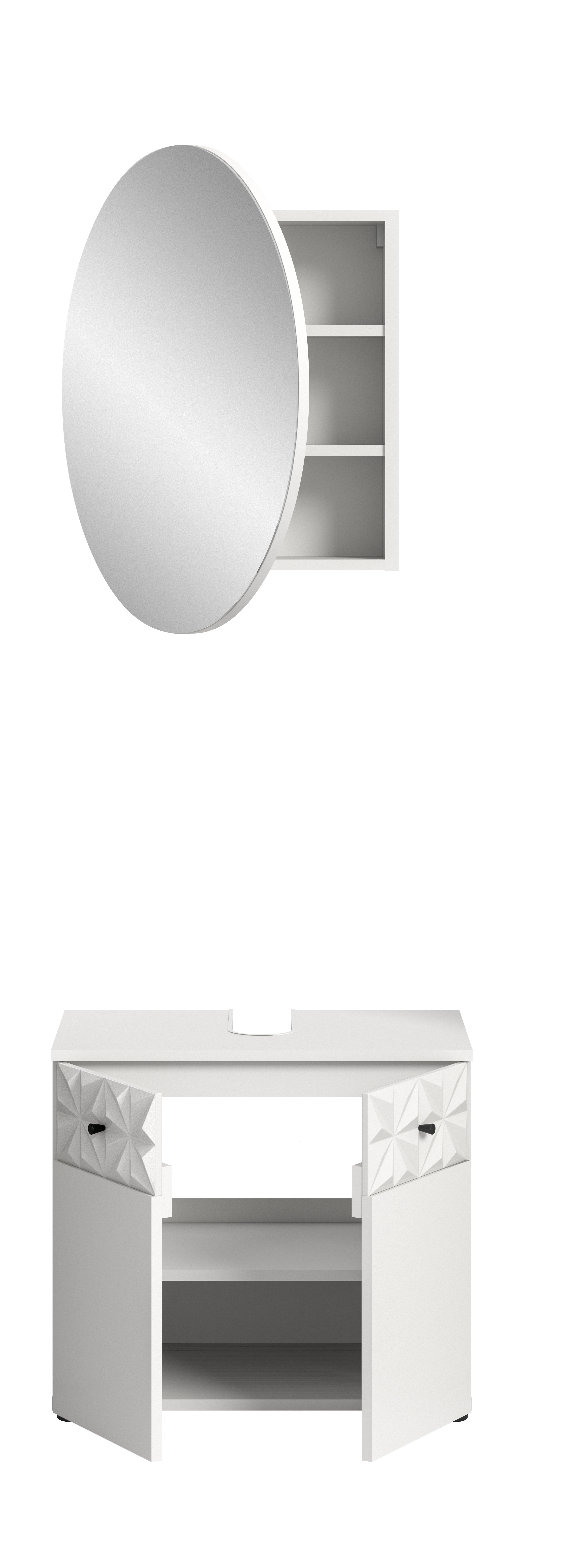 Die Badkombination in weißer Nachbildung verbindet modernes Design mit hoher Funktionalität und nachhaltiger Verarbeitung. Perfekt geeignet, um Ihr Badezimmer stilvoll zu gestalten. Diese stilvolle Badkombination bringt Ordnung und Eleganz in Ihr Badezimmer und unterstützt gleichzeitig einen nachhaltigen Lebensstil. Kombinieren Sie modernes Design mit praktischen Funktionen für eine Wohlfühloase in Ihrem Zuhause!