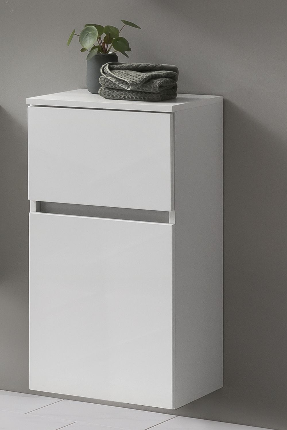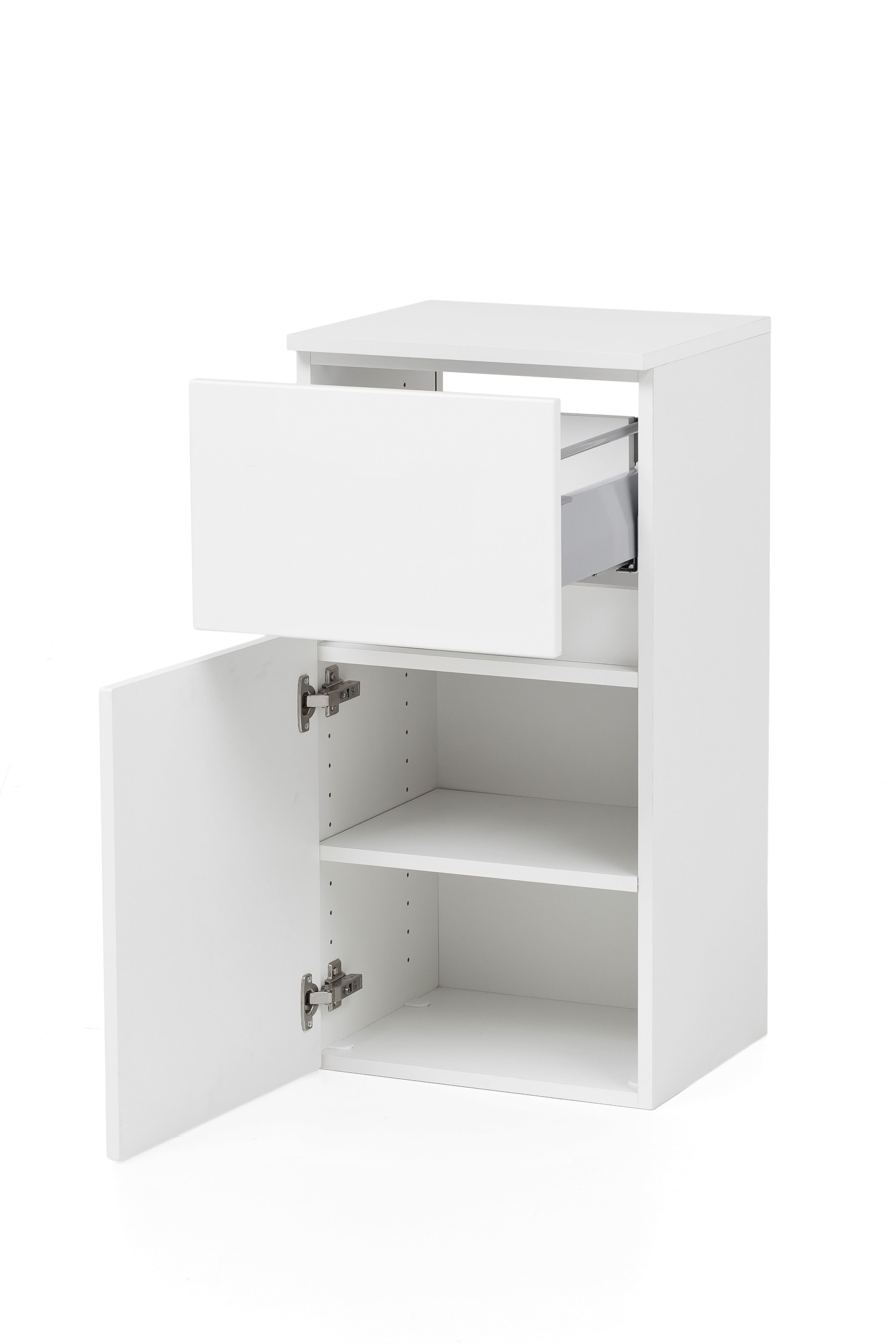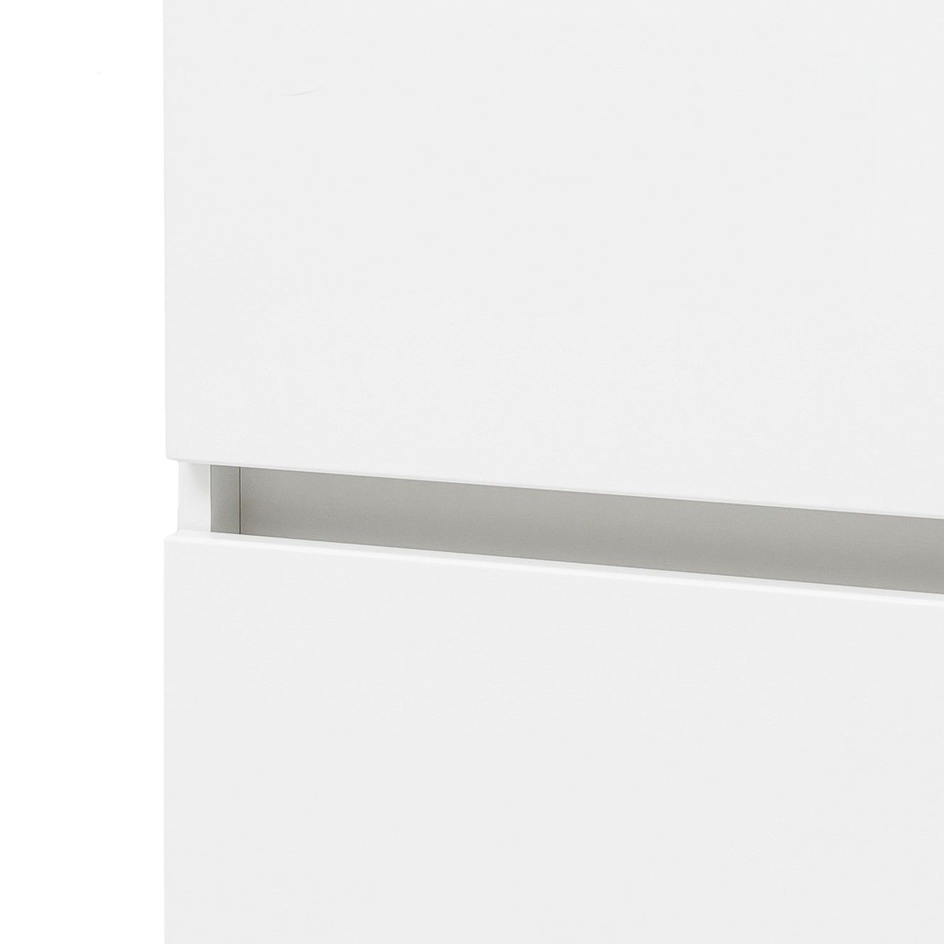 Front: MDF (Mitteldichte Holzfaserplatte) in matt weiß