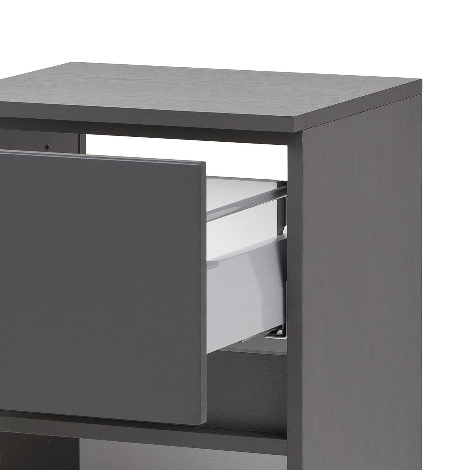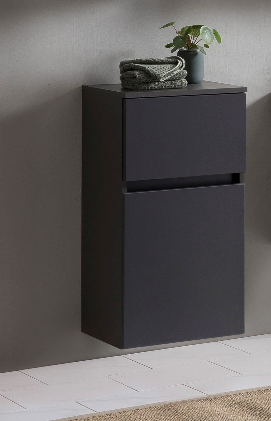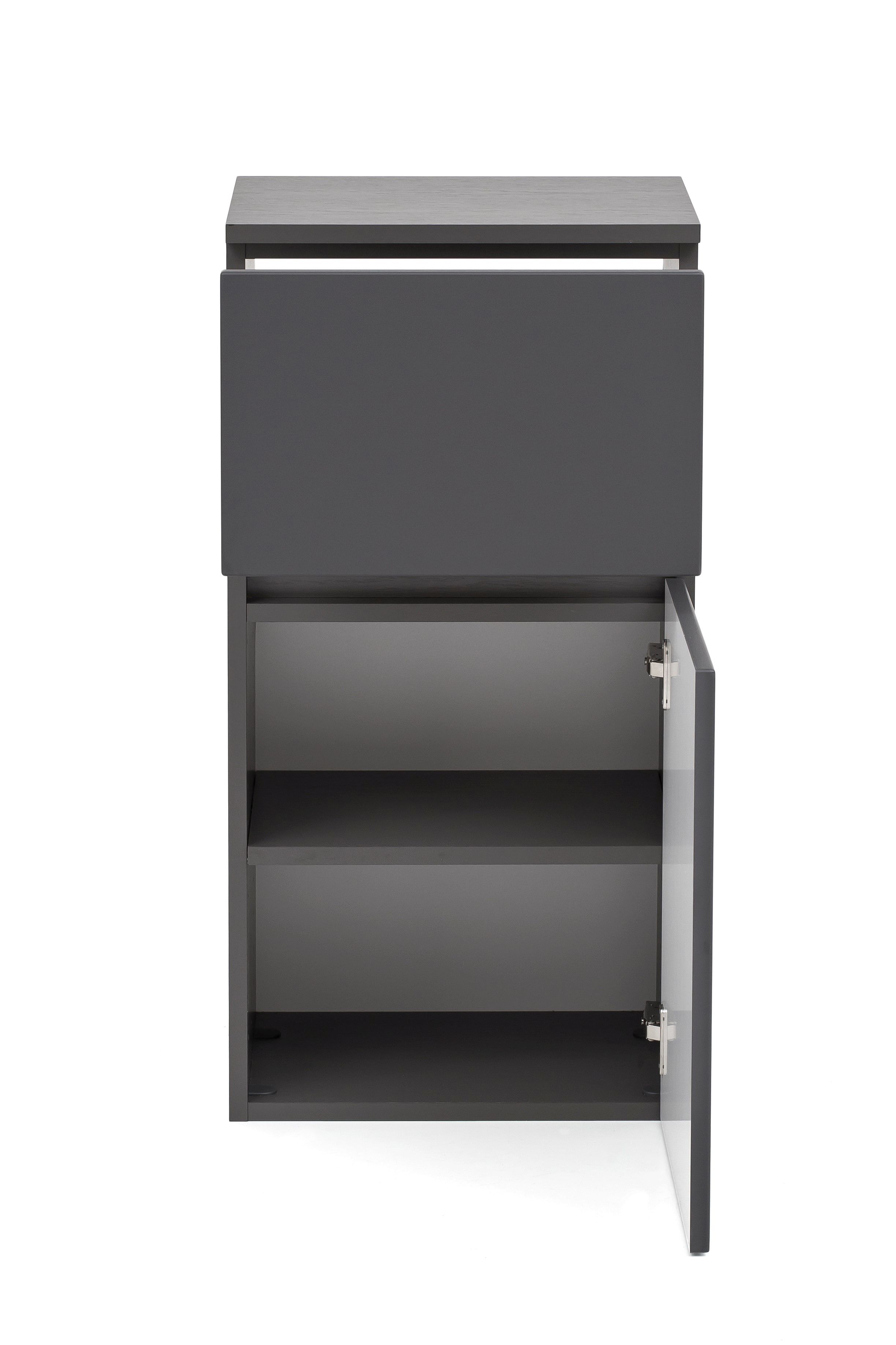 Front: MDF (Mitteldichte Holzfaserplatte) in matt grau