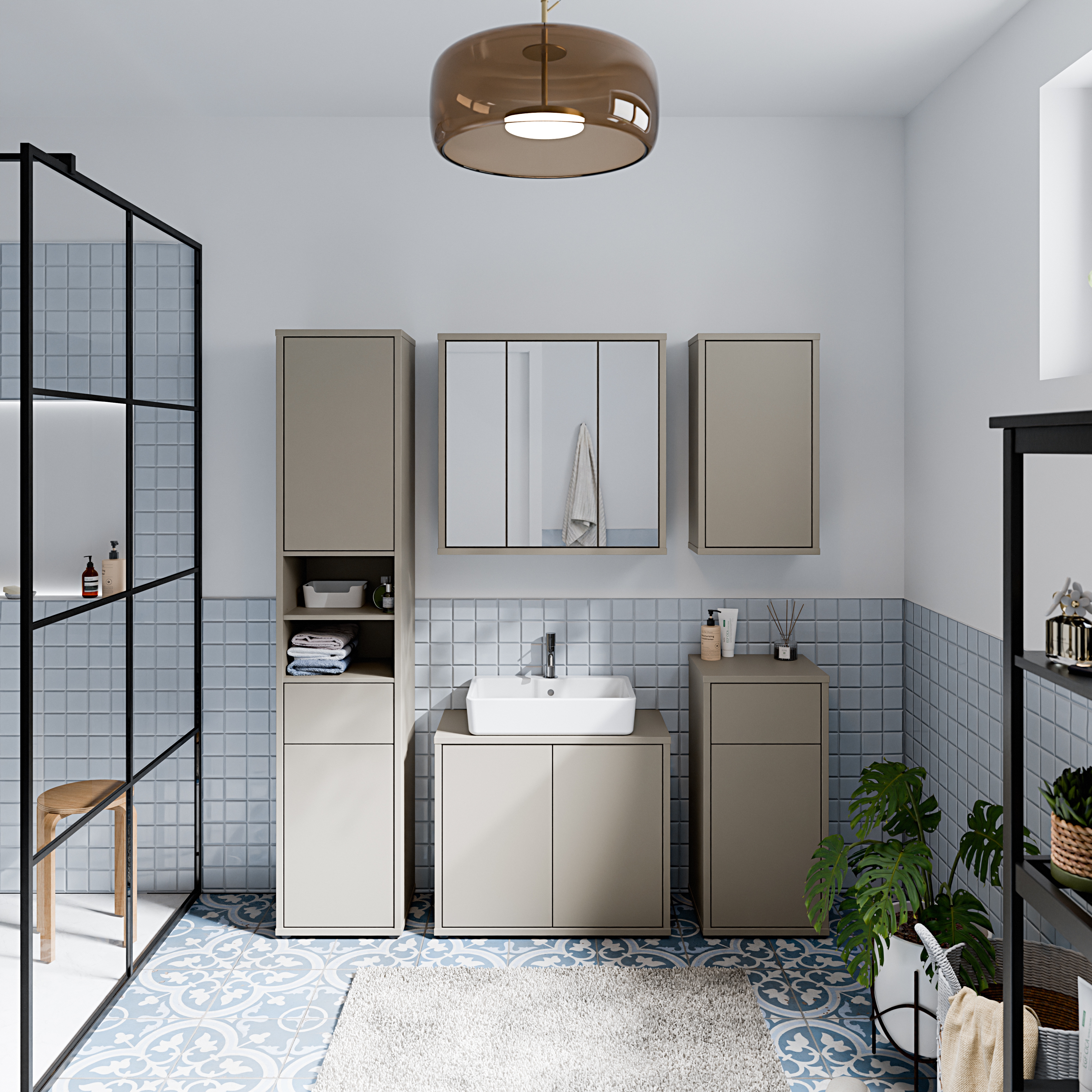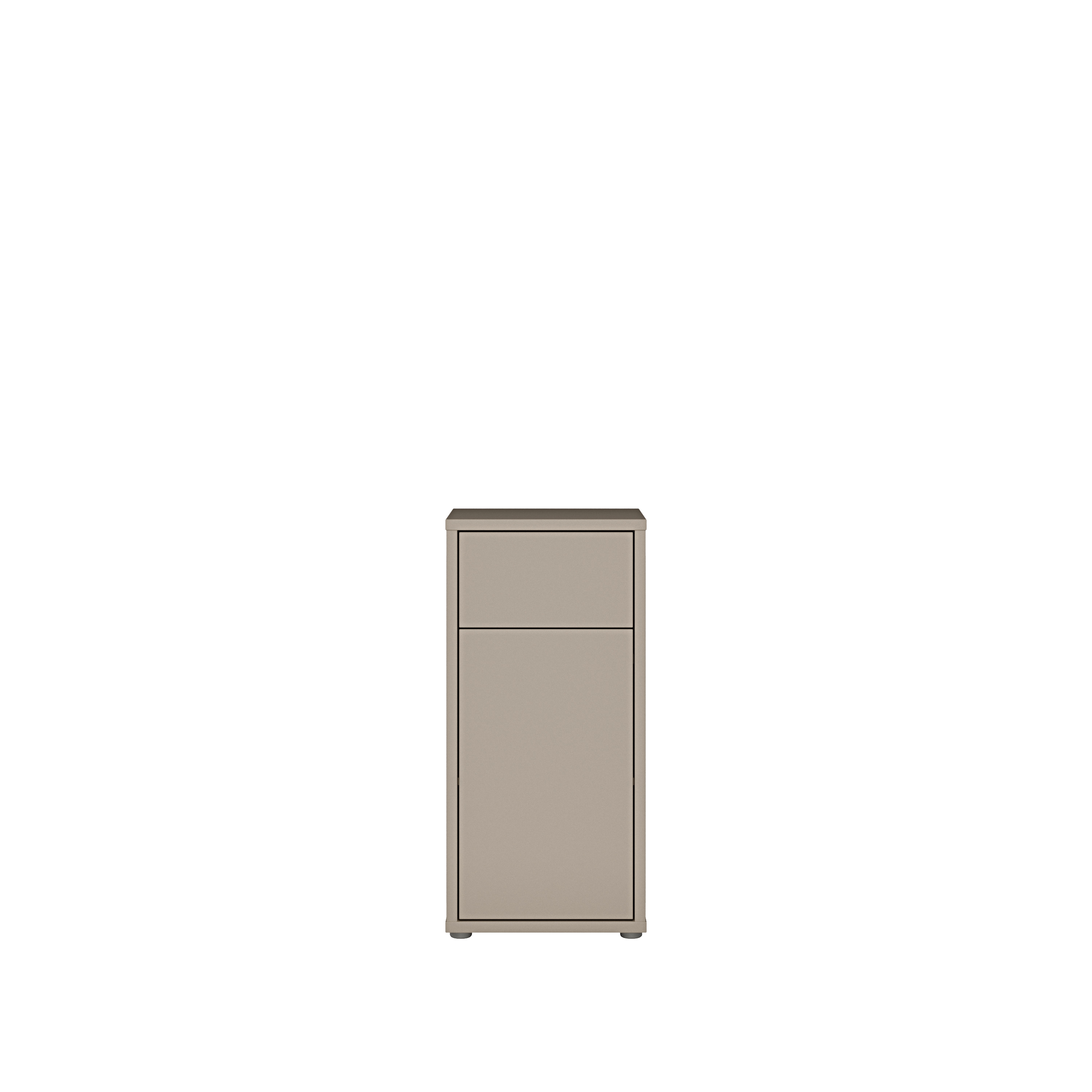 Diese Badkommode in der Farbgebung Taupe (U88) überzeugt mit kompakter Form und praktischer Ausstattung. Hinter der Tür mit einem Einlegeboden sowie in einem zusätzlichen Schubkasten lassen sich Pflegeartikel, Handtücher oder Reinigungsutensilien ordentlich und griffbereit verstauen. Das schlichte, einheitliche Design fügt sich harmonisch in moderne Bäder ein und lässt sich leicht mit weiteren Badmöbeln kombinieren. Durch ihre platzsparende Bauweise eignet sich die Kommode auch ideal für kleinere Räume. Eine funktionale Lösung für den täglichen Gebrauch - zum günstigen Preis bei MEGA Möbel, online oder vor Ort in Ihrer Filiale.