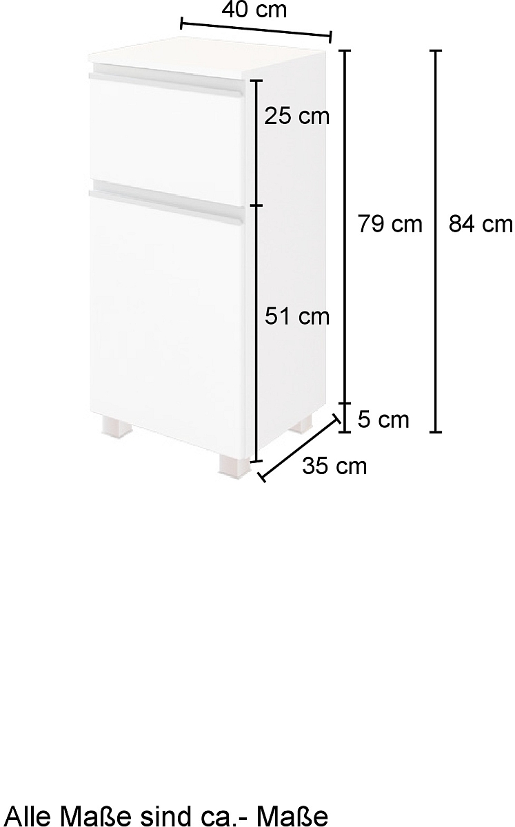 | Badkommode | 40 | 79 (ohne Möbelfüße) | 35 |