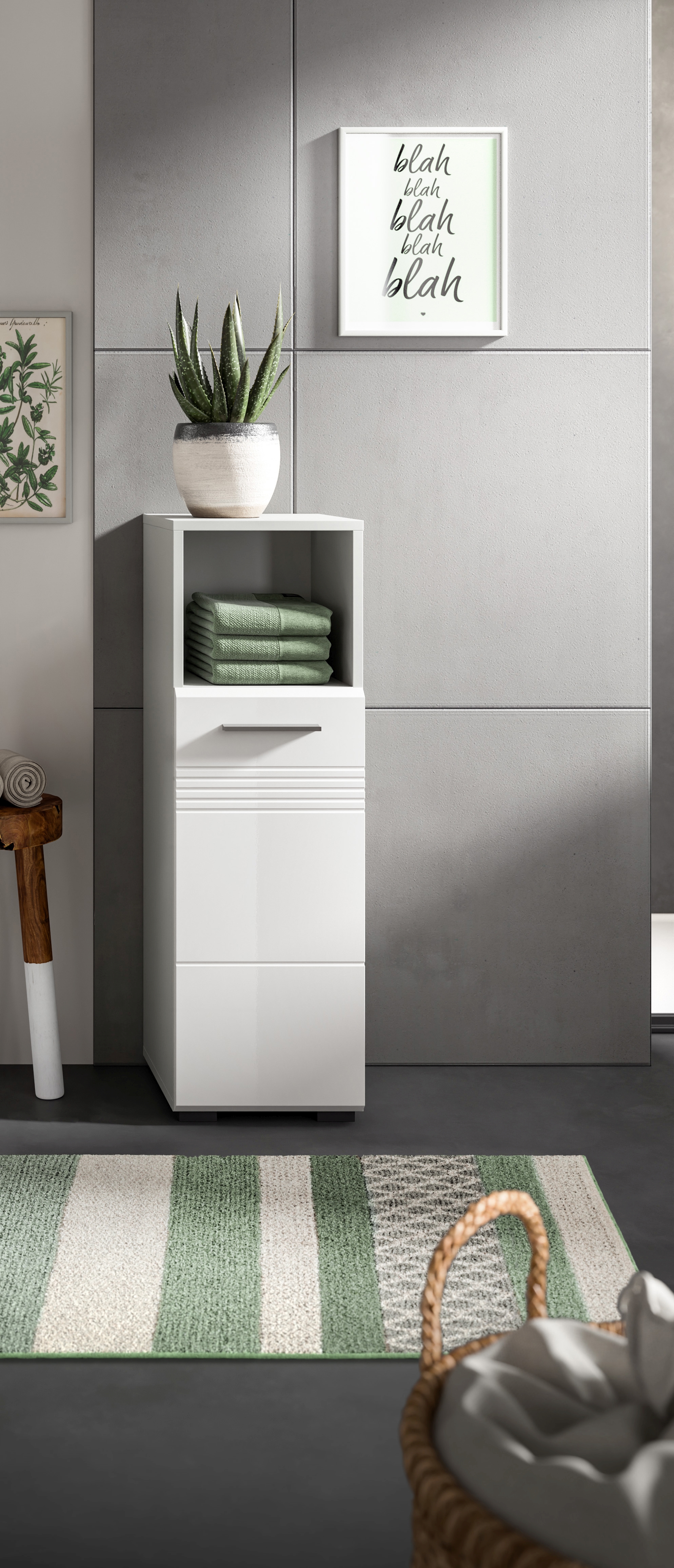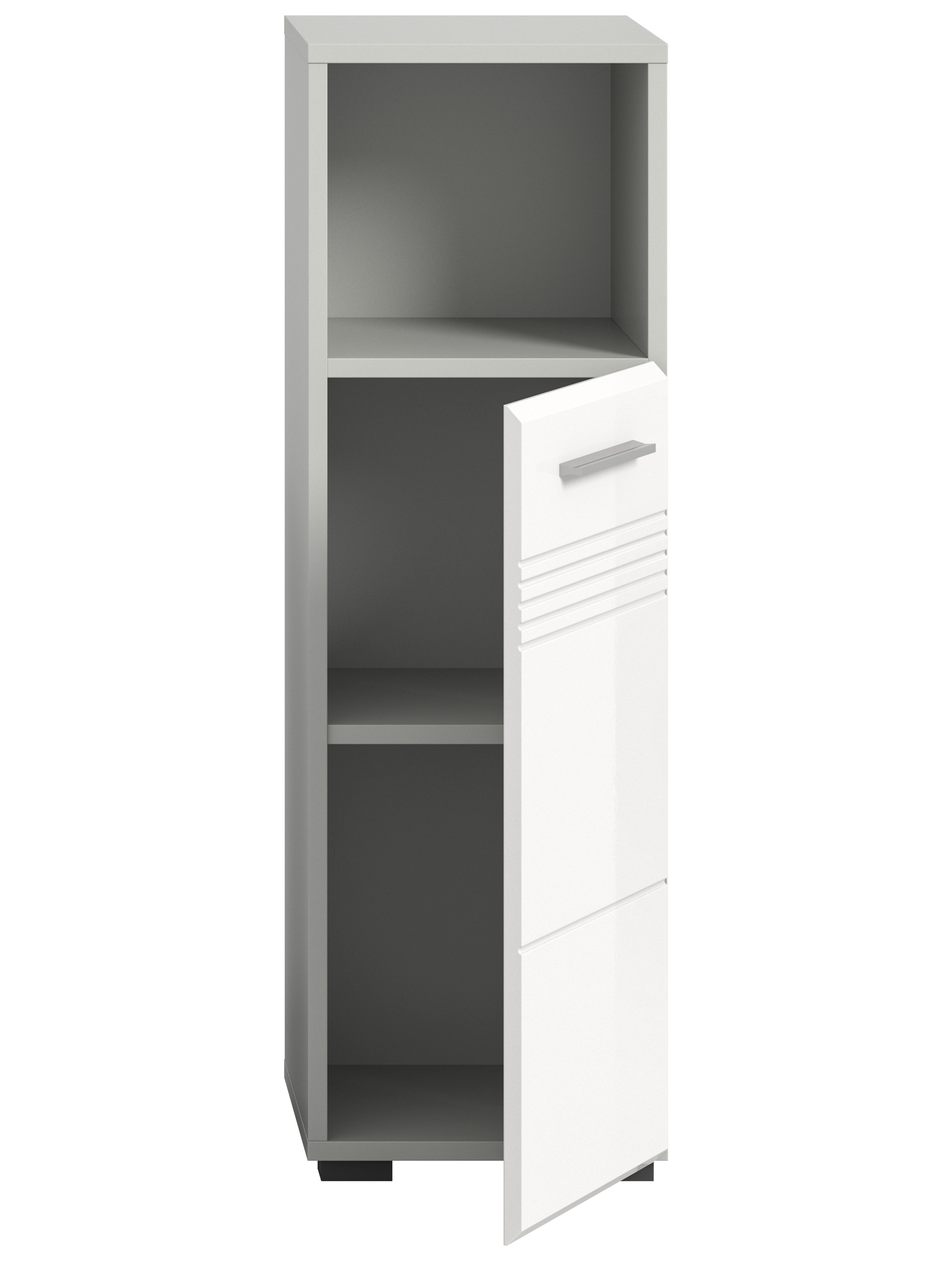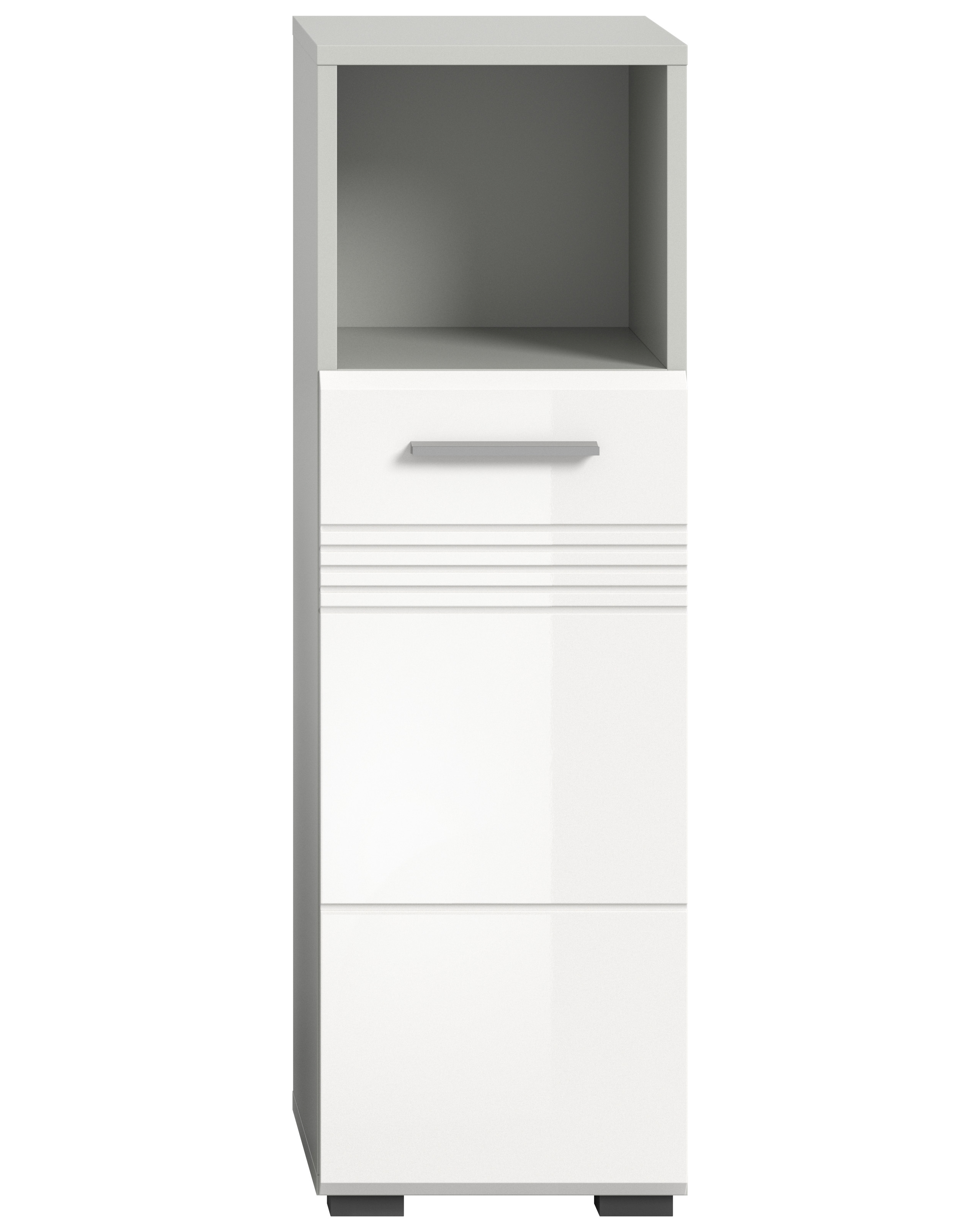 Erleben Sie Funktionalität und Eleganz in einem mit unserem Standschrank in stilvollem Hellgrau Nachbildung und weißem Hochglanz, tiefgezogen für ein ansprechendes Finish. Kompakt im Format (B/H/T: 30x95x30 cm) bietet er praktischen Stauraum und fügt sich nahtlos in jede moderne Einrichtung ein. Setzen Sie mit diesem hochwertigen Möbelstück einen stilvollen Akzent in Ihrem Zuhause.