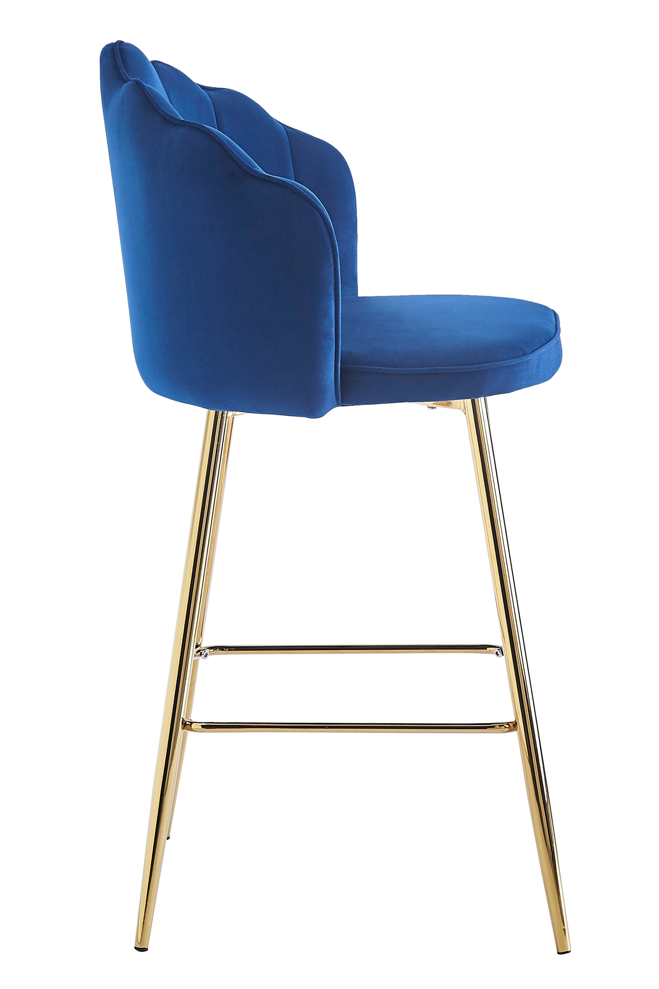Entfliehen Sie dem Alltag und genießen Sie eine kleine Auszeit. Der moderne Barhocker im Muschel-Design besticht durch seinen Bezug aus Samt und überzeugt mit seinem abgerundeten Sitz- und Rückenbereich. Das 4 Fuß Gestell aus vergoldetem Metall gewährleistet nicht nur einen sicheren Stand, sondern bietet auch einen großartigen Kontrast zum Bezug des Hockers. Durch die Polsterung an Sitz- und Rückenfläche, das hohe Sitzkissen und die stylische Form erleben Sie erstklassigen Sitzkomfort. Die abgerundete Form sorgt für einen weichen Look. Der Hocker kann im Essbereich an einem hohen Tisch oder als Sitzgelegenheit an der Küchentheke dienen. Egal wo er platziert wird, dieser Barhocker ist ein echter Blickfang.
