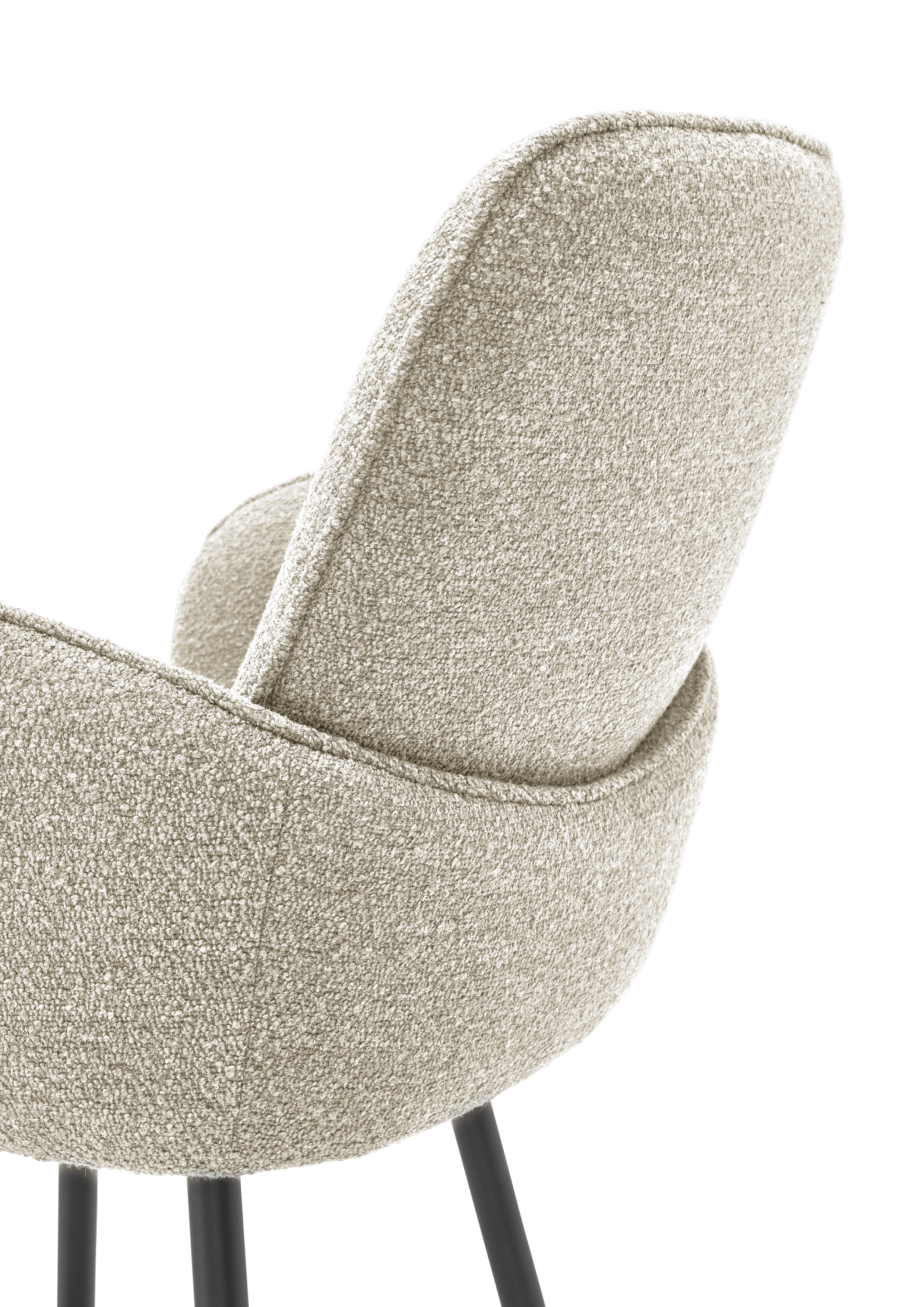 Die gepolsterten Sitzflächen sind mit langlebigem Strukturstoff bezogen, bieten eine angenehme Haptik und tragen zu einer einladenden Atmosphäre bei. Das schwarze Metallgestell sorgt für stabilen Stand und langlebige Nutzung. Besonders praktisch ist die 180°‑Drehfunktion mit Auto‑Return, die flexibles Sitzen und komfortables Ein‑ und Aussteigen ermöglicht.