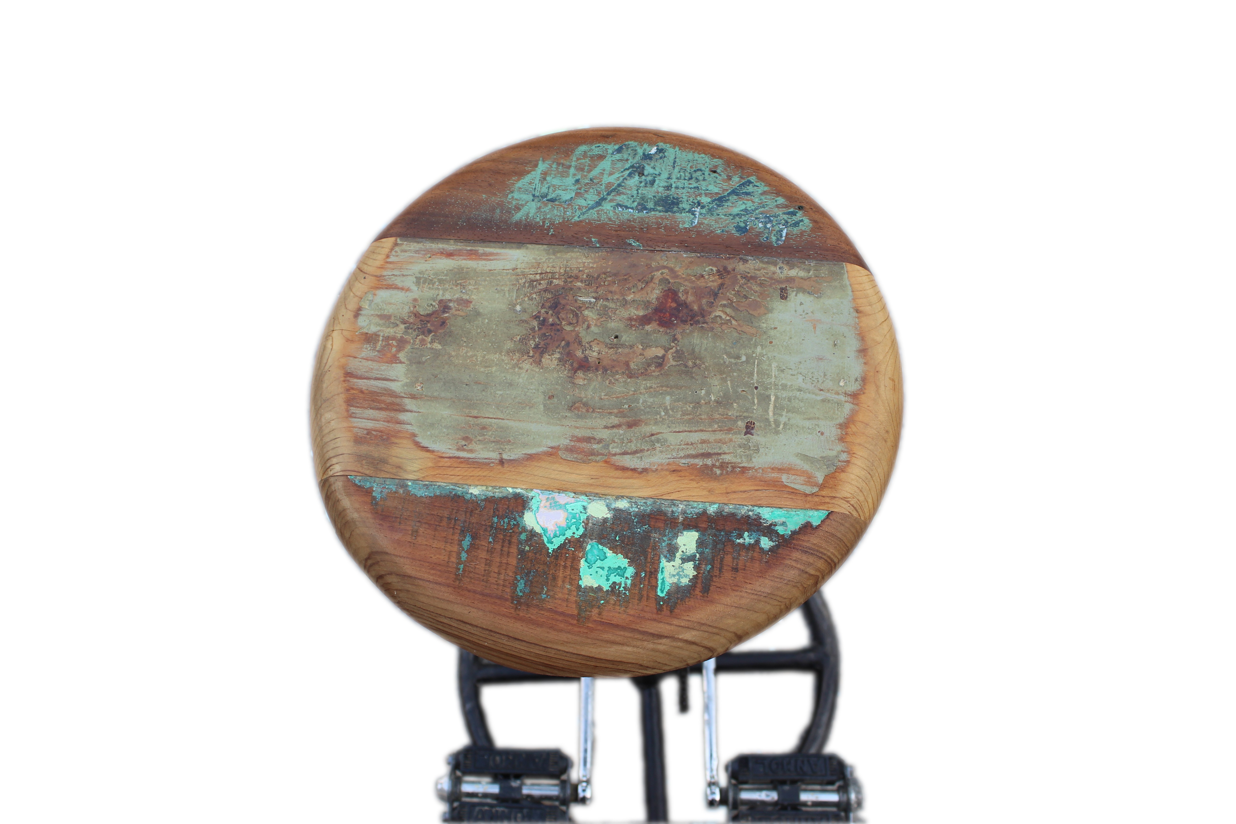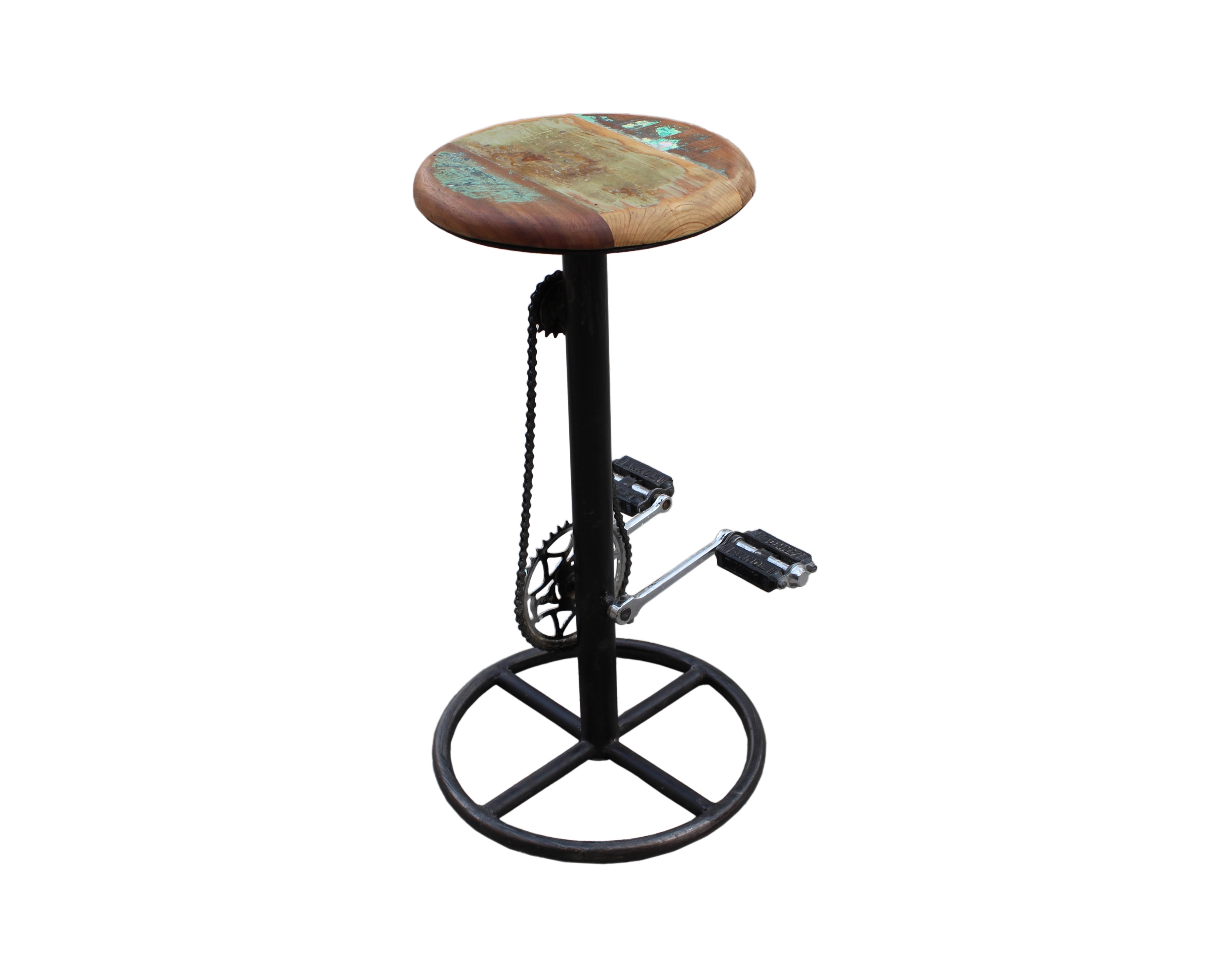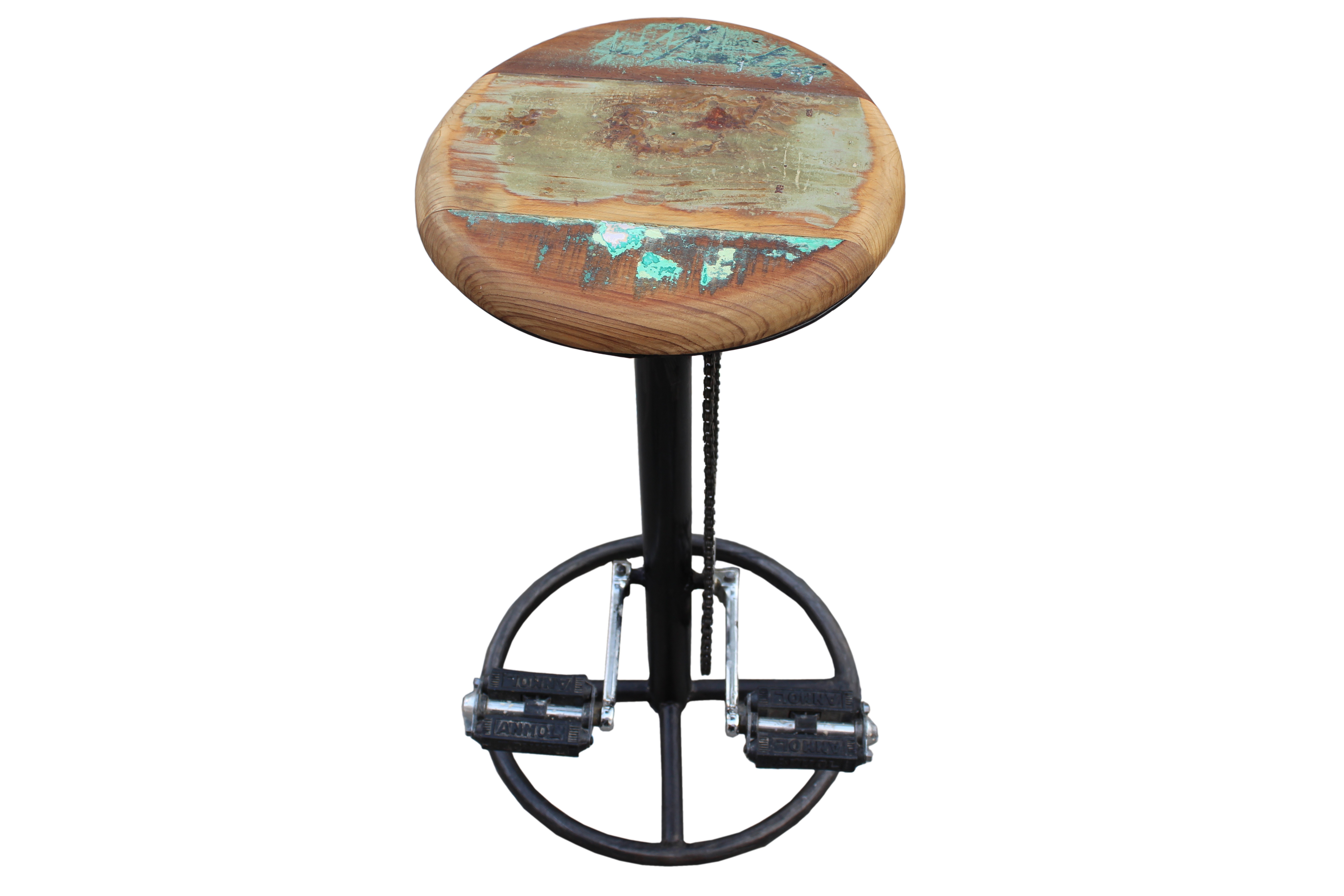 mit Fahrradkette und Pedalen als originelle Fußstütze