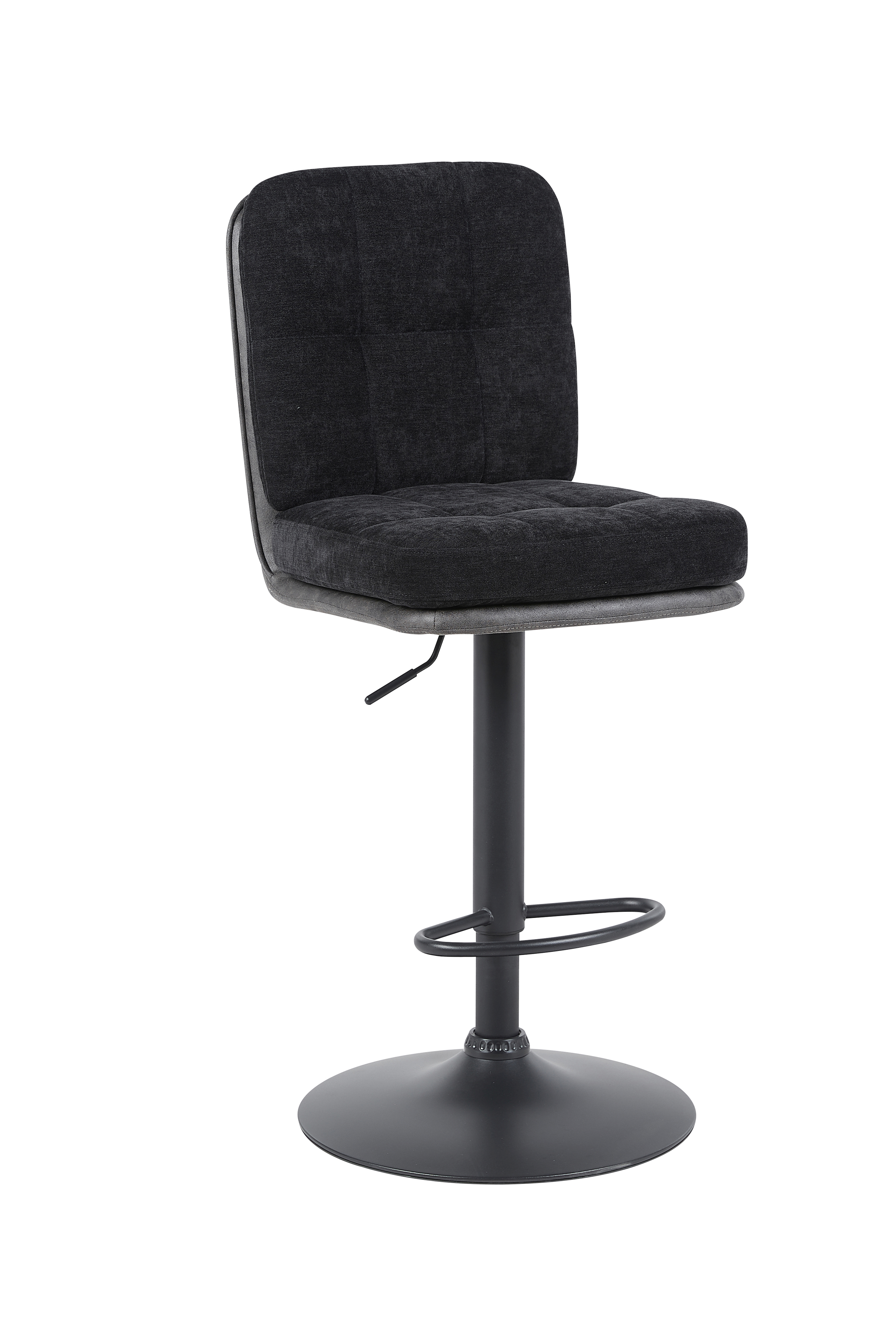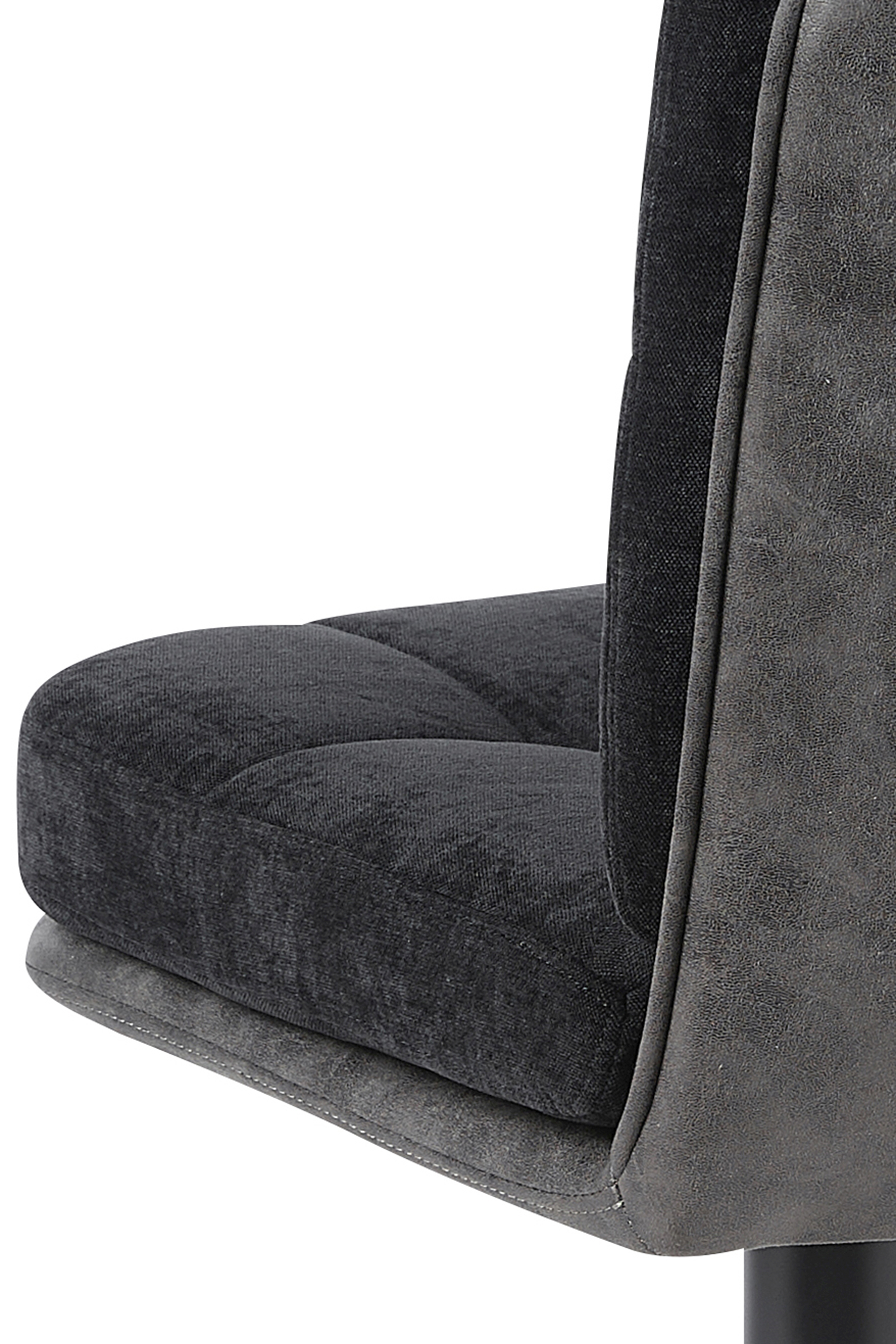 Dieser Barhocker vereint eine moderne Optik mit funktionalen Eigenschaften und eignet sich ideal für Küchen- oder Thekenbereiche. Die Materialkombination aus Microfaser Vintage in Anthrazit (außen) und schwarzem Microfaser-Webstoff (innen), jeweils aus 100% Polyester, sorgt für eine pflegeleichte und langlebige Oberfläche. Die fest gepolsterte Sitzschale mit dekorativen Steppnähten bietet stabilen Sitzkomfort. Dank der 360°-Drehfunktion ist der Hocker besonders flexibel im Alltag einsetzbar. Das stabile Metallgestell mit strukturierter, schwarzer Pulverbeschichtung garantiert einen sicheren Stand. Die maximale Belastbarkeit liegt bei ca. 120kg.