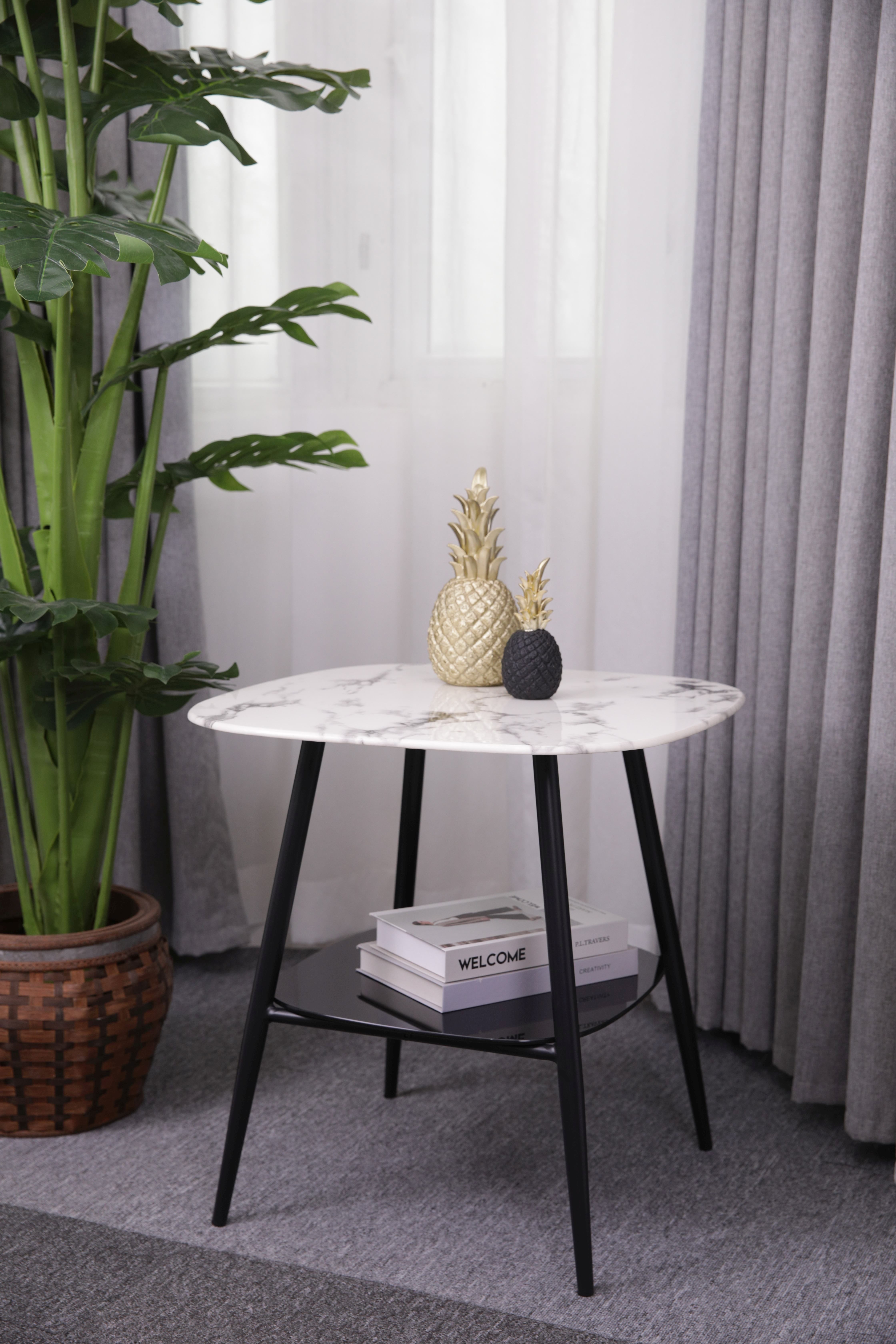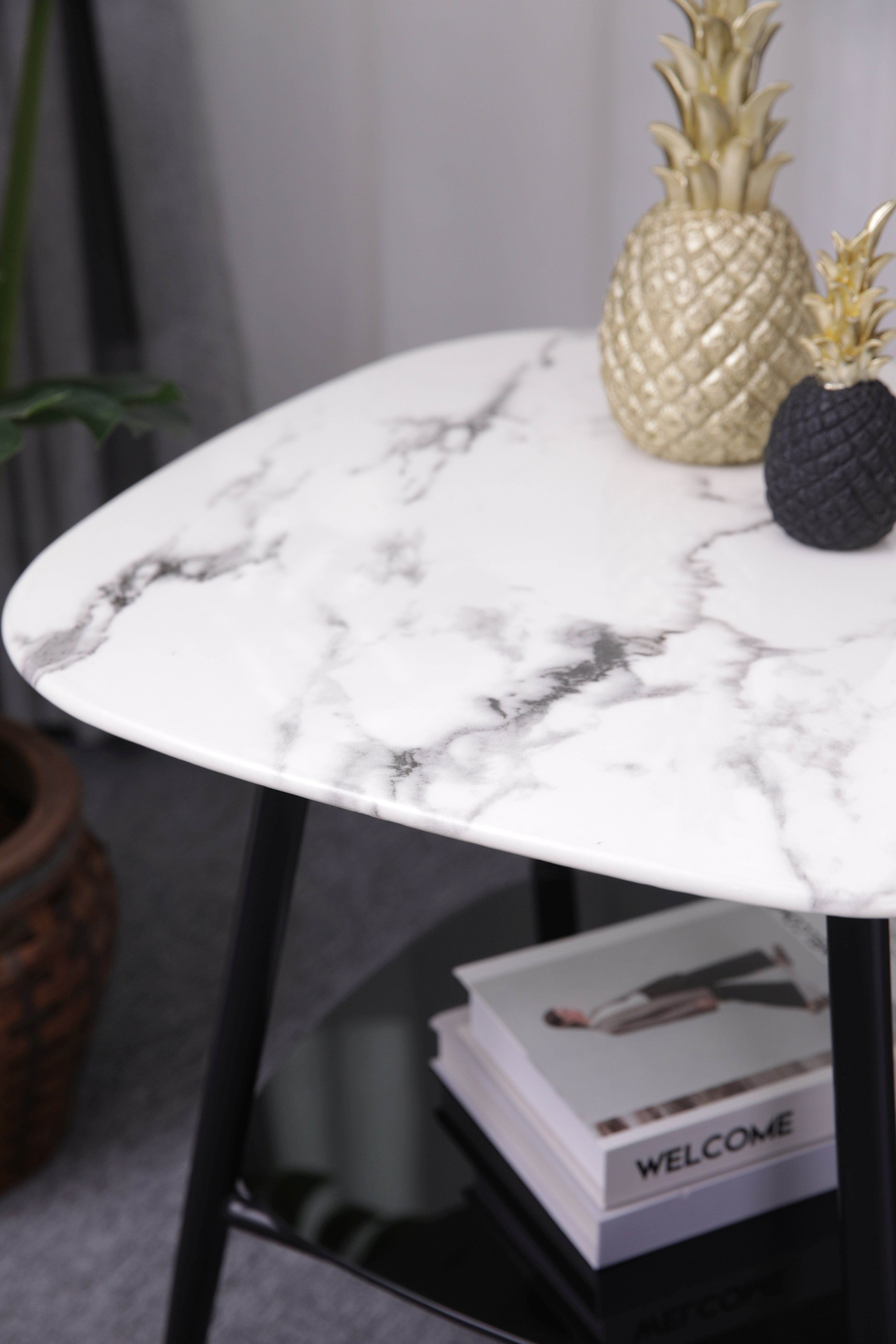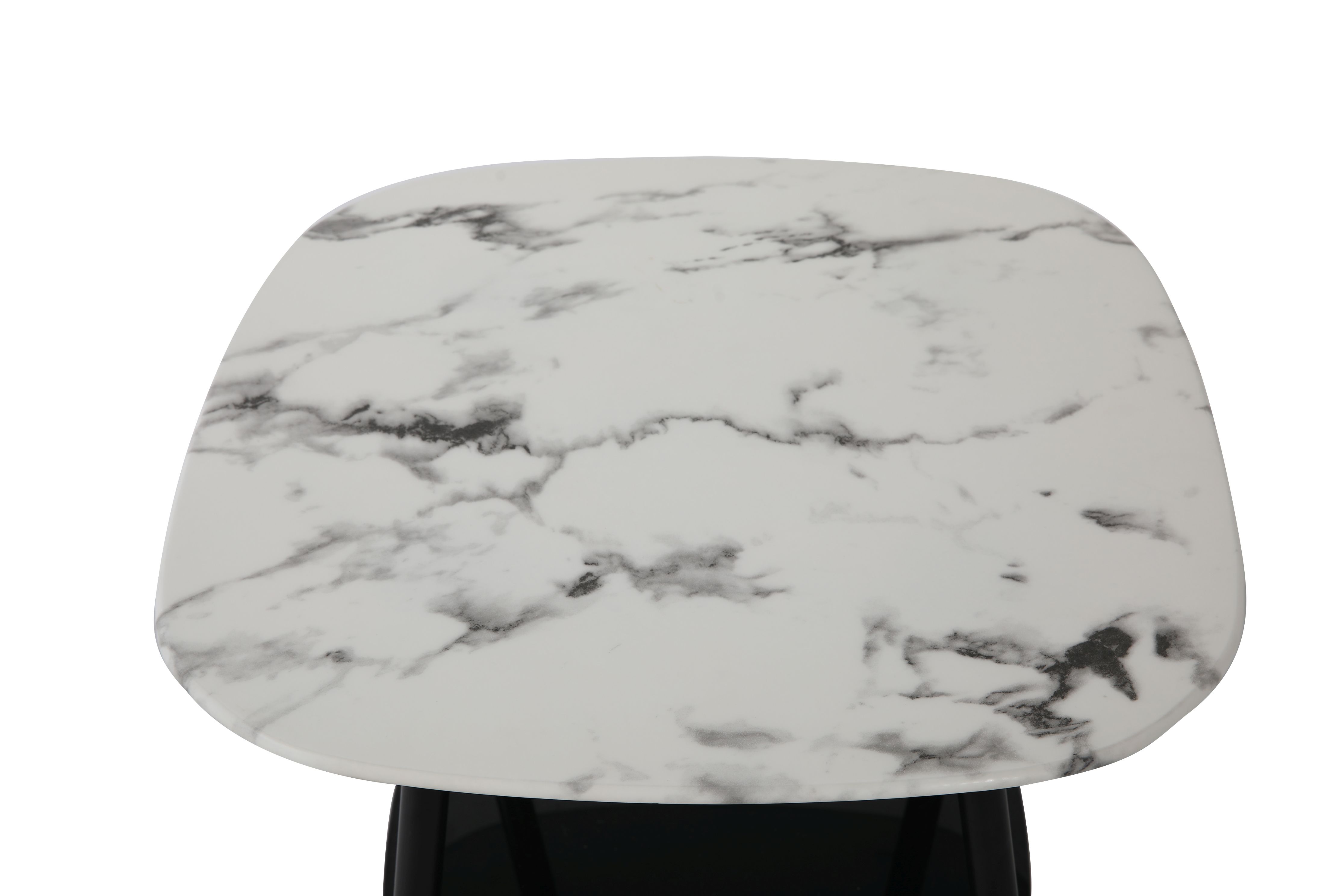 Tischplatte: Glas in Marmoroptik in weiß (mit bedrucktem Papier in Marmoroptik und mehrschichtigem Harzüberzug)