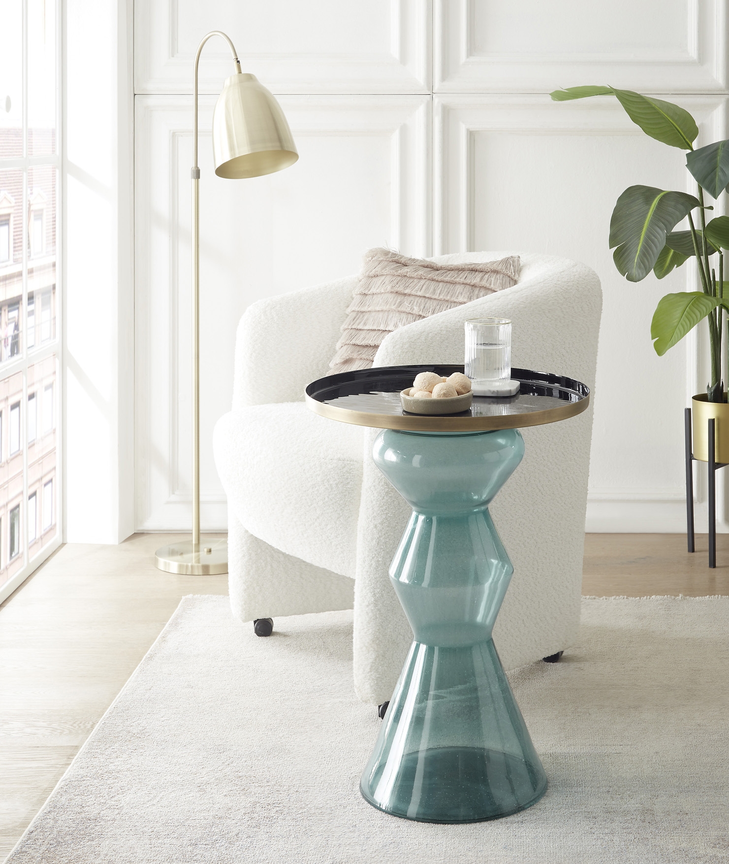 Tischplatte: Messing emailliert in schwarz, Rand in goldfarben