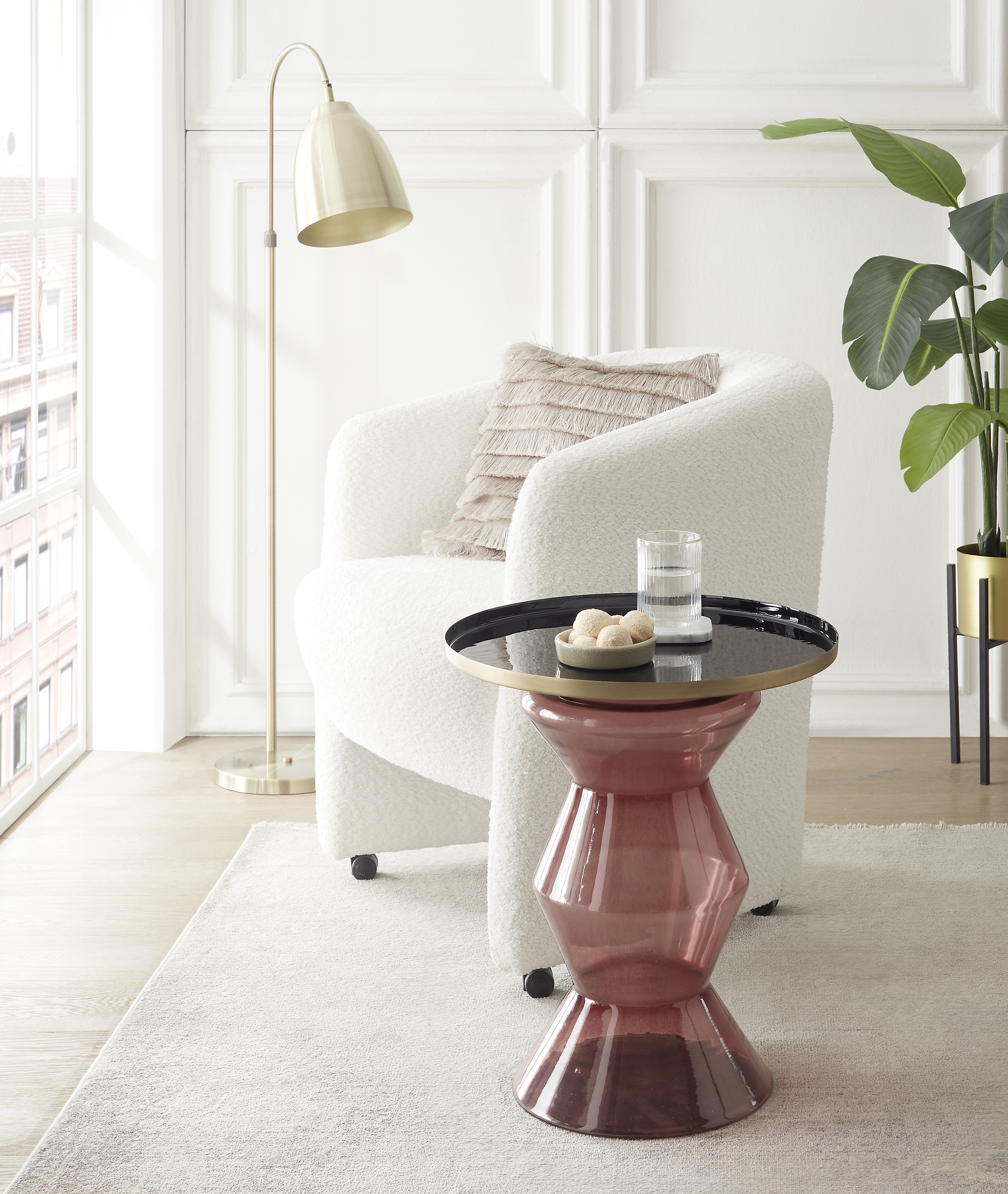 Tischplatte: Messing emailliert in schwarz, Rand in goldfarben