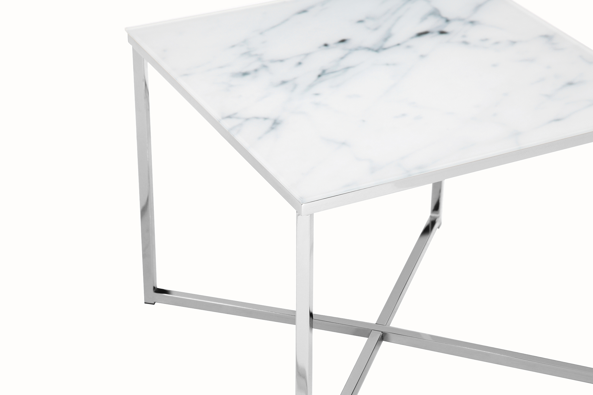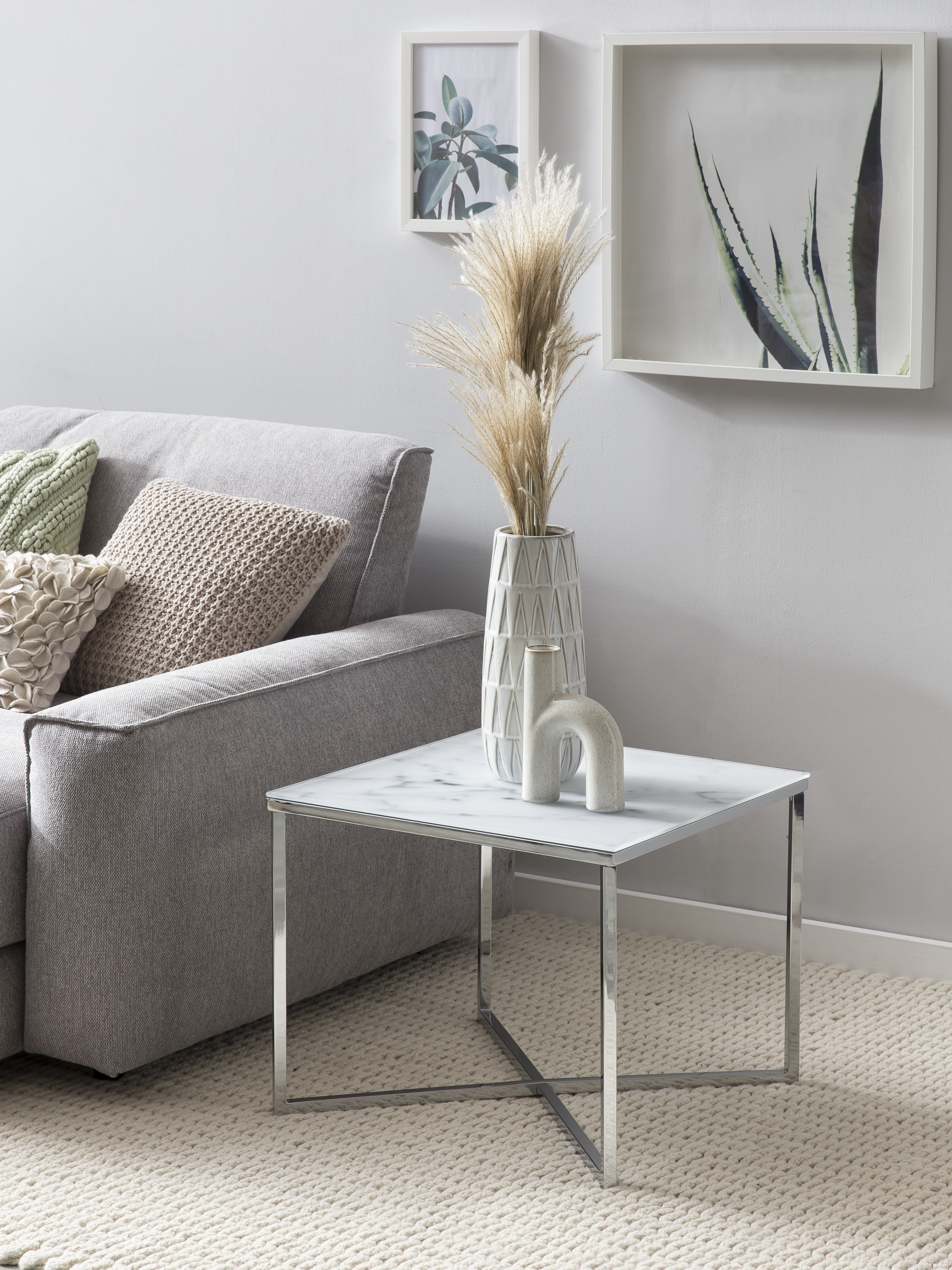 Tischplatte: Glas foliert in Marmoroptik in weiß