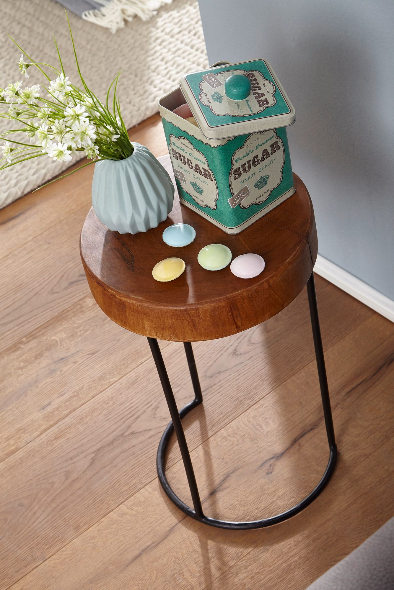 Wofür geeignet? Der Beistelltisch eignet sich ideal als kleiner Eck-Tisch - Optisches Highlight ist die Tischplatte in Baumstammform