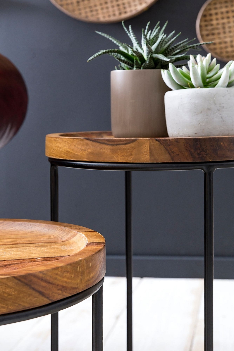 - COOL, MODERN, MASSIV ✔ Designer Lounge Holztisch Set aus indischem Rosenholz im ausgefallenen Industrial Style für Liebhaber individueller Wohnträume: Besonderes Augenmerk liegt auf dem naturbelassenen Design der Echtholz Beistelltische und auf der einzigartigen Maserung eines wahren Unikats. Getragen werden die massiven Tischchen von stabilen Metallgestellen. Egal, ob im Wohnzimmer neben dem Sofa platziert oder im Flur als Dekotisch verwendet - das Set passt sich einfach immer Ihrem Stil an.