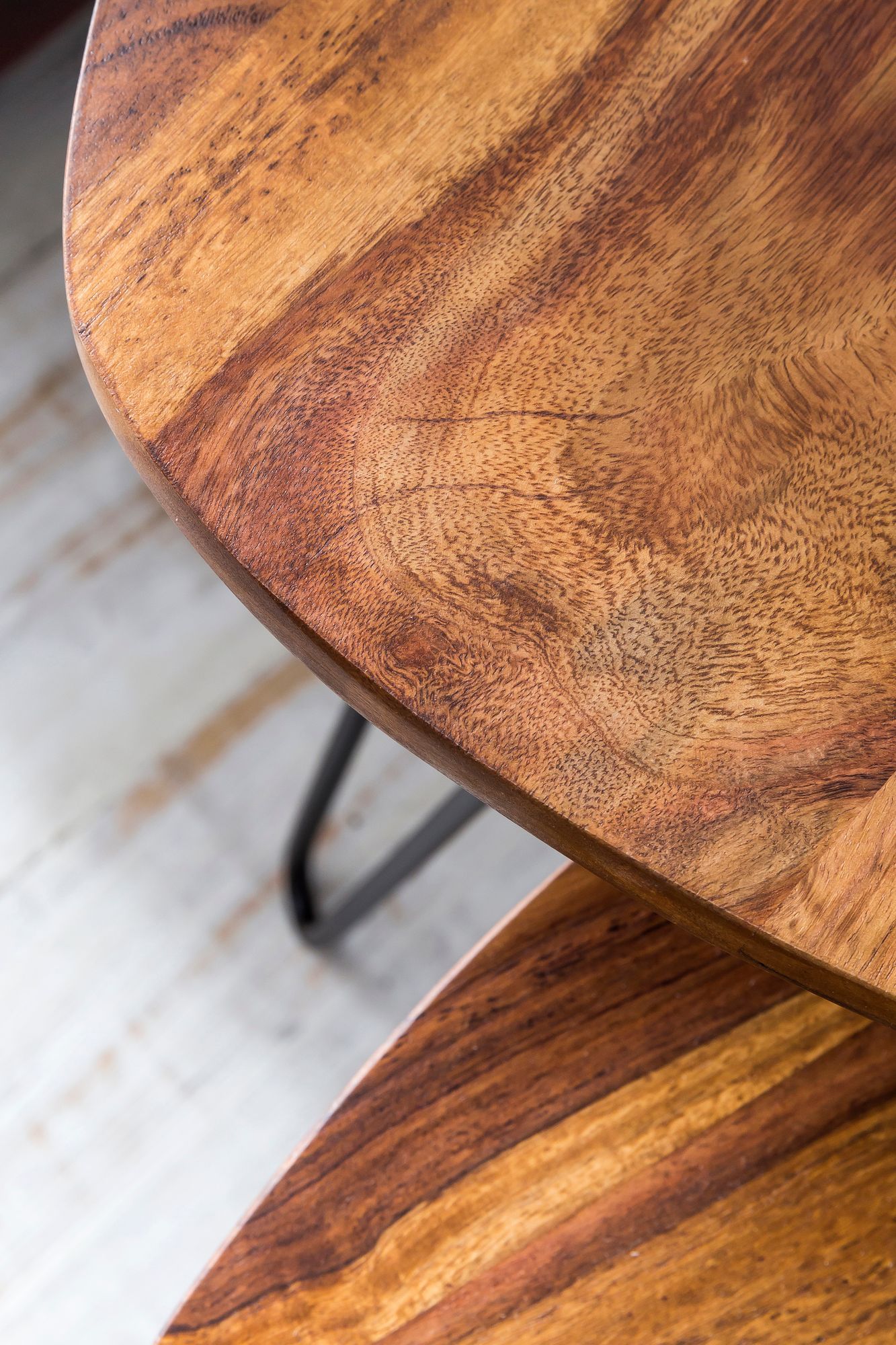 • COOL, MODERN, MASSIV ✔ Designer Lounge Holztisch Set aus indischem Rosenholz im ausgefallenen Industrial Style für Liebhaber individueller Wohnträume. Besonderes Augenmerk liegt auf dem naturbelassenen Design der Echtholz Beistelltische und auf der einzigartigen Maserung eines wahren Unikats. Getragen werden die massiven Tischchen von stabilen Metallgestellen. Egal, ob im Wohnzimmer neben dem Sofa platziert oder im Flur als Dekotisch verwendet - das Set passt sich einfach immer Ihrem Stil an.
