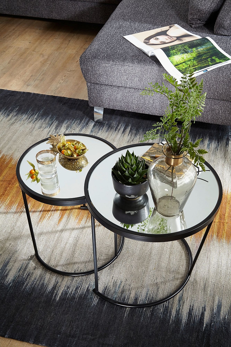 - BLACK IS BEAUTIFUL ✔ Dieses wunderbare Dekotisch-Set hat Ihrer Einrichtung garantiert gefehlt - bis jetzt! Schick, dezent und praktisch! Was will man mehr? Das schwarze Gestell harmoniert perfekt mit der verspiegelten Glasplatte. Durch die unterschiedlichen Größen lässt sich der Blumentisch problemlos unter den großen Tisch stellen.