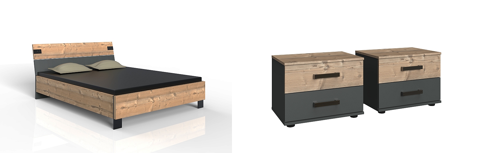1 Bett mit Nachtkommodenpaar