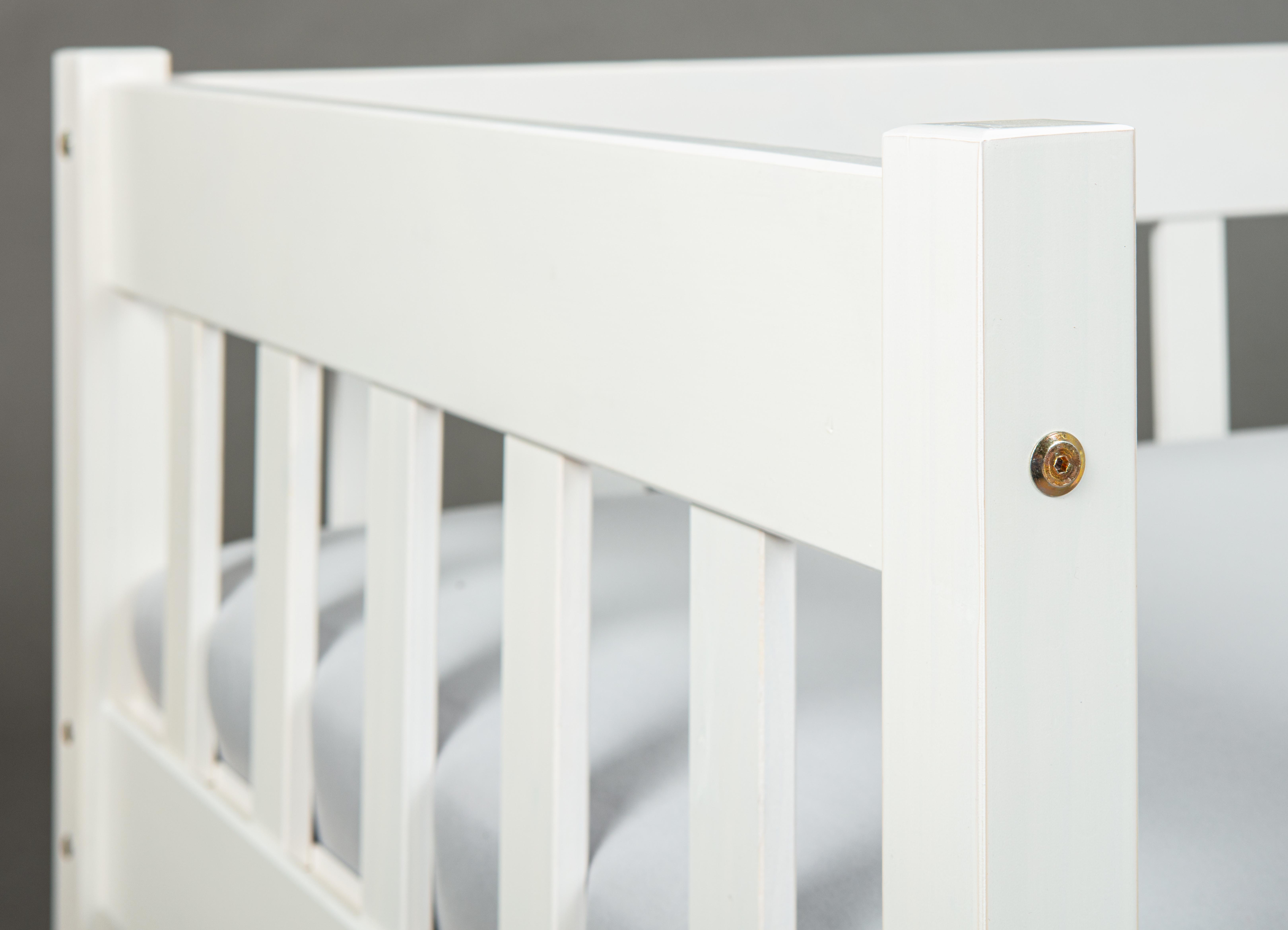 Hergestellt aus weiß lackiertem Massivholz, fügt es sich ideal in Kinder- oder Gästezimmer ein.