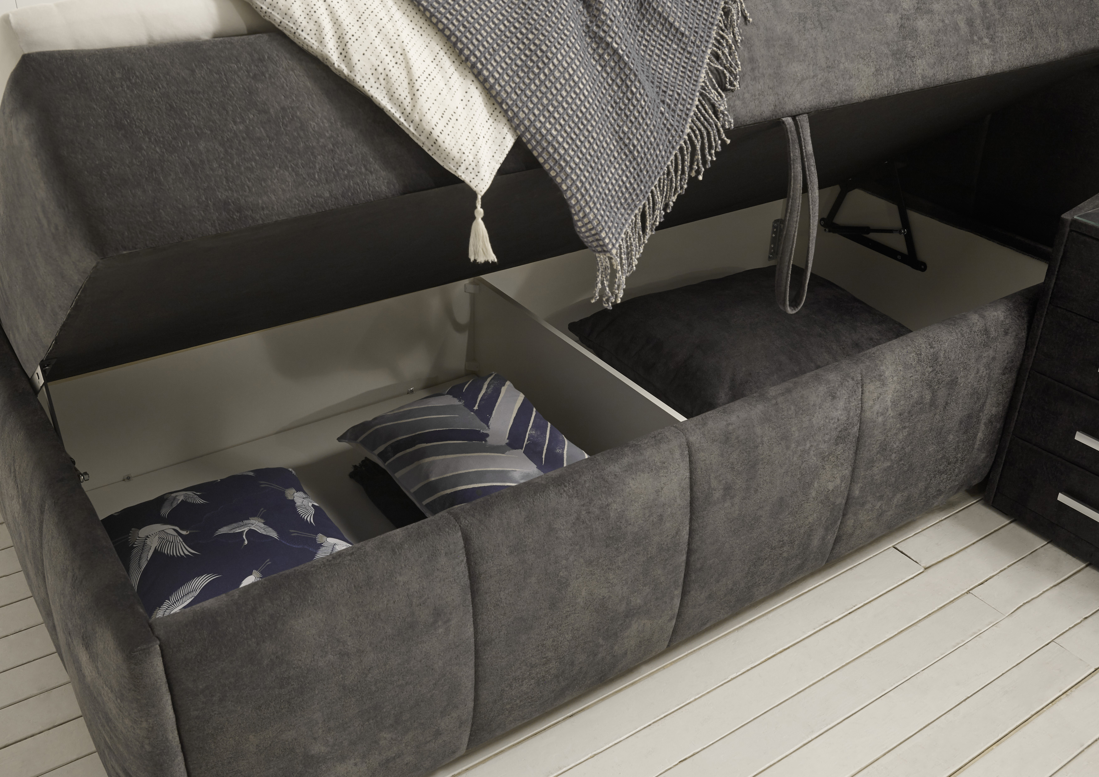 2 Boxen mit jeweils 1 Bettkasten (unterteilt in je 2 Fächer)