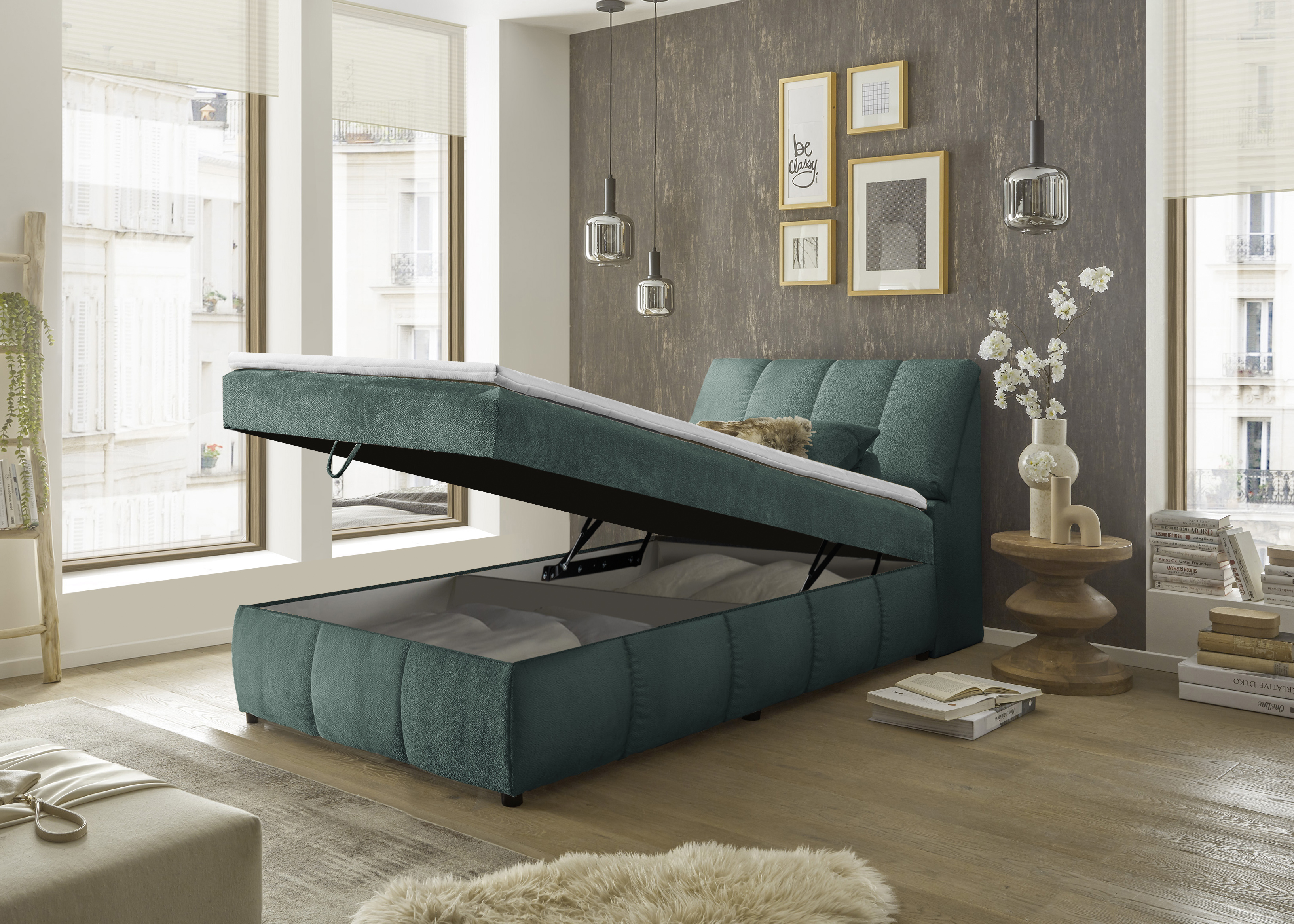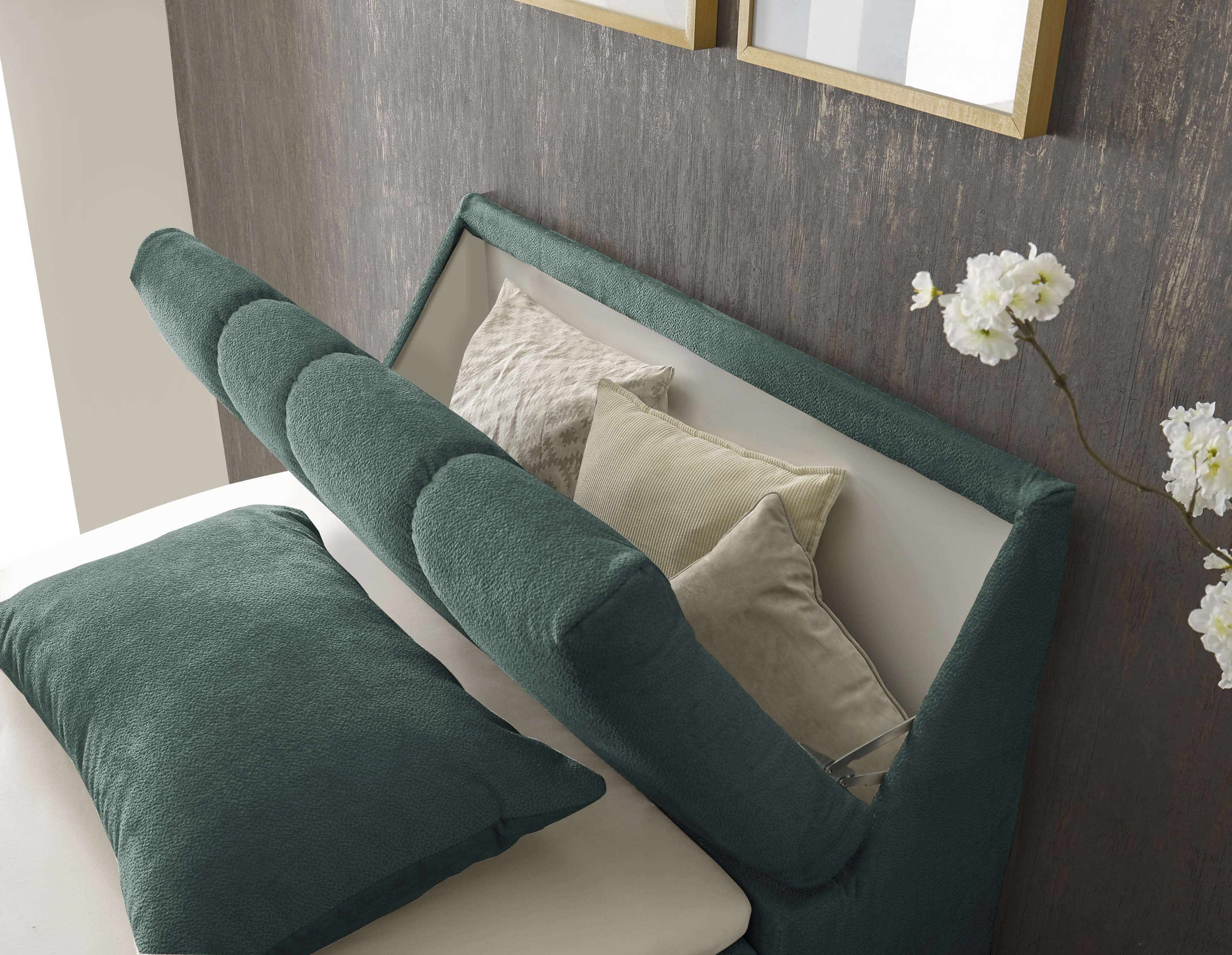 1 gestepptes Kopfteil mit Stauraum
