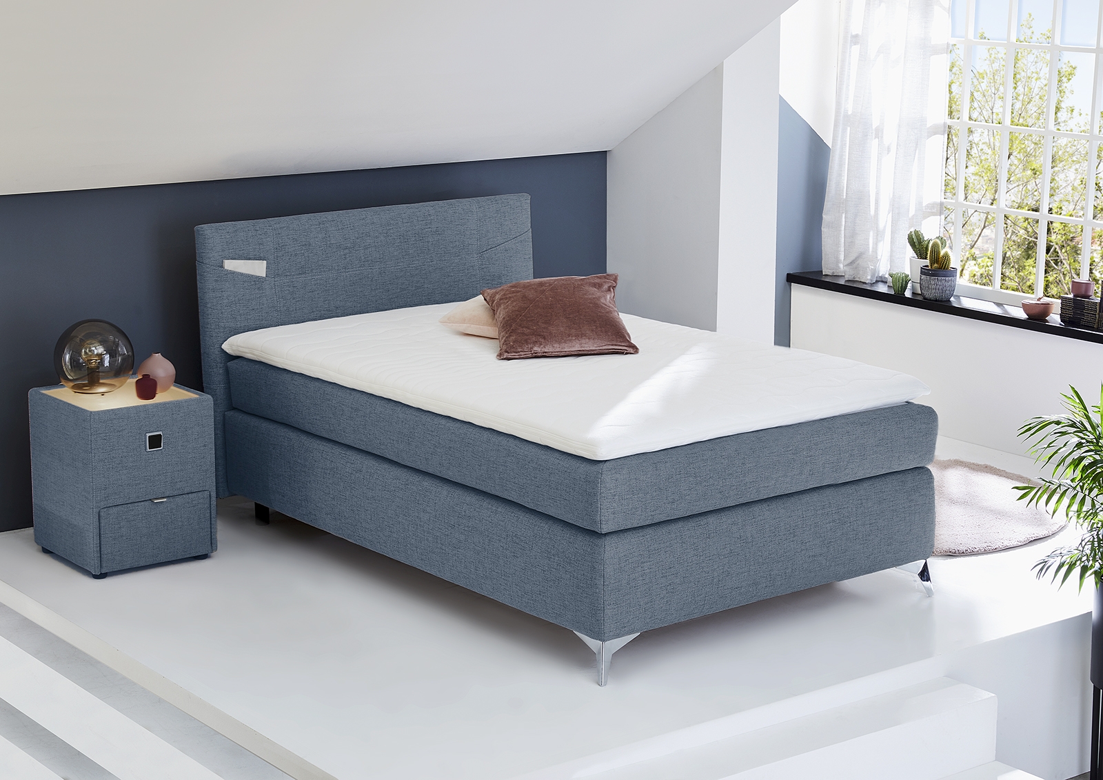 Die Grundlage für dieses moderne Boxspringsystem bildet eine Box mit einer Bonell-Federkernpolsterung. Dabei wird ein Bonell-Federkern als Unterfederung verwendet. Auf dieser Box liegt eine hochwertige Wende-Bonell-Federkern-Matratze. Durch die so erzeugte Doppelfederung entsteht ein einmaliger Federkomfort mit optimaler Körperanpassung und Druckentlastung. Den Abschluss eines wunderbaren Schlaferlebnisses bildet der PU-Schaum-Topper. Dieses Boxspringsystem ermöglicht einen hervorragenden Schlafkomfort durch sein exzellentes und individuelles Doppelfederungs-Verhalten.